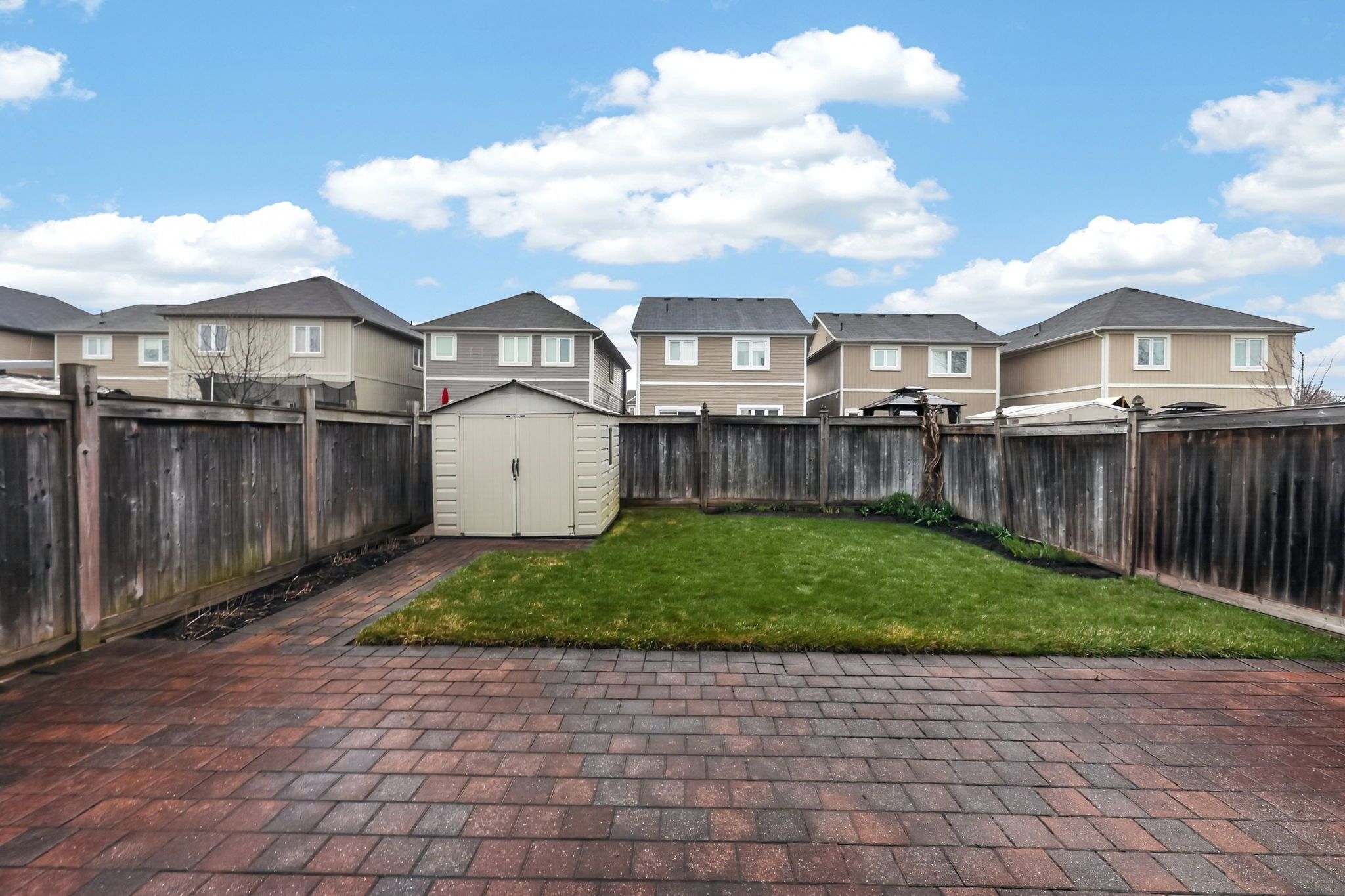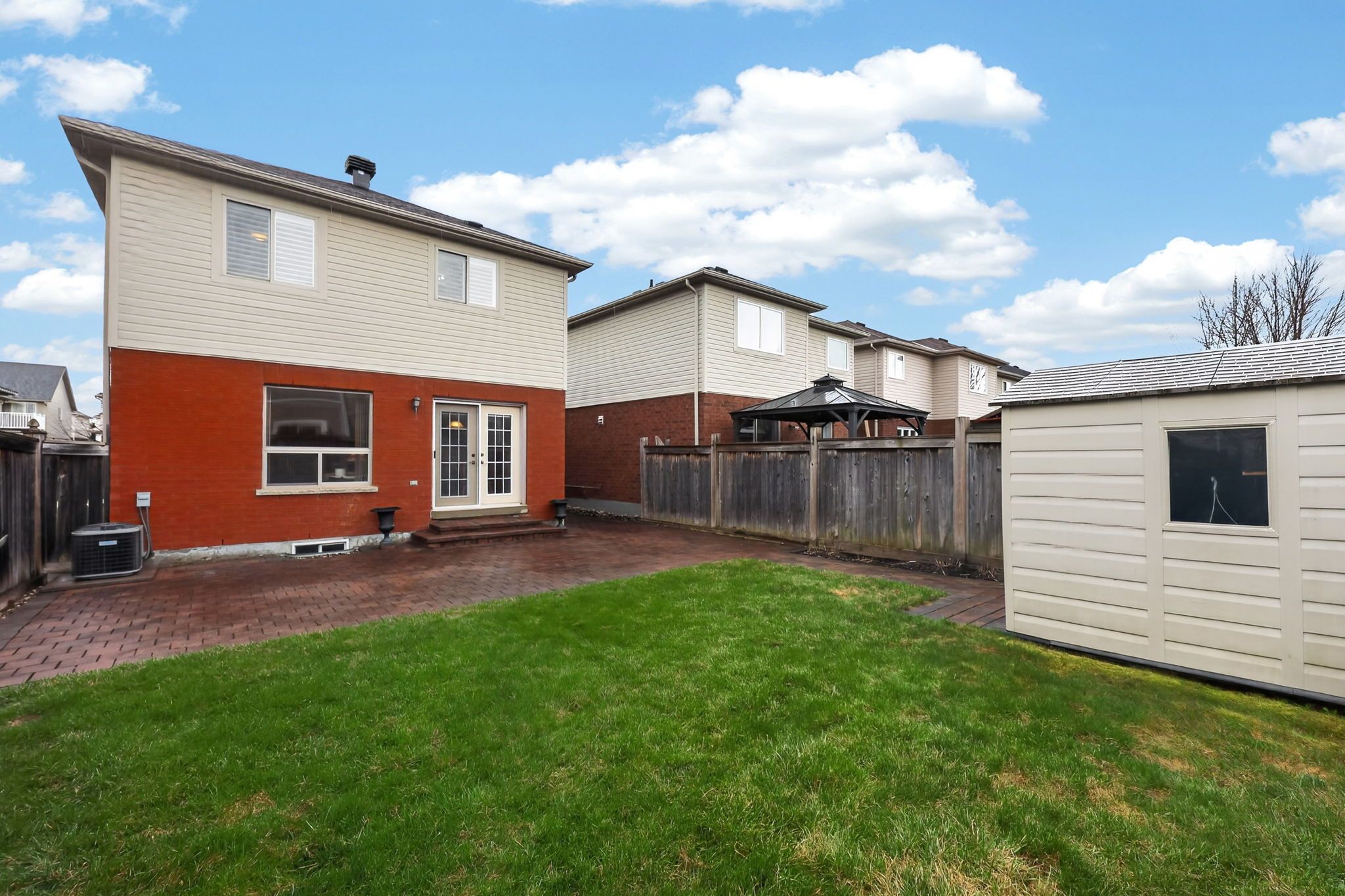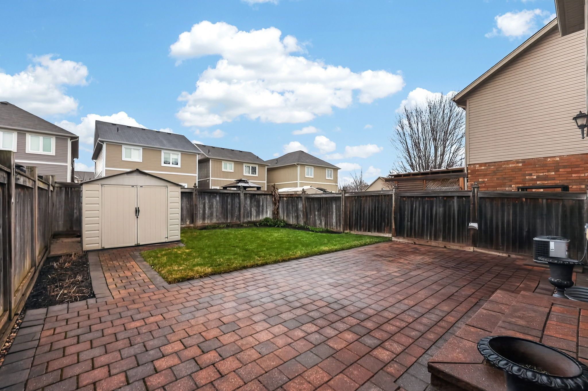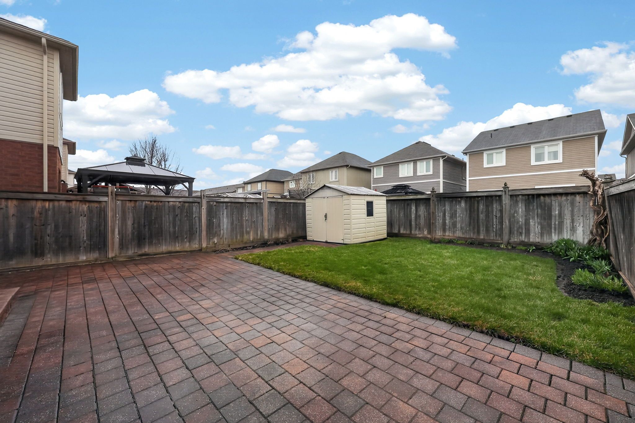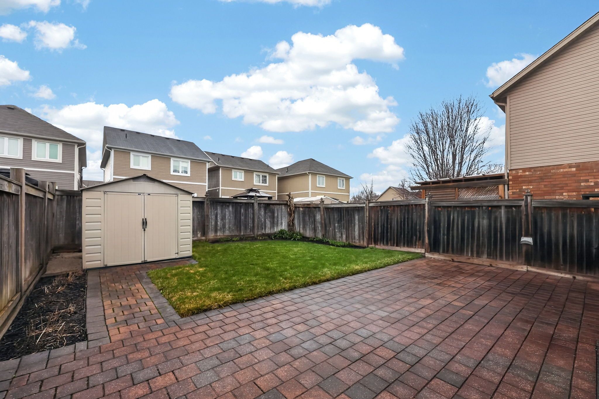 • Large backyard patio and garden shed for outdoor enjoyment.