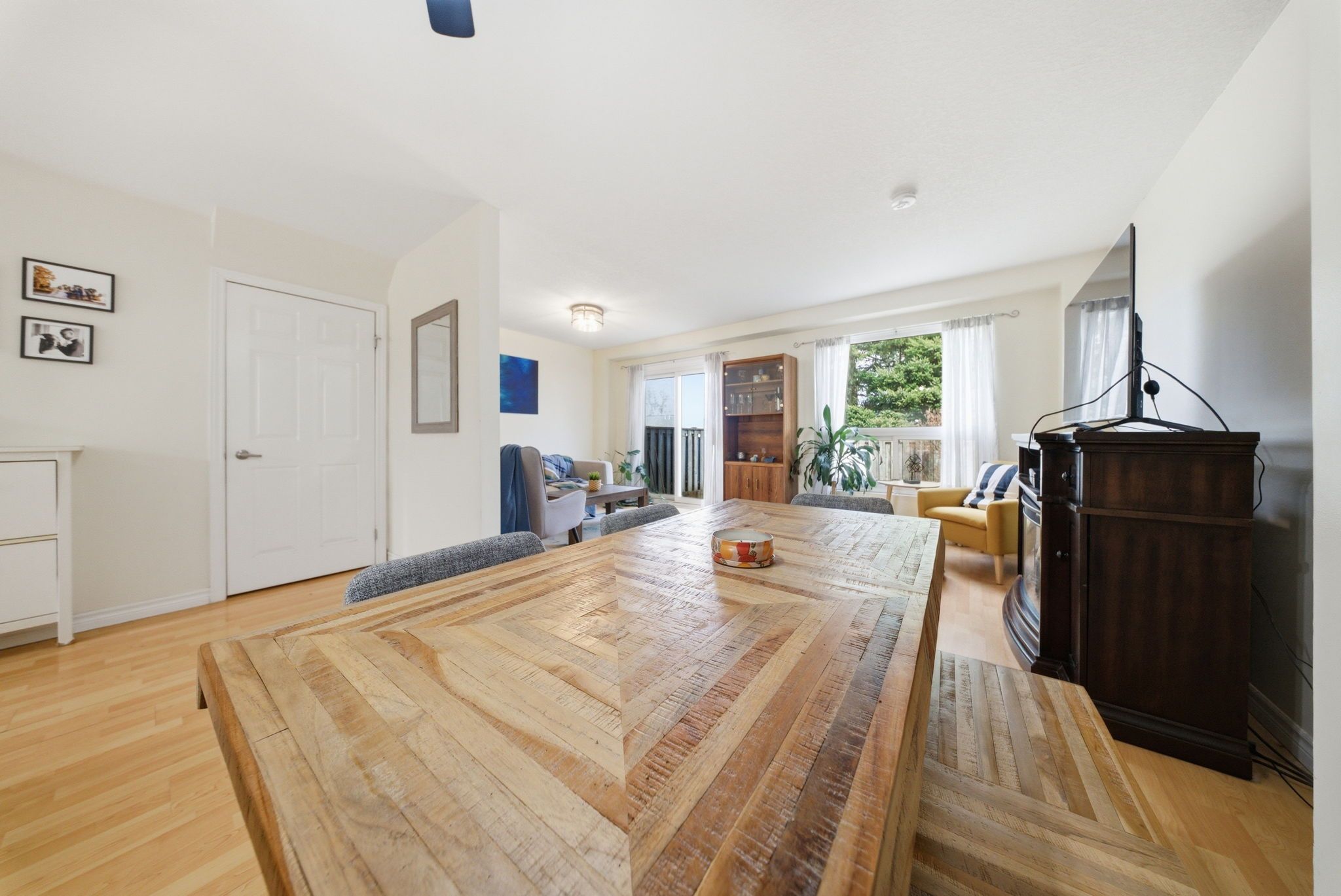 Welcome to the meadows, a beautifully maintained townhome community tucked into the heart of laurentian hills. Unit 41 is a 3-bedroom, 2-bathroom offering generous space, a finished basement, and a private yard. Step inside to a bright foyer that leads into a comfortable, traditionally laid out main floor. The separate living room features large windows and plenty of natural light. The dedicated dining area connects naturally to the kitchen and offers sliding door access directly to your private patio and yard, a seamless flow for everyday living and entertaining. The kitchen offers light wood cabinetry, dark countertops, a full suite of stainless steel appliances, a tiled backsplash, and a bright window that fills the space with natural light. A 2-piece powder room completes the main floor. Upstairs, three well-sized bedrooms, with a 4-piece bathroom featuring a tub/shower combo with tile surround and brushed nickel fixtures. The finished basement with french doors rounds things out, currently a home gym, but equally at home as a rec room or office. The fully fenced yard is a genuine standout - patio stone, a private outdoor living space, and backing onto a park that adds a rare sense of openness and greenery. Minutes to the sunrise centre, mclennan park, the expressway, and transit. Laurentian hills is a neighbourhood that genuinely has it all.