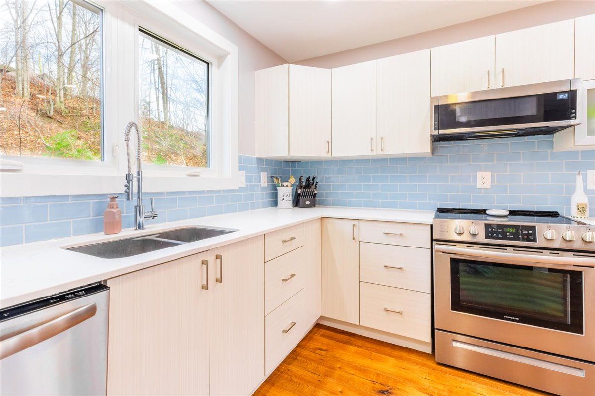 Private oasis among the trees! Nestled at the end of a quiet cul-de-sac in the heart of sugarbush, 32 oneida avenue is an extensively updated chalet-style home that offers a unique blend of comfort, privacy, and natural beauty. Surrounded by mature trees, this home provides a peaceful, retreat-like setting. A beautifully crafted stone staircase (2017) guides you past dual stone retaining walls (2007 & 2017) to the welcoming front entrance (2018) adorned by a freshly painted exterior (2022). A two-level deck (2022) wraps around the home, offering multiple outdoor spaces for relaxation and entertaining. Inside, you'll find a bright, updated kitchen (2020) with stone countertops and large windows that flood the space with natural light. The adjacent dining room opens onto the upper deck, perfect for morning coffee or sunset dinners. Two spacious bedrooms and a modern 4-piece bathroom (2020) complete the main floor. The expansive lower level features a walk-out family room and a sunken rec room with a cozy gas fireplace (2019), ideal for winter evenings. This level also includes two additional bedrooms, including the primary suite with a renovated 3-piece ensuite (2024), a 2-piece bath (2018), and a utility room complete with a built-in ski rack. Other notable features include: textured metal roof with 50 year warranty (2007), all carpet redone (2018), additional attic insulation (2007), front deck & stairs (2018), windows and sliding doors (2010-2018), 200 amp electrical panel. Visit frank-sold. Ca for more information and to book your private showing! Year built - 1987. Total finished sqft - 2,277.