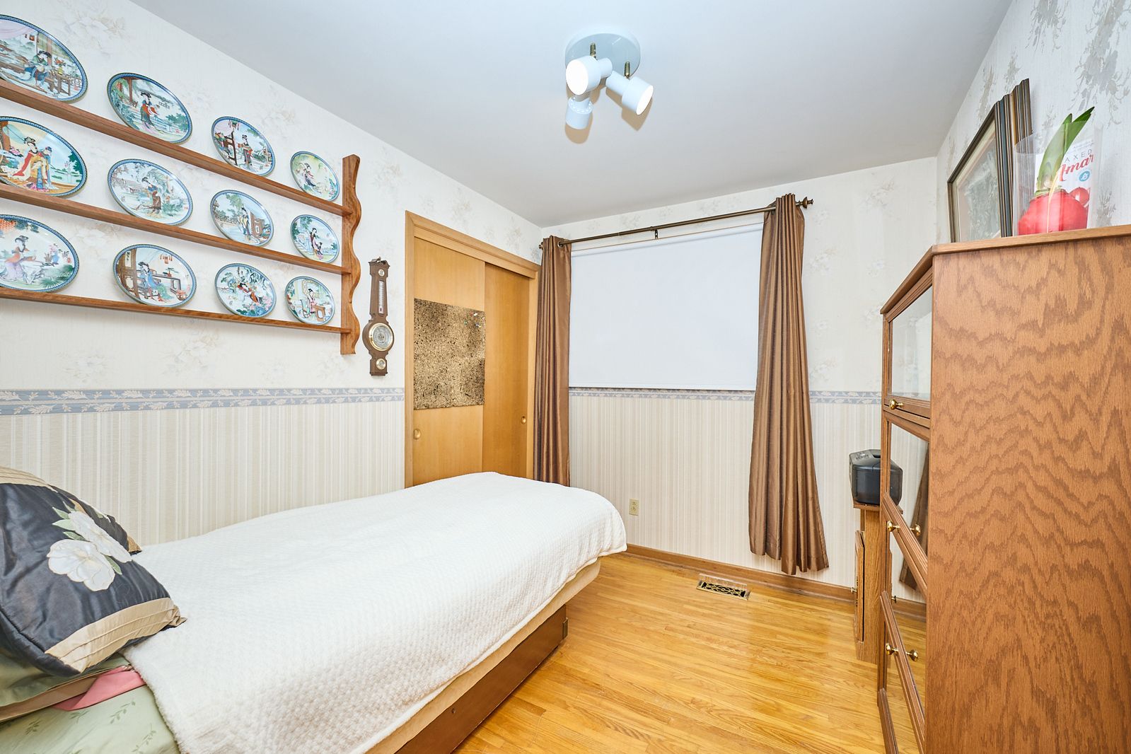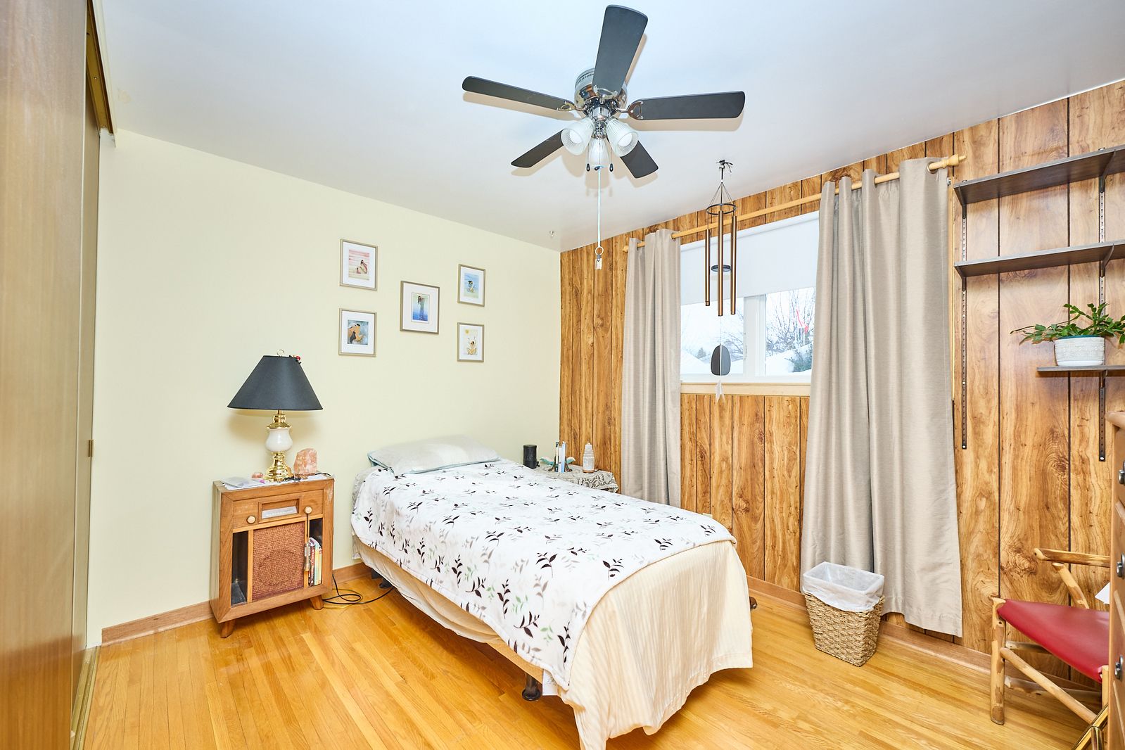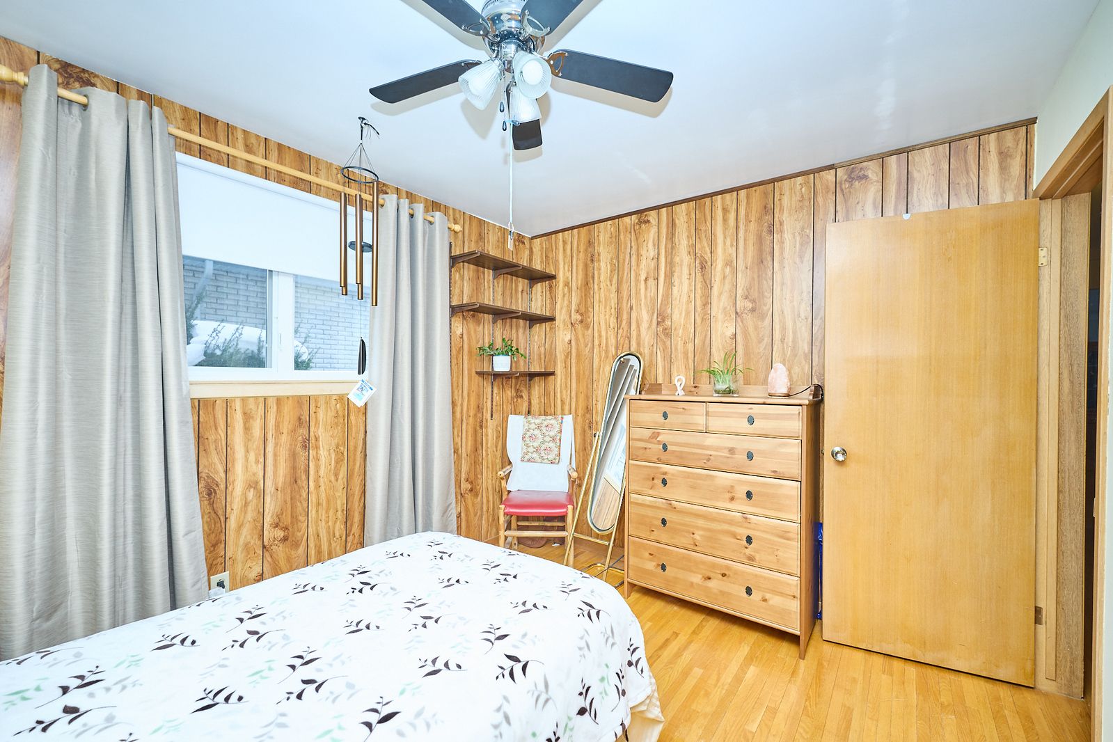 • Three bedrooms and a large living room with hardwood floors.