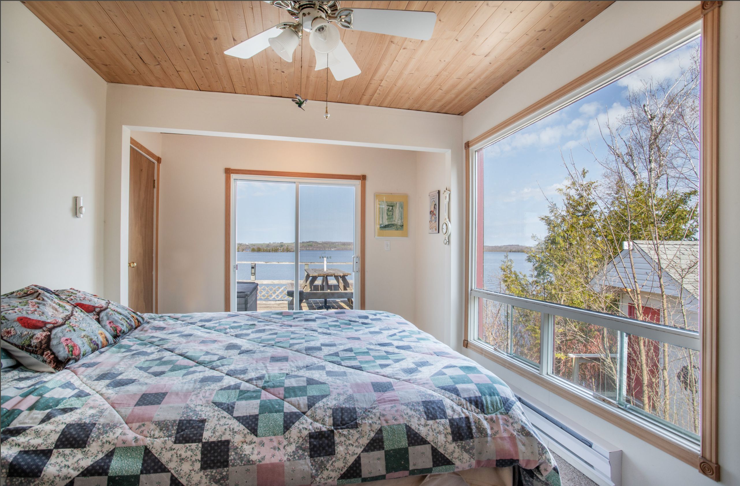 • Stunning panoramic views of Rice Lake from the deck.