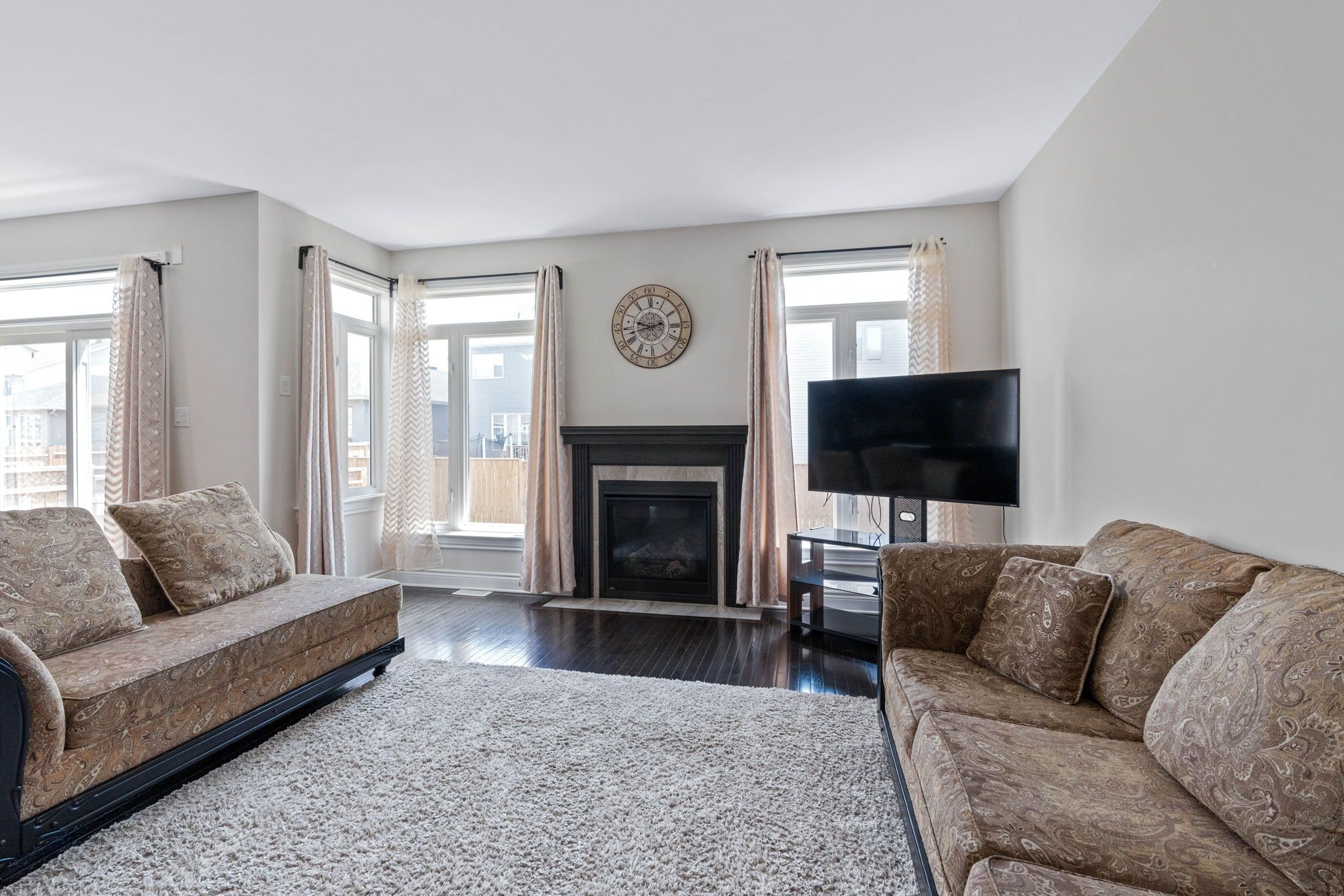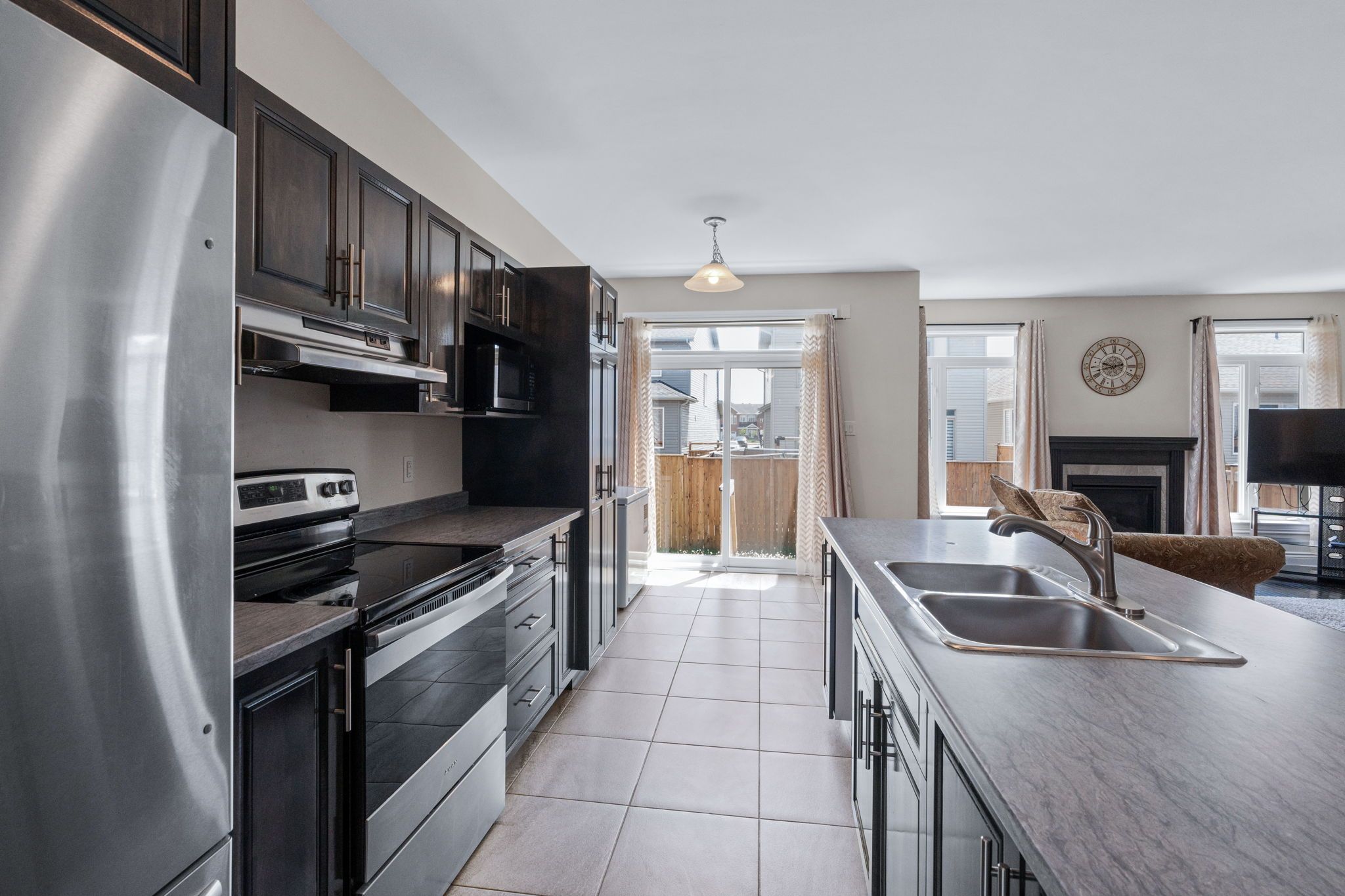 • Bright open concept main level with a cozy fireplace and outdoor access.