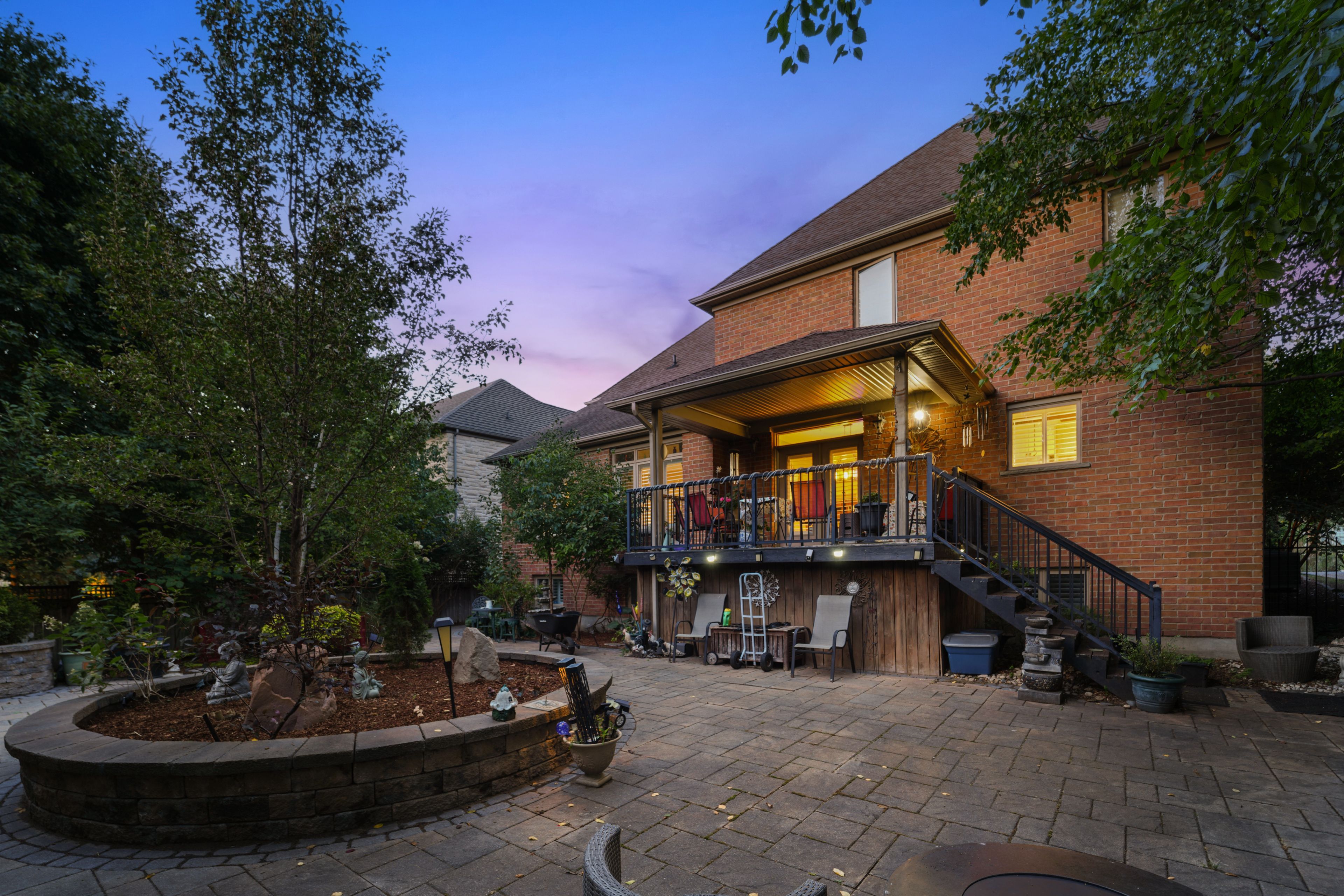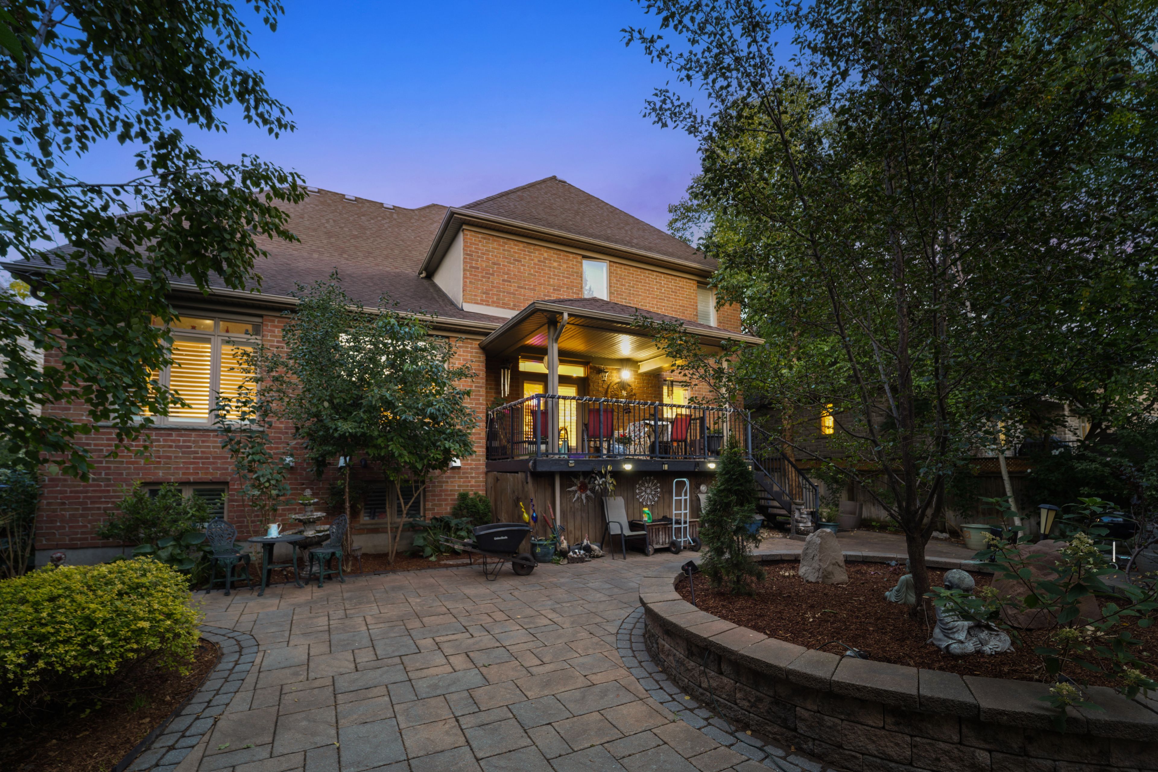 Welcome to 32 pennsylvania crescent, offering over 5,300 sf of total living space with 4 bedrooms and 4 bathrooms. Step inside and be met by a striking hallway open to the second floor. Touring the main floor, the family room boasts a vaulted ceiling and gas fireplace, along with hardwood floors and california shutters throughout. The kitchen is finished with granite countertops and stainless steel appliances, seamlessly connecting to the breakfast nook with a walkout to an elevated deck, ideal for morning coffee or casual dining. Above, the primary suite features his-and-hers closets and a spa-like 5-piece ensuite. Three additional bedrooms are generously sized with ample closets, and a shared 5 piece bath for added convenience. The partially finished lower level offers a recreation area, perfect for relaxing or game nights around the included air hockey table, a dedicated nautilus gym, and open space ready to be customized into a theatre, playroom, or home hub. Outdoors, the low-maintenance backyard features a brick patio, no lawn to mow, and an included propane fire table, a ready-made retreat for entertaining or evenings under the stars. Set on a quiet crescent yet minutes to top-rated schools, shopping, trails, and commuter routes, this property blends convenience, comfort, and space at one address.