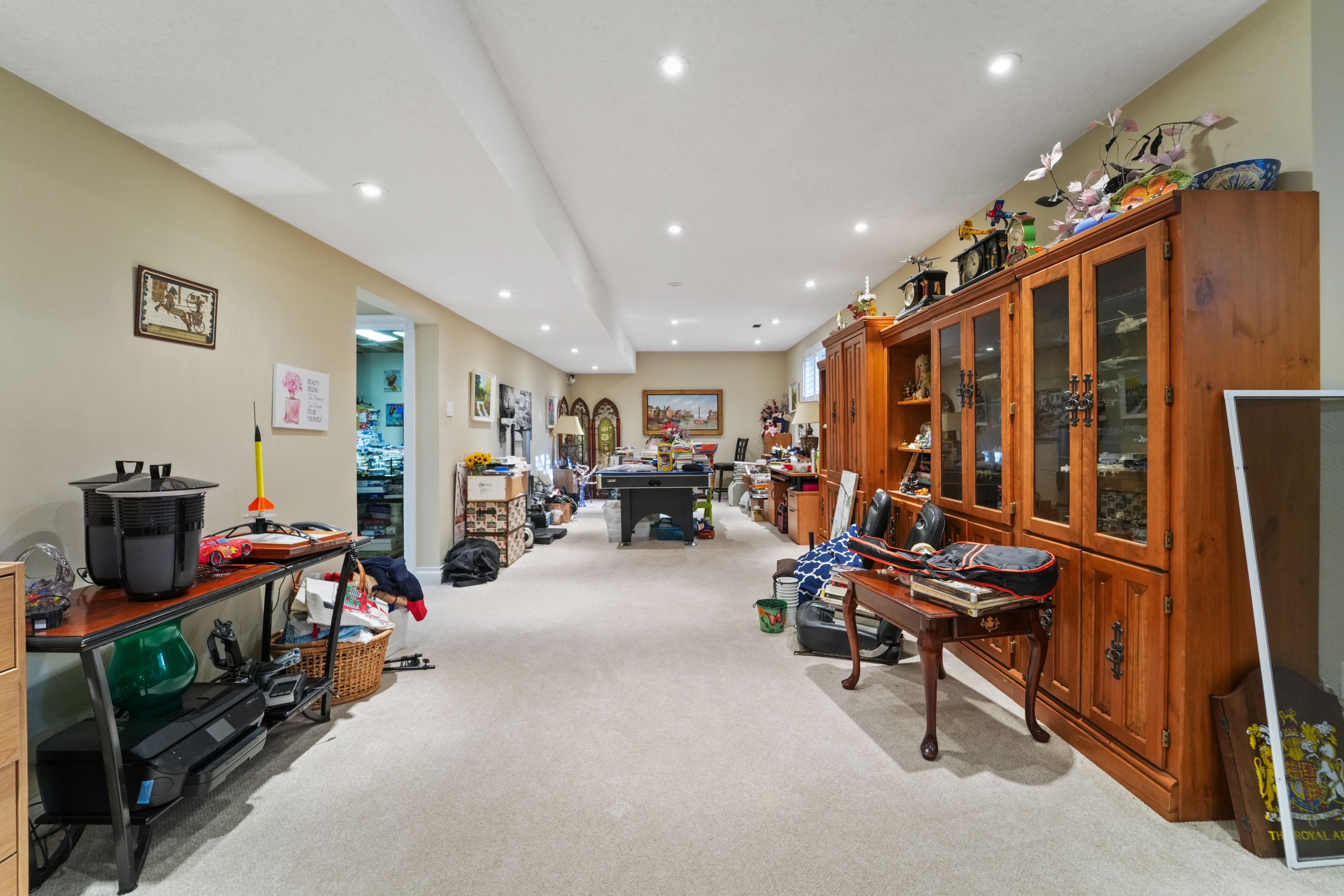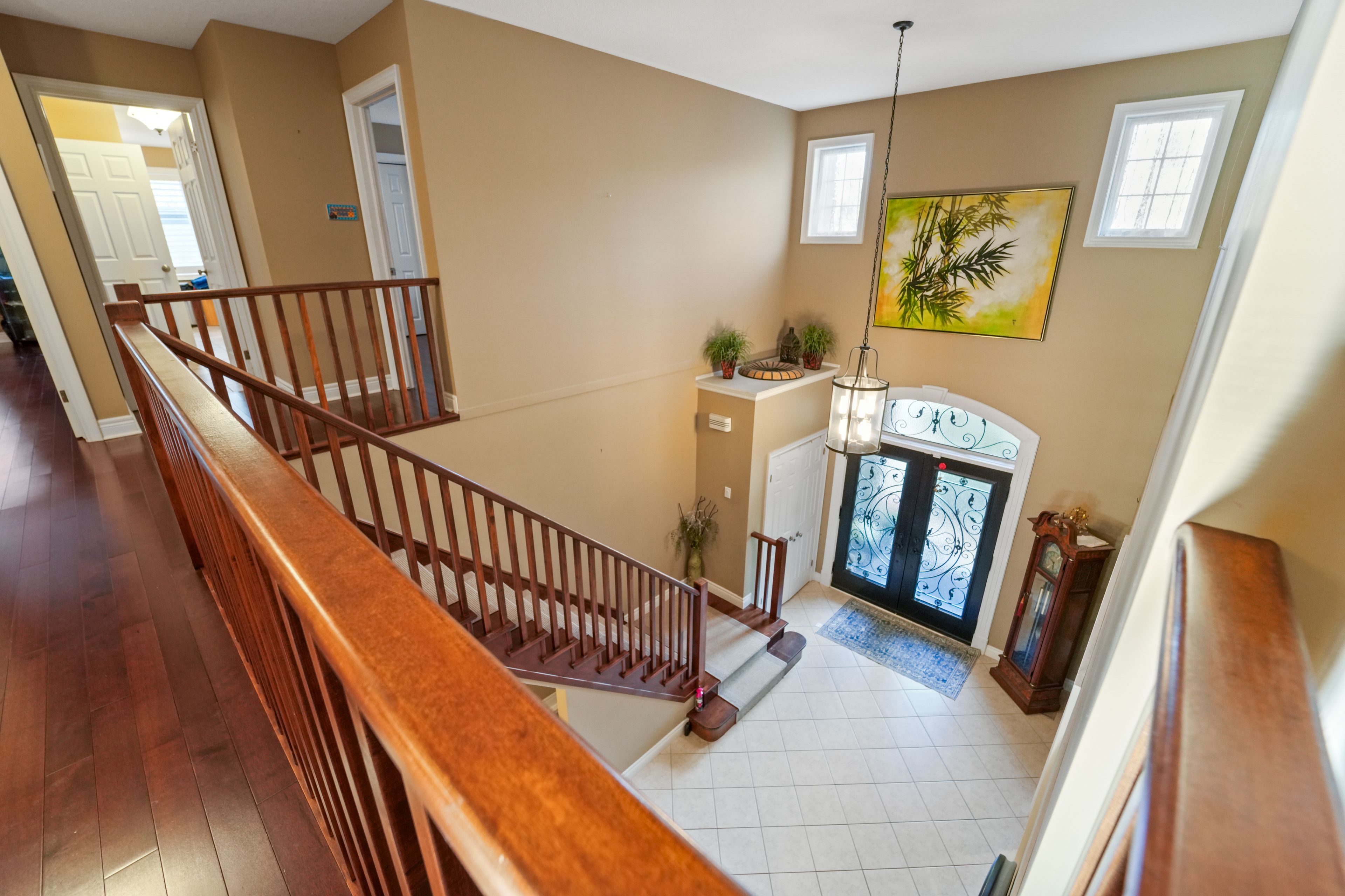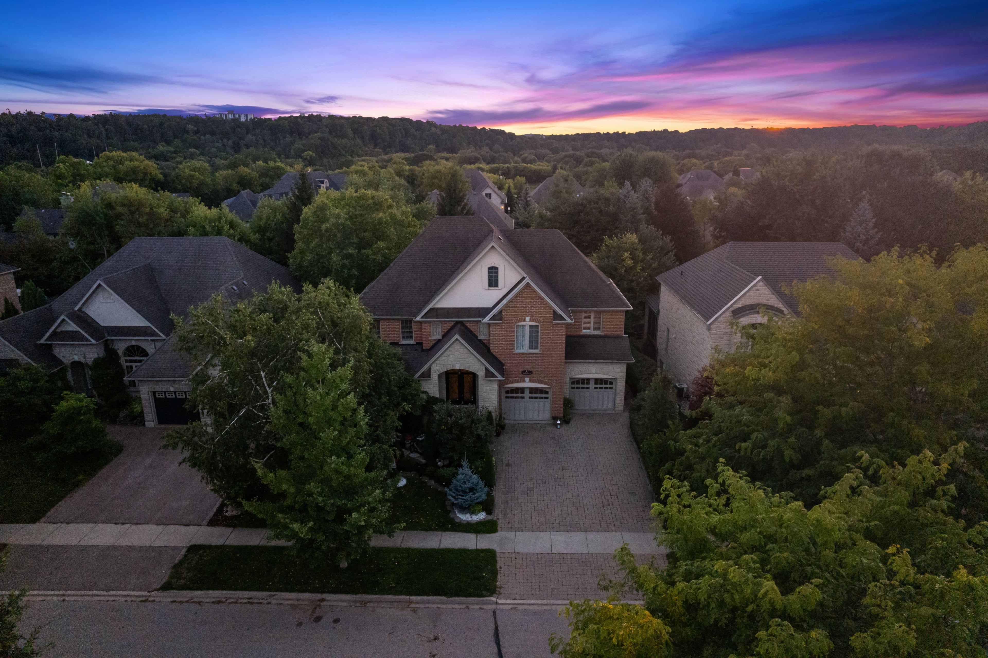 Welcome to 32 pennsylvania crescent, offering over 5,300 sf of total living space with 4 bedrooms and 4 bathrooms. Step inside and be met by a striking hallway open to the second floor. Touring the main floor, the family room boasts a vaulted ceiling and gas fireplace, along with hardwood floors and california shutters throughout. The kitchen is finished with granite countertops and stainless steel appliances, seamlessly connecting to the breakfast nook with a walkout to an elevated deck, ideal for morning coffee or casual dining. Above, the primary suite features his-and-hers closets and a spa-like 5-piece ensuite. Three additional bedrooms are generously sized with ample closets, and a shared 5 piece bath for added convenience. The partially finished lower level offers a recreation area, perfect for relaxing or game nights around the included air hockey table, a dedicated nautilus gym, and open space ready to be customized into a theatre, playroom, or home hub. Outdoors, the low-maintenance backyard features a brick patio, no lawn to mow, and an included propane fire table, a ready-made retreat for entertaining or evenings under the stars. Set on a quiet crescent yet minutes to top-rated schools, shopping, trails, and commuter routes, this property blends convenience, comfort, and space at one address.