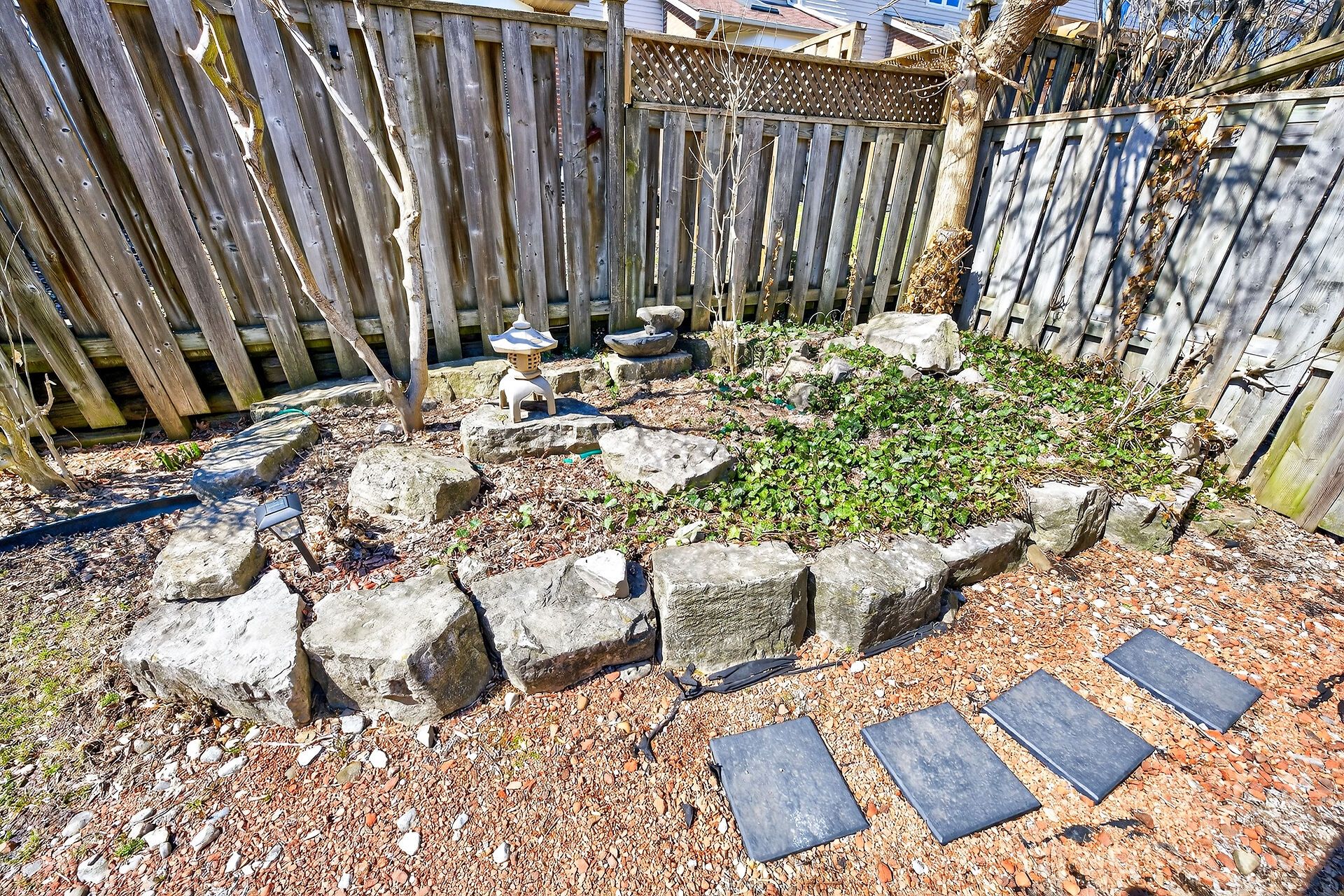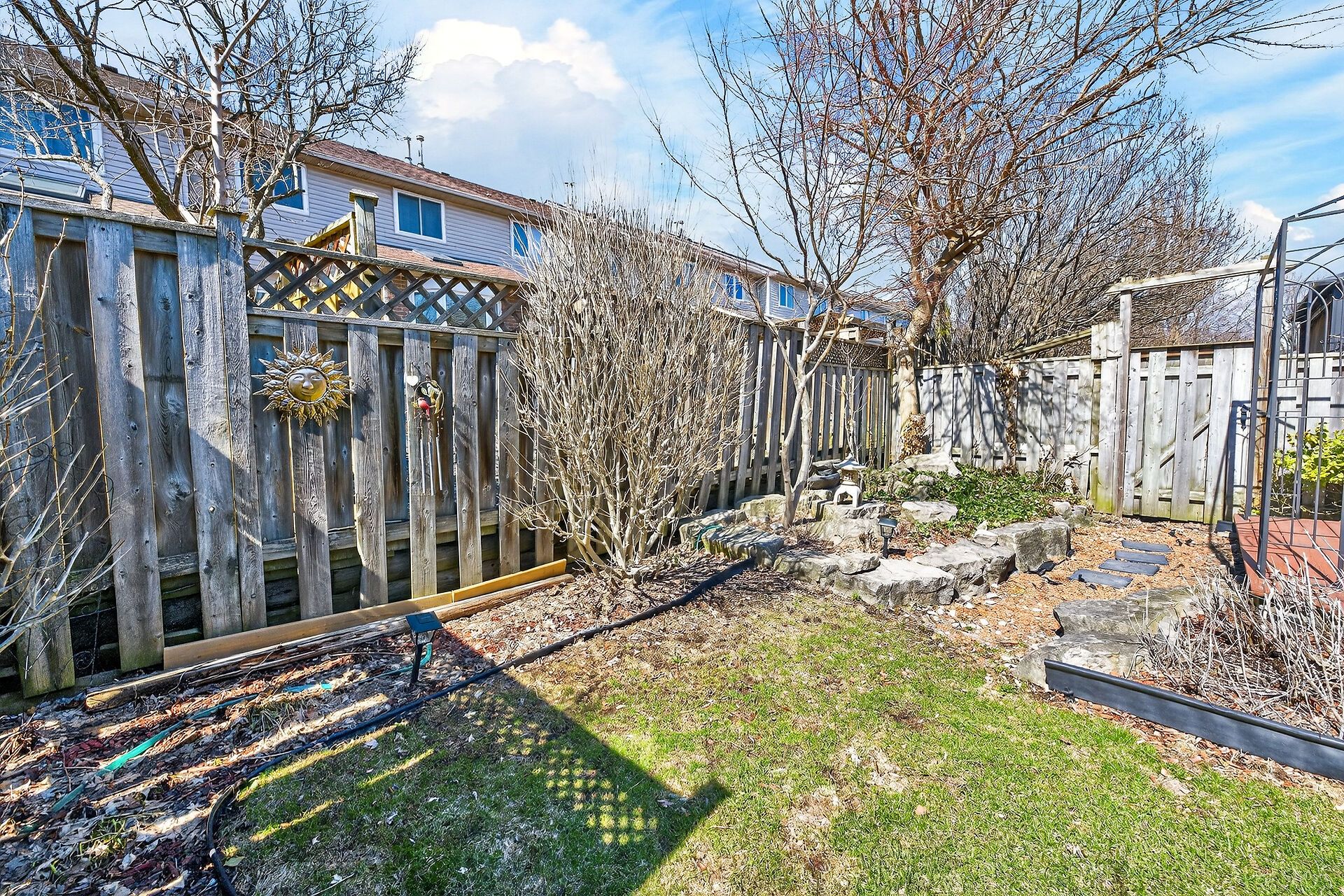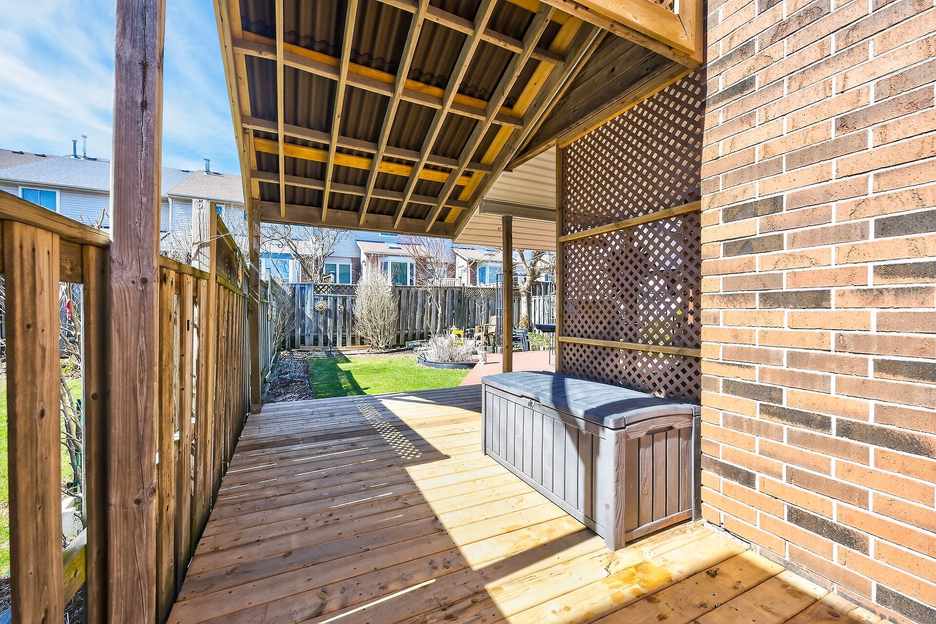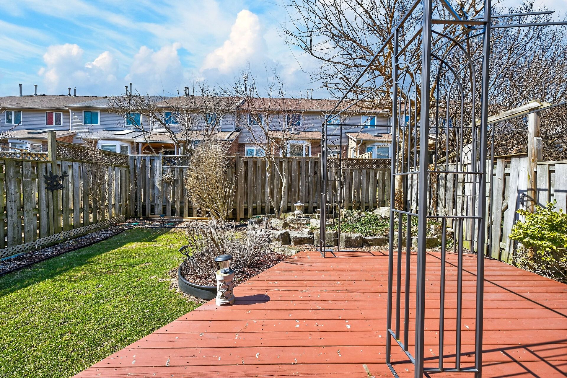 • Private backyard oasis with a covered porch and custom deck.