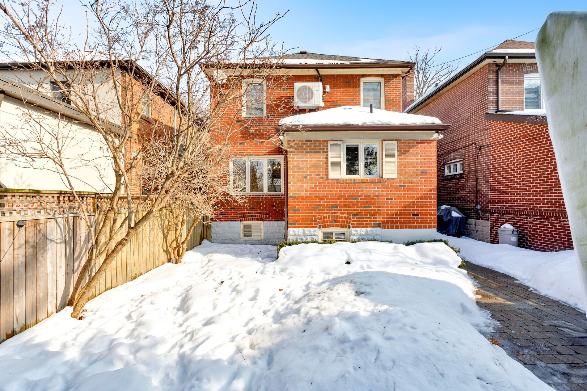 An exquisite, impeccably maintained 3 bedroom residence with private drive in the coveted old mill neighbourhood! This pristine family home tastefully blends timeless original details with thoughtful updates. The main level features an oversized living room with bay window, stained glass feature windows flanking the elegant gas fireplace, crown moulding, and hardwood floor; adjoining airy dining room with large triple window overlooking the backyard, and french doors open to the kitchen; eat-in chef's kitchen with custom cabinetry, premium wolf, sub-zero and miele appliances, abundant granite countertops, pot lights, and built-in bench seating. The second floor offers three bedrooms with closets including a generously sized primary bedroom with extensive custom cabinetry and built-in closet system; second bedroom with two closets and built-in dresser; third sizeable bedroom with closet and garden views; spacious three-piece family bathroom with walk-in glass shower; and hallway linen closet. New wool broadloom throughout 2nd level. The lower level with separate entrance features a recreation room with wool broadloom, two storage closets, and window; office area with window; laundry room with sink and tile flooring; four-piece bathroom with soaker tub and separate walk-in shower; and utility room with storage space. Wonderful curb appeal with superb landscaping, new interlock driveway (2025), front irrigation, and delightful plantings. Private fully fenced west-facing backyard with stone patio perfect for entertaining, perennials, and an oversized 17' by 7' garden shed. Newer high efficiency boiler (2023) and central air conditioner (2024). A marvelous property close to tremendous amenities! Steps to the humber river walking & cycling trails, old mill tennis club, the baby point club, bloor west village shops & restaurants, and the subway. Top local schools include st. Pius x catholic school & humbercrest public school w/french immersion.