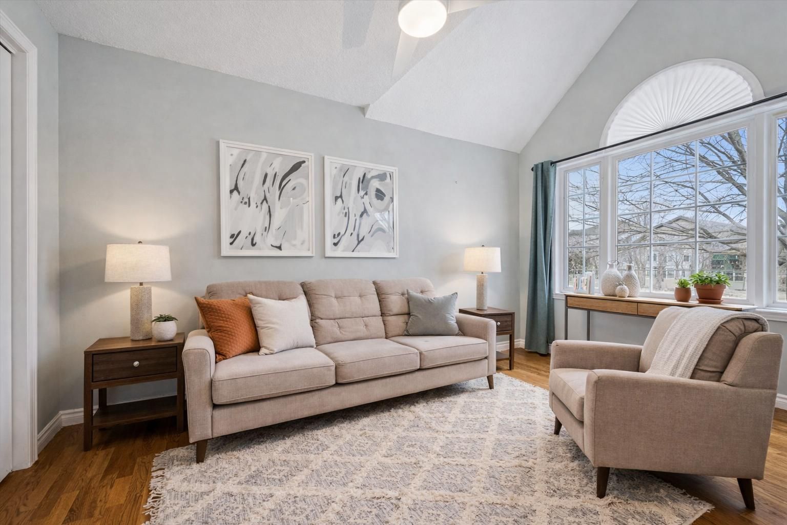 • Spacious living room featuring vaulted ceilings and abundant natural light.