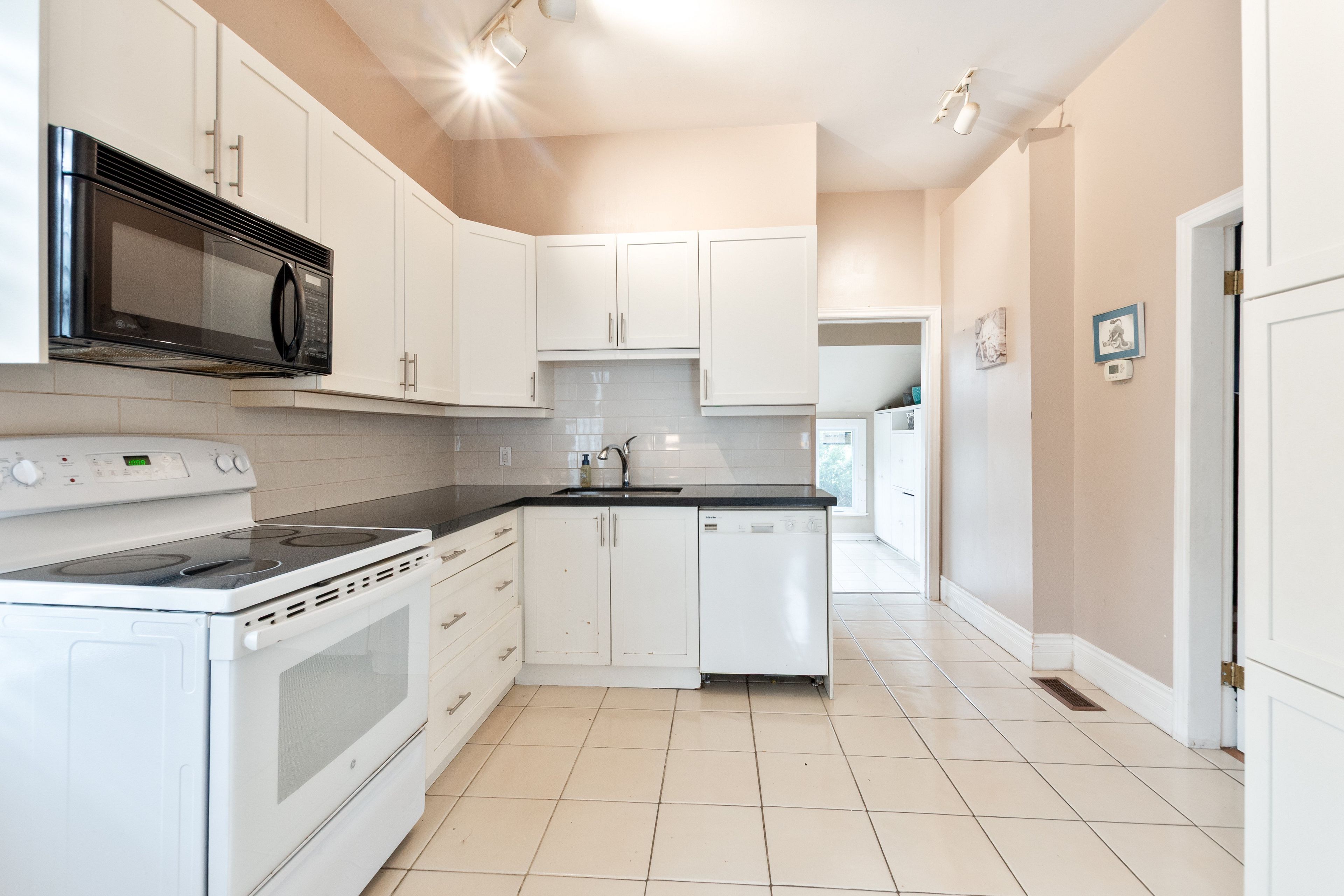 • Spacious eat-in kitchen with granite counters and inviting layout.