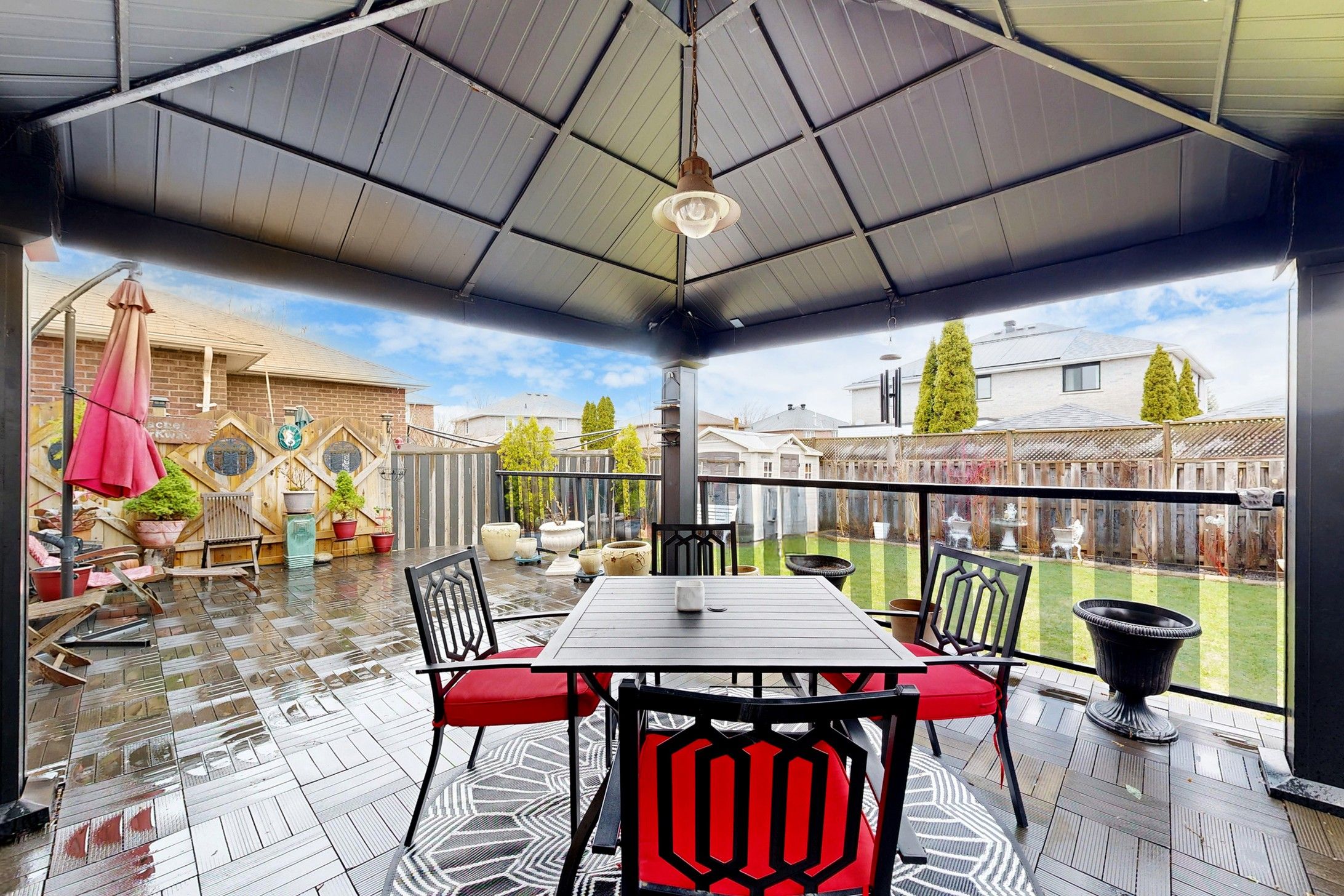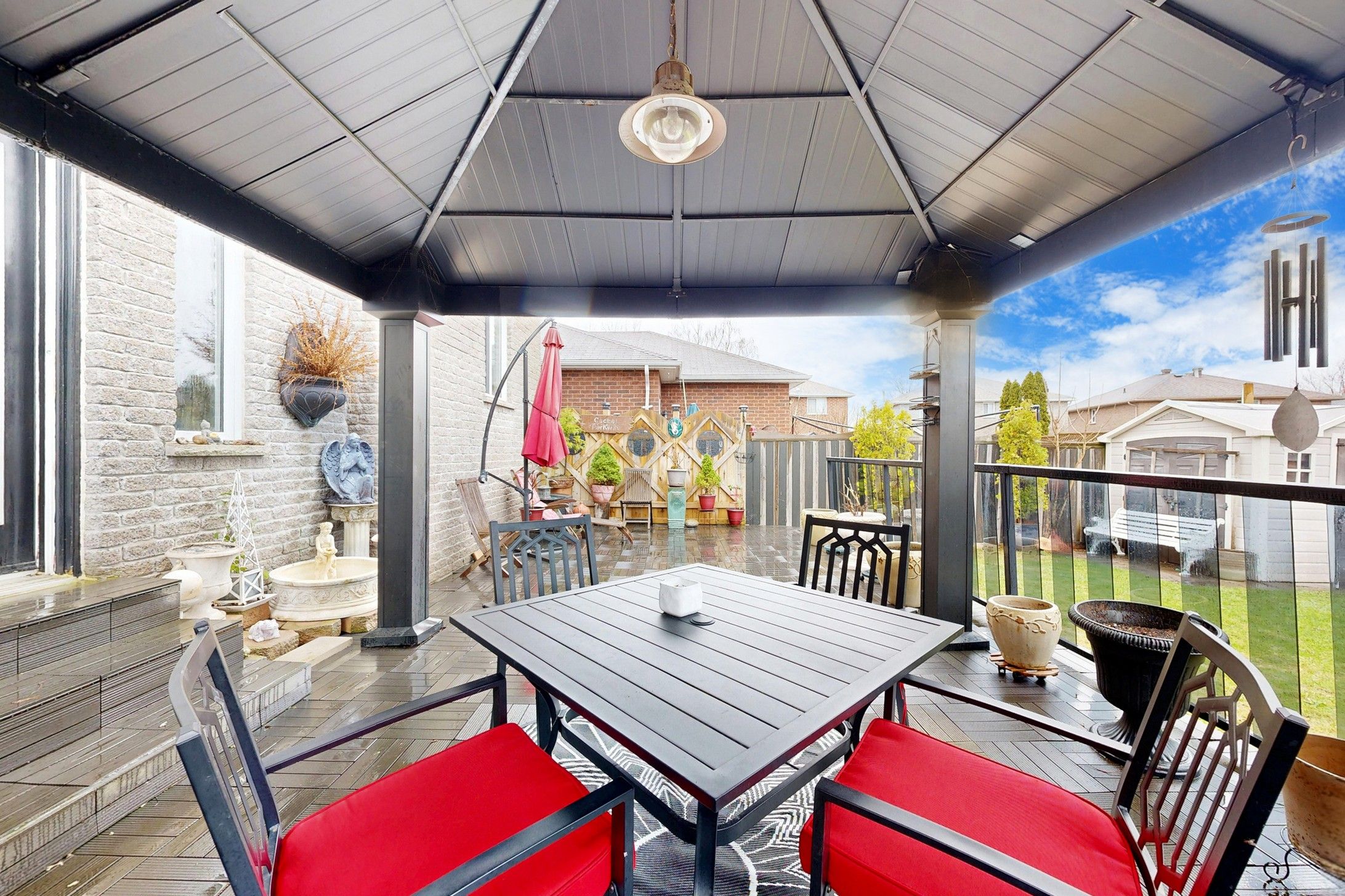 • Backyard oasis featuring a large deck, gazebo, and BBQ area.