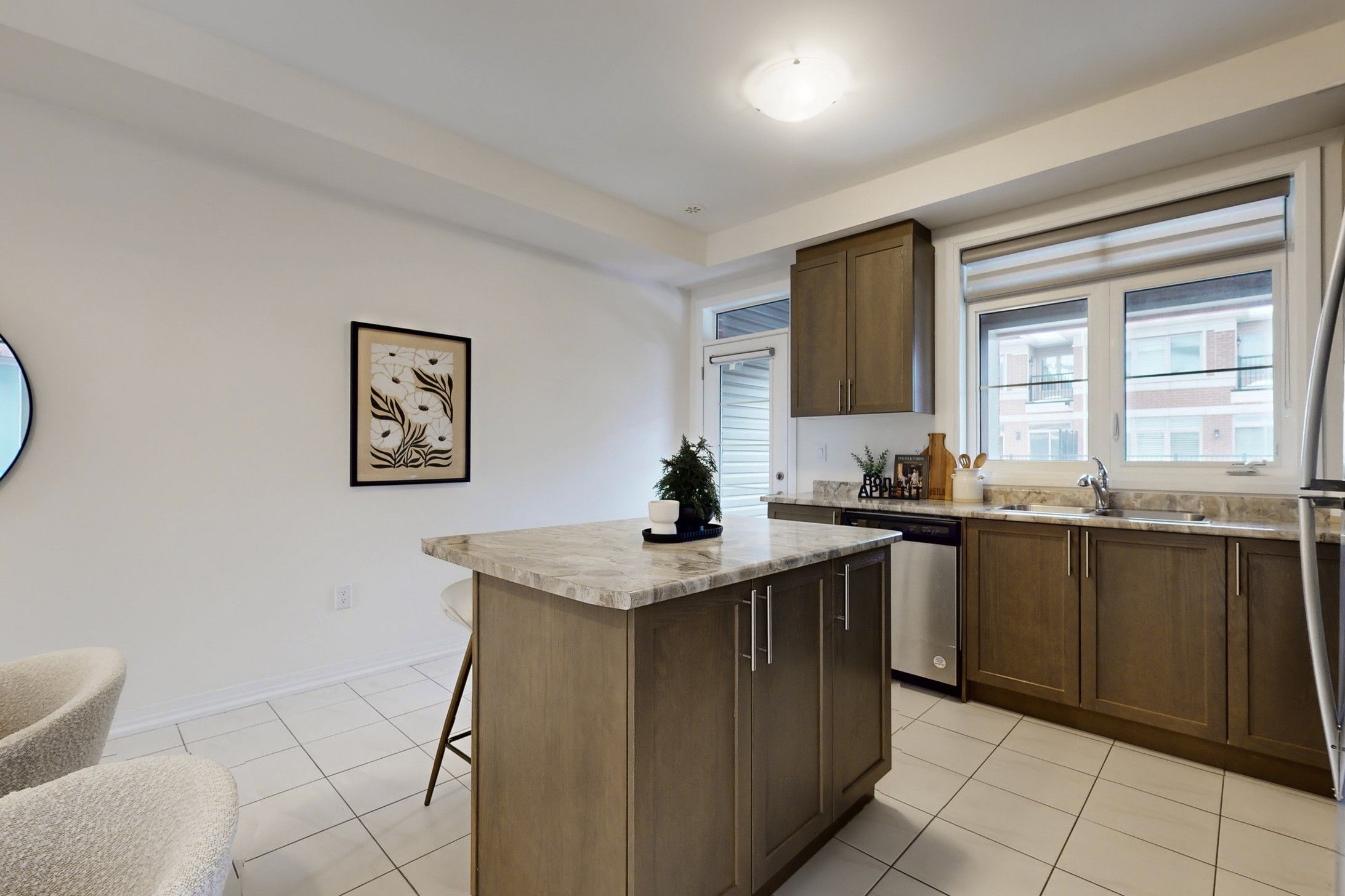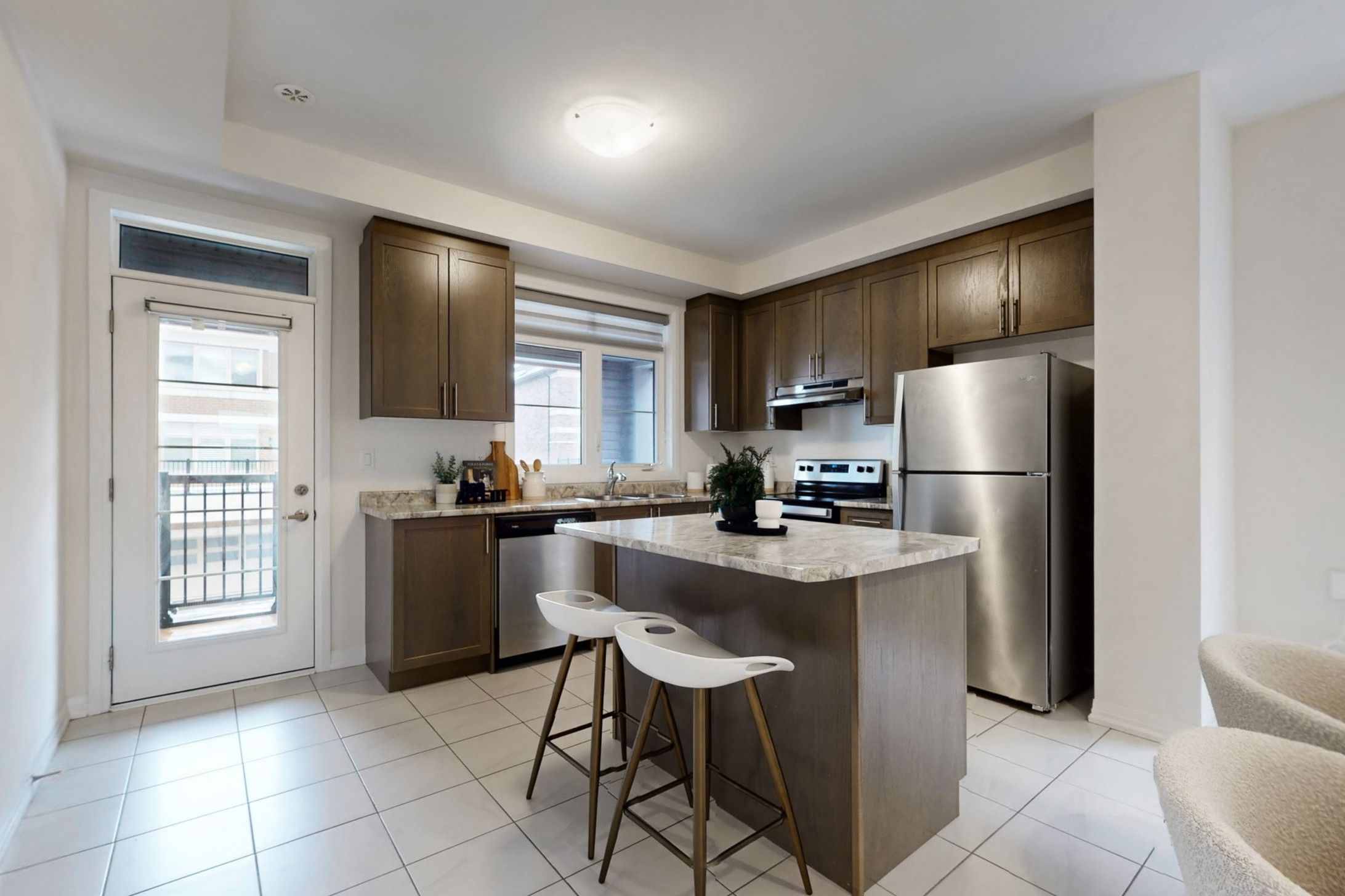 • Modern kitchen with walk-out to a balcony for fresh air.