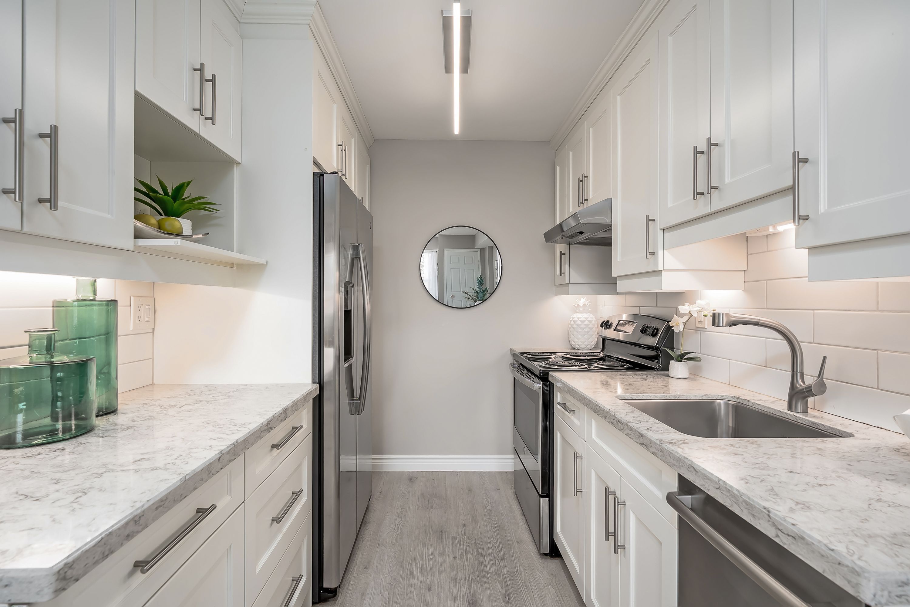 • Upgraded flooring, light fixtures, and fresh paint for a contemporary feel.