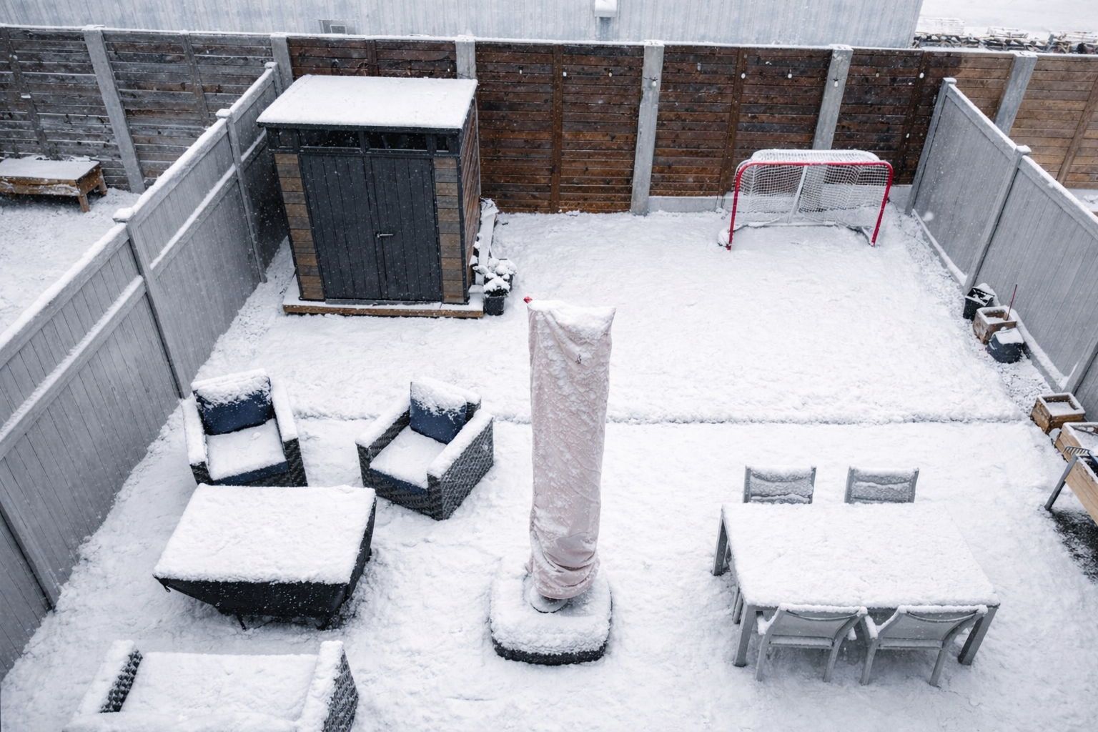 • Private backyard oasis with patio and low-maintenance turf.