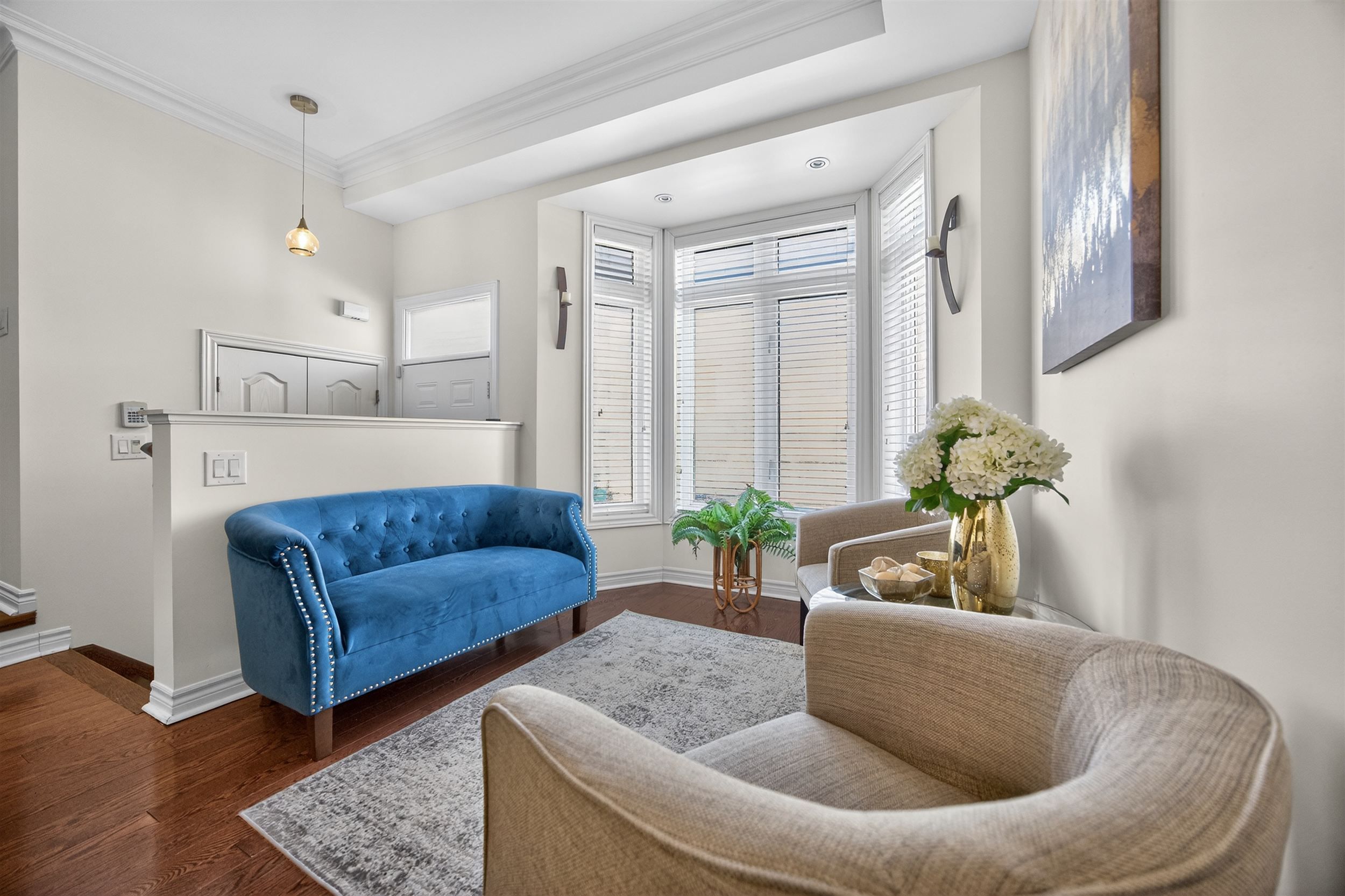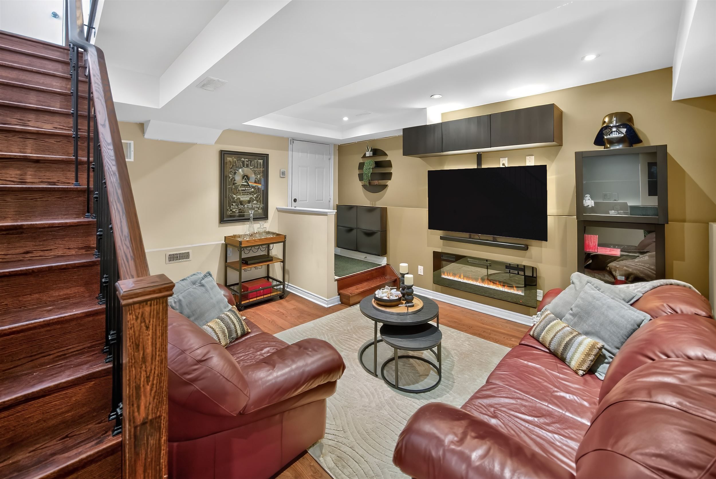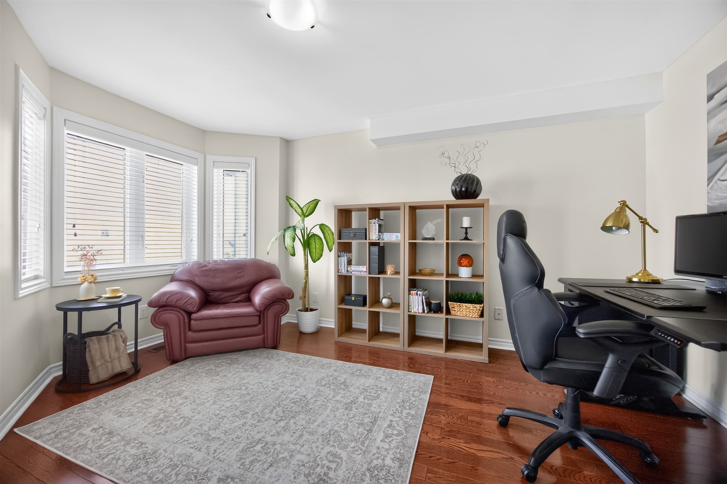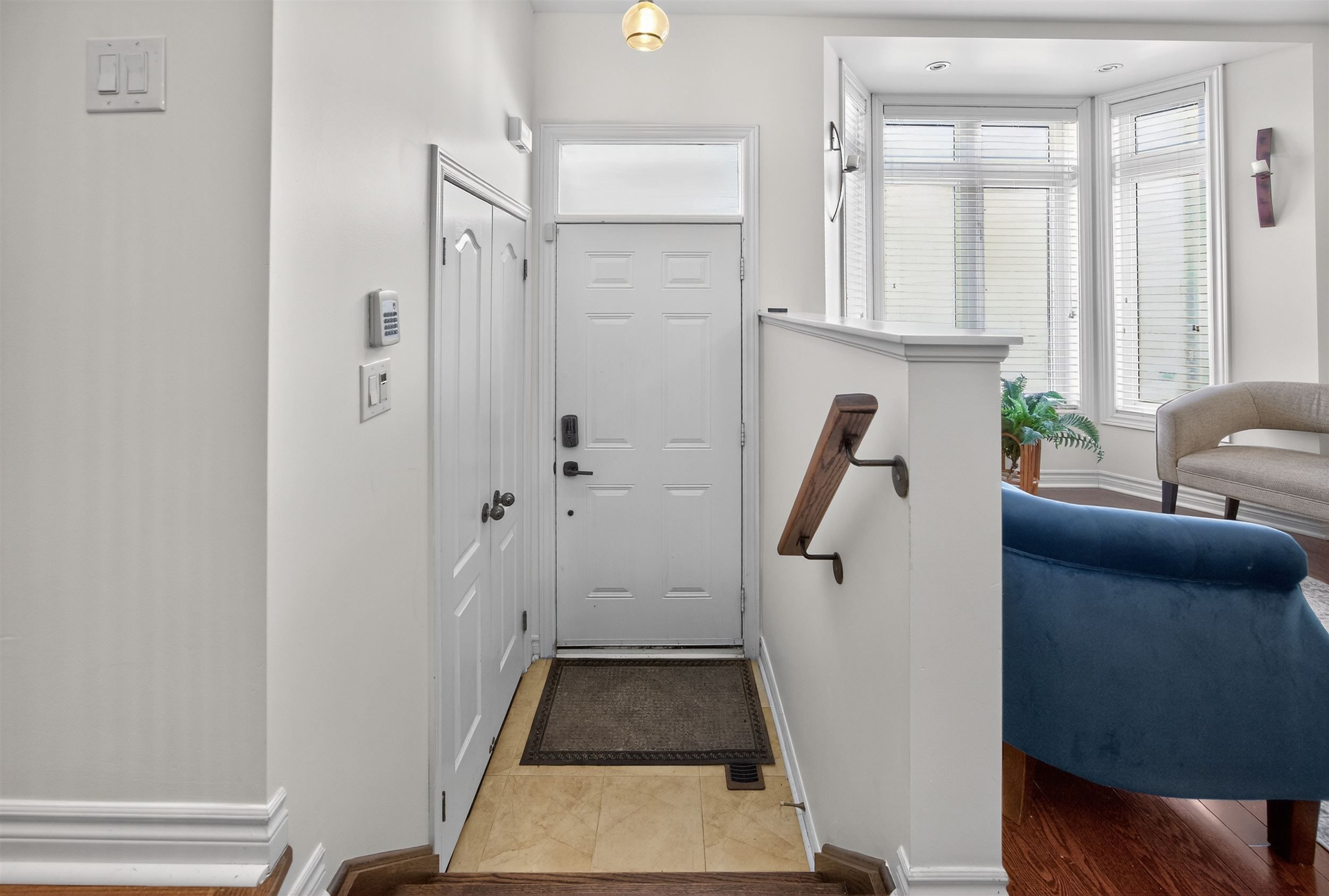 Rarely offered; a 4 bedroom, end unit in a well maintained freehold townhouse complex. Feels more like a semi. All 4 spacious bedrooms have double closets; lots of storage in this home. 3 bathrooms, and a laundry room conveniently located on the 2nd floor. The primary has a huge 5 piece ensuite and a juliette balcony. The classic kitchen has ample cabinetry, granite counters, pot lights, and a breakfast island. It also has french doors that open up to a private patio with gas hook up. Beautiful hardwood floors throughout, quality crown molding on the main floor, and staircases of hardwood with rod iron pickets. The lower level has a cozy family room with laminate floors, pot lights a direct access to the garage. The location is convenient to the 401 and walking distance to shopping that includes canadian tire, shoppers, dollarama and much more. Schools, a park with the community center is also walkable. If you are looking for more space in a location that can't be beat, check out this lovely home.