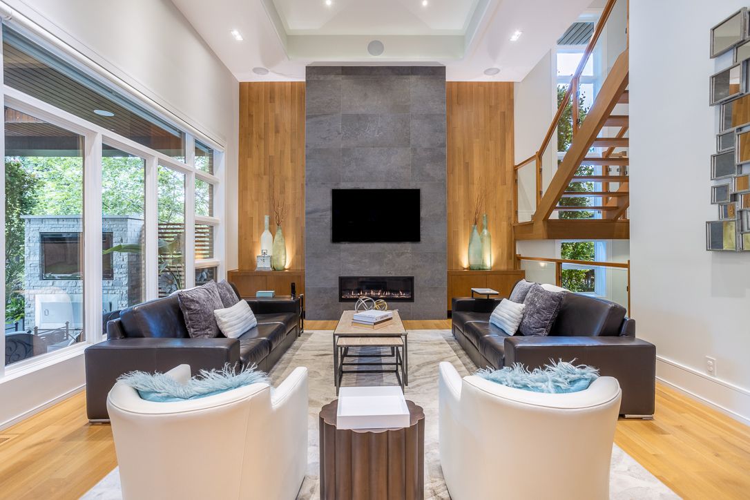 • Expansive main floor with a chef's kitchen and dramatic family room.
