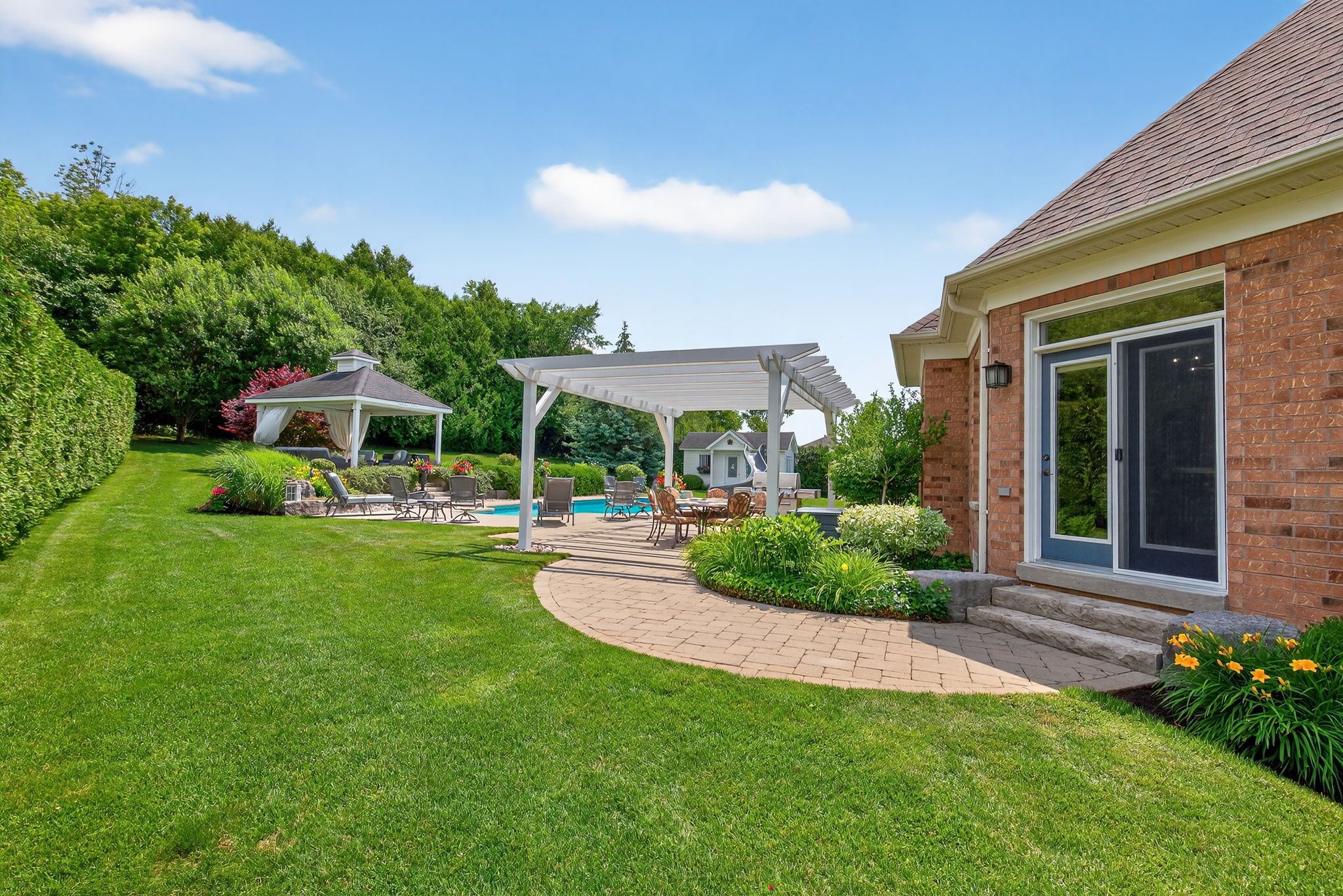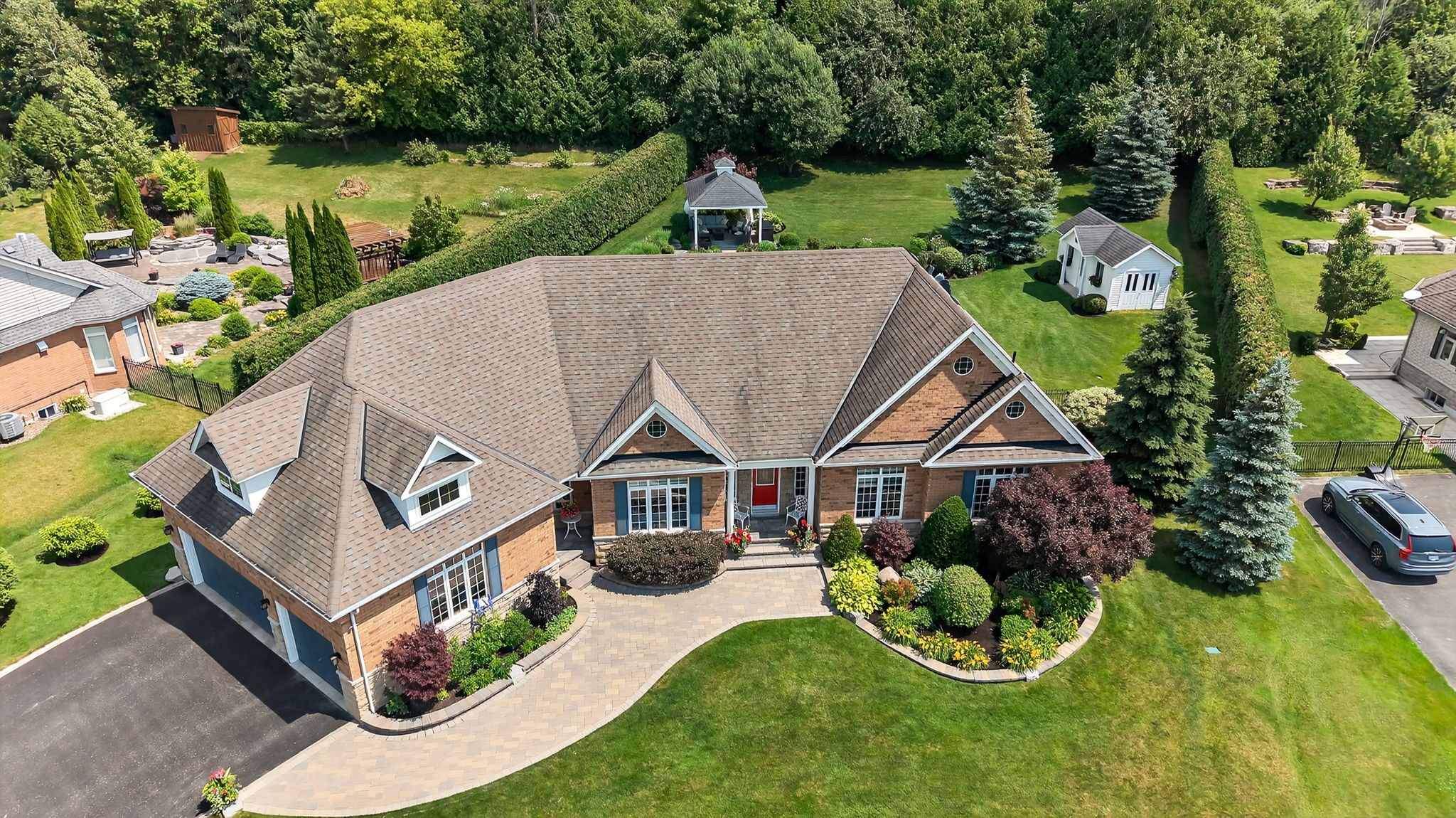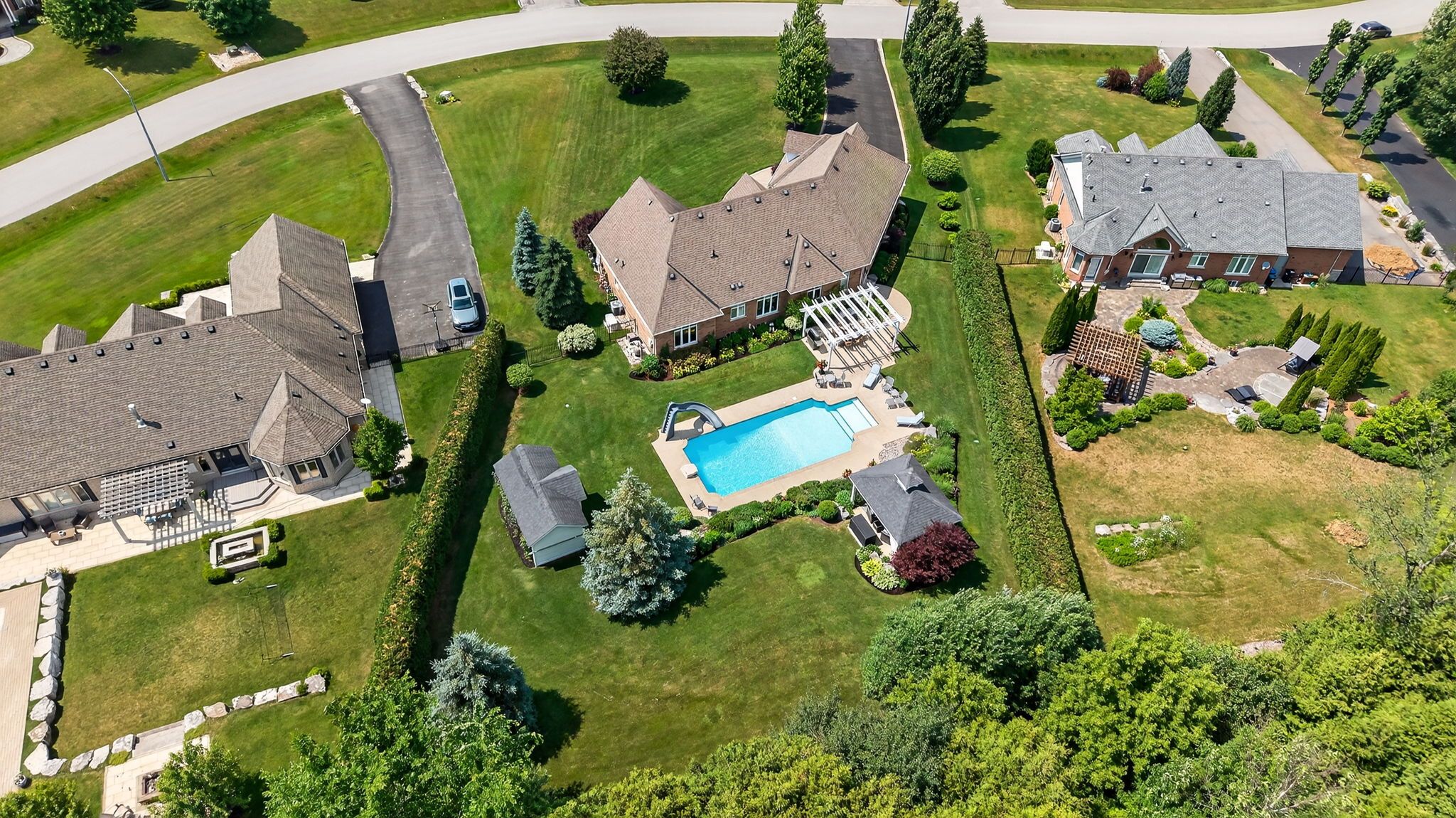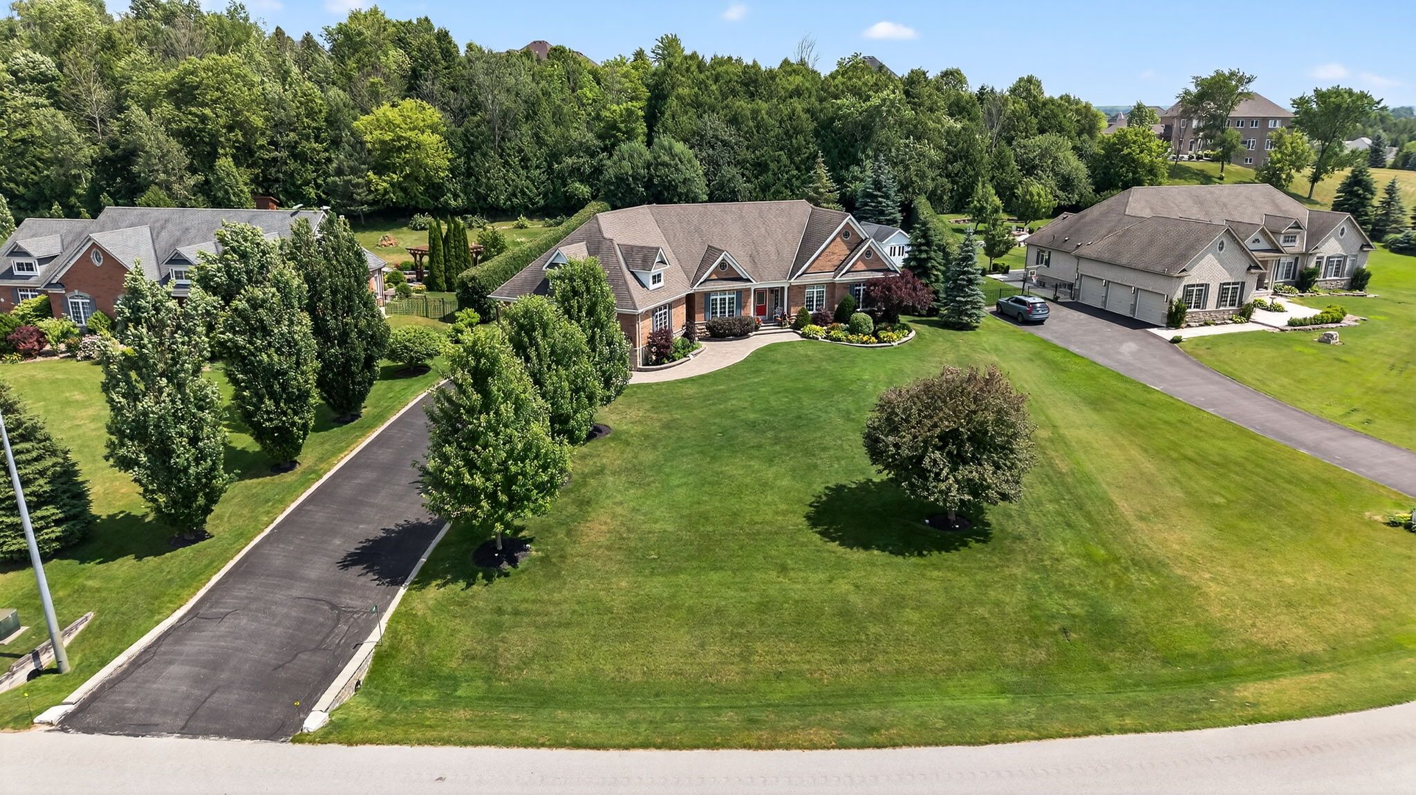 Welcome to ridgehill estates, located in alliston, ontario, where homes are rarely offered for sale. Just 45 minutes to the gta, alliston provides for tranquil living with all the amenities. Situated on just shy of an acre, this all brick & stone bungalow boasts luxury, elegance & beauty beginning at the tree-lined driveway that can accommodate many vehicles & boasts the most serene and completely private backyard oasis, surrounded by beautiful perennial gardens & offers an in-ground salt water pool, an elevated gazebo, a cabana/gardening shed & dining pergola. Fully fenced with privacy hedge plus in-ground sprinklers. The main floor of this bungalow has been completely renovated with high end finishes & lighting, including stunning kitchen with porcelain counters, an expansive eat at island, pantry, formal dining room with coffered ceiling, a cozy family room, a front living room /office, all three bathroom makeovers are a must see, upscale main floor laundry & mudroom off the 3 car garage & hardwood & beautiful modern porcelain tile flow throughout this sprawling 2382 sq ft home. On the lower level, you'll find another 2382 sq ft, with about half finished with an amazing rec room with kitchenette & bathroom, leaving plenty of room for a media room & nanny/in-law suite should you desire & is equipped with a backup generator. This lovely neighbourhood has 26. 7 acres owned by the community & features many kilometres of exclusive forested walking trails & a social committee that organizes fun events throughout the year. Located just outside alliston & only 10 min to hwy 400. Award-winning golf is 5 min away, & ski hills & beaches are just a short drive. Perfectly suited for retirees or a young family looking to grow.