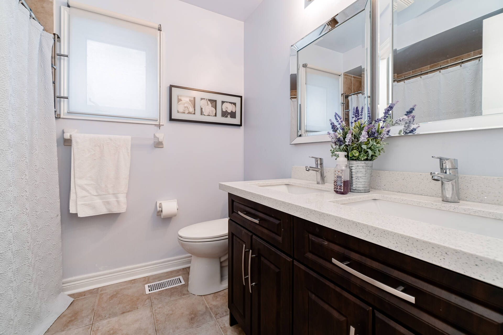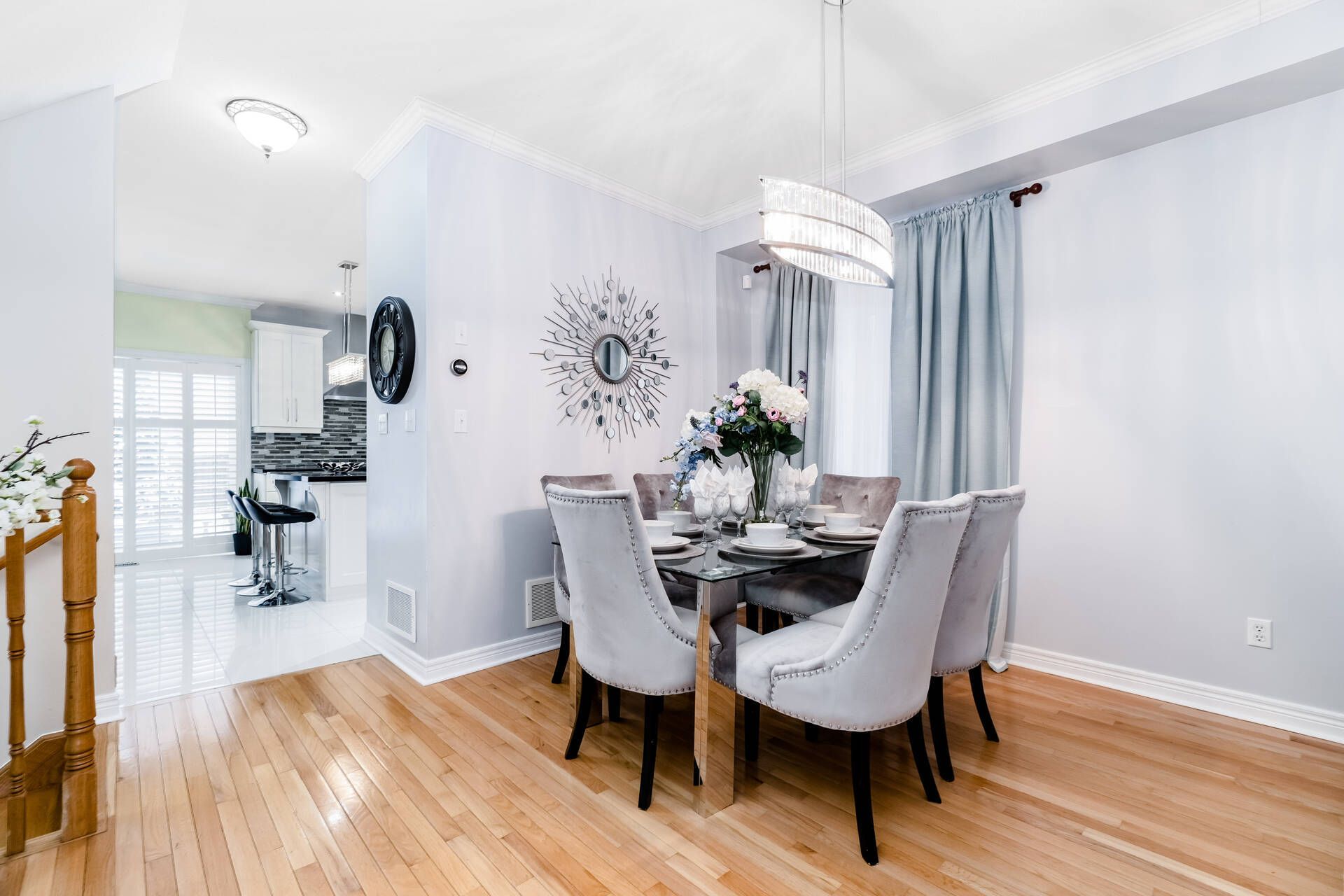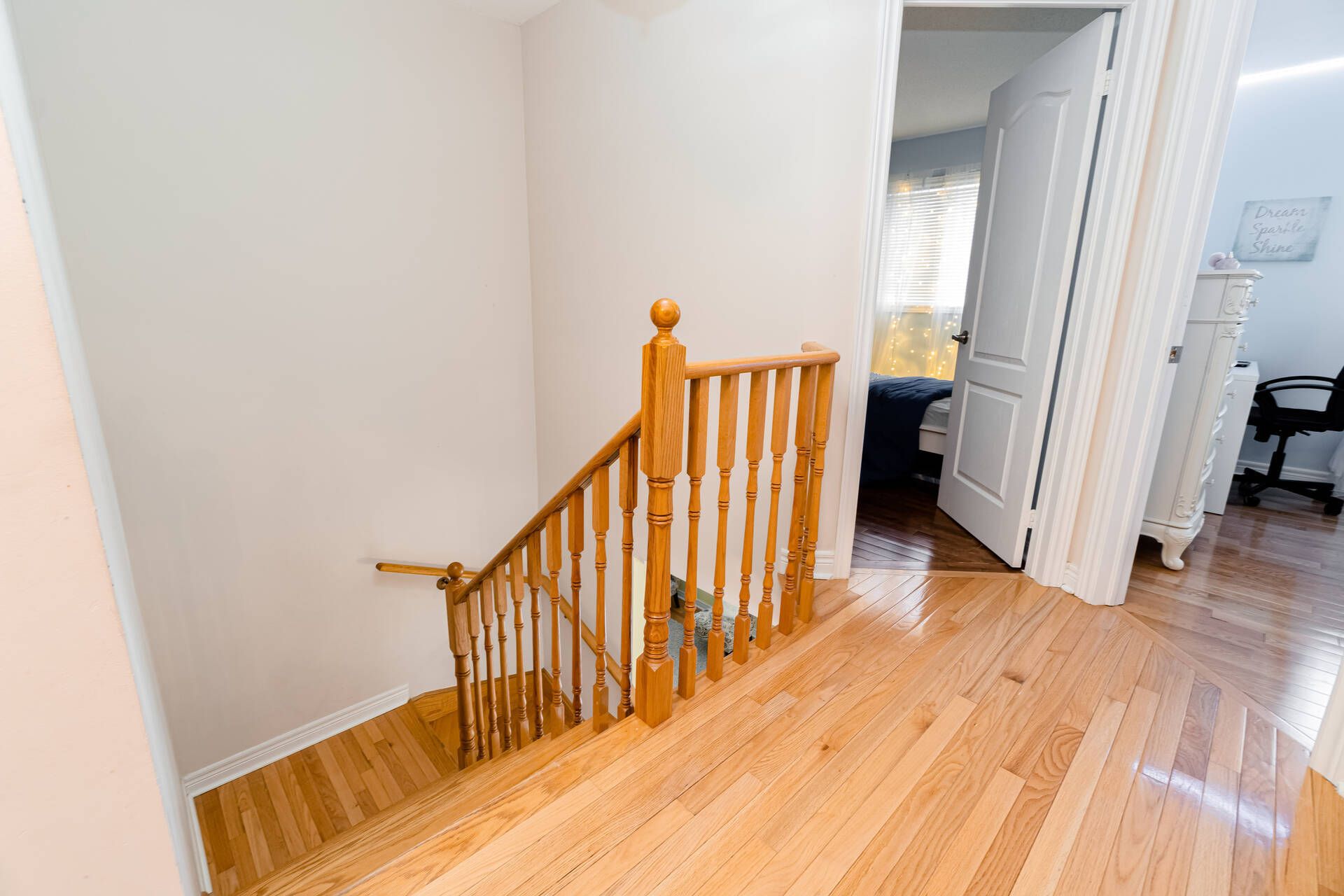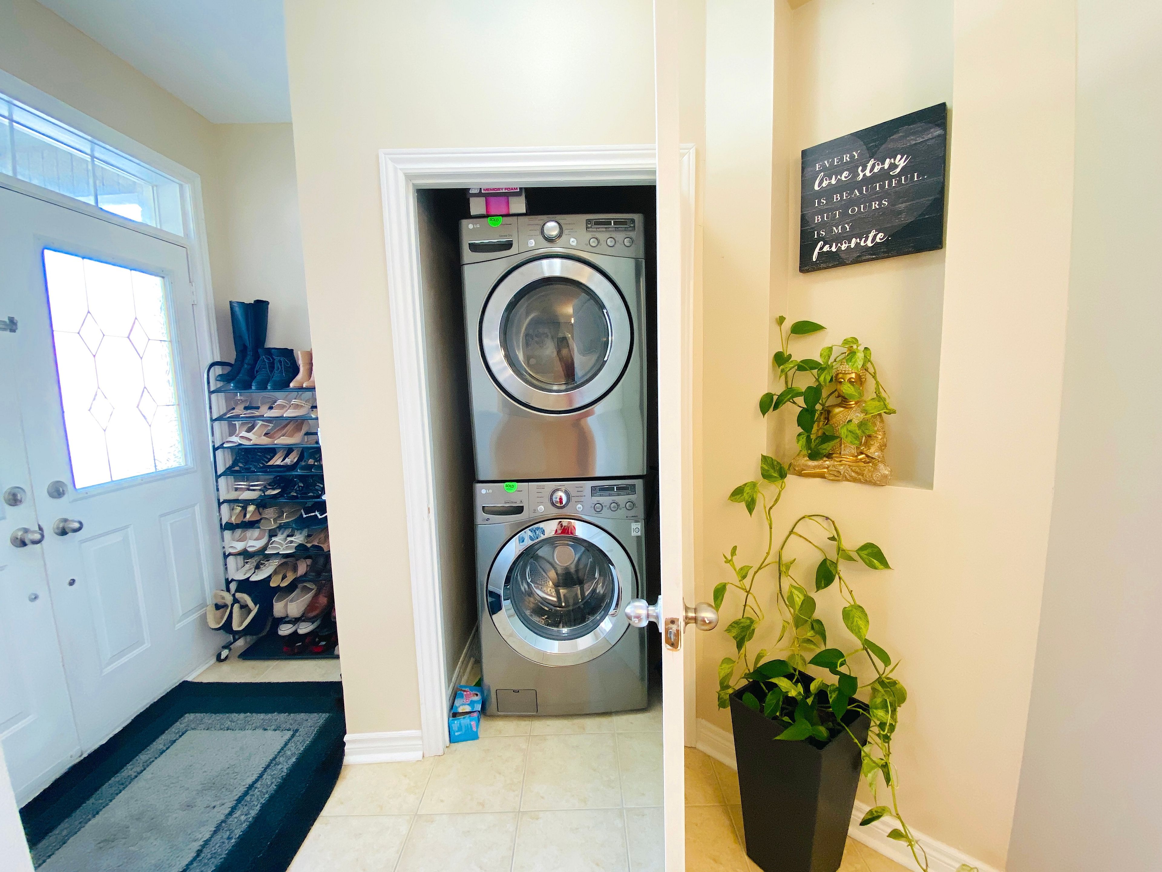 • Hardwood flooring on main floor and laminate upstairs, no carpet throughout.