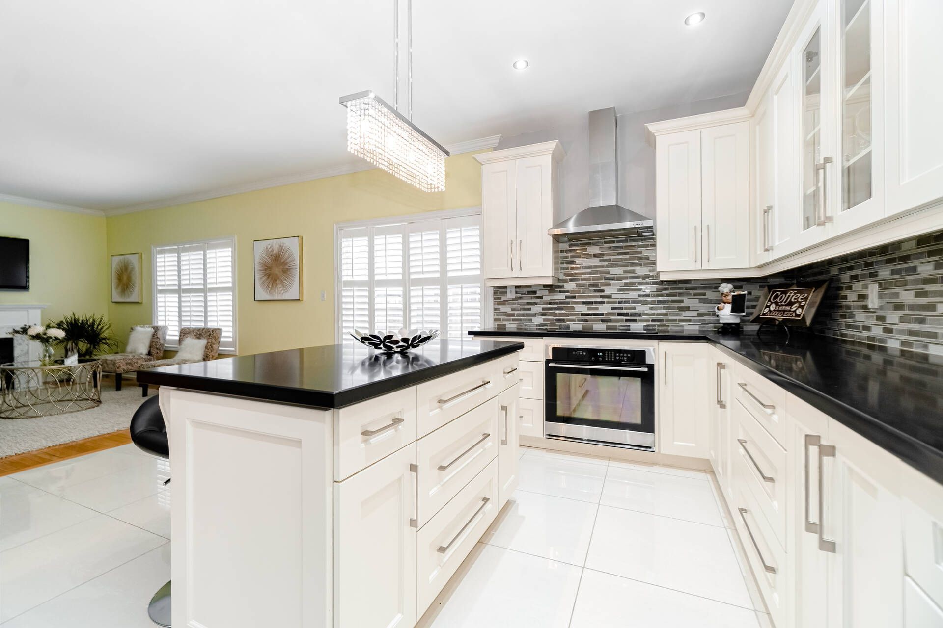 • Spectacular kitchen with built-in stainless steel appliances and center island.