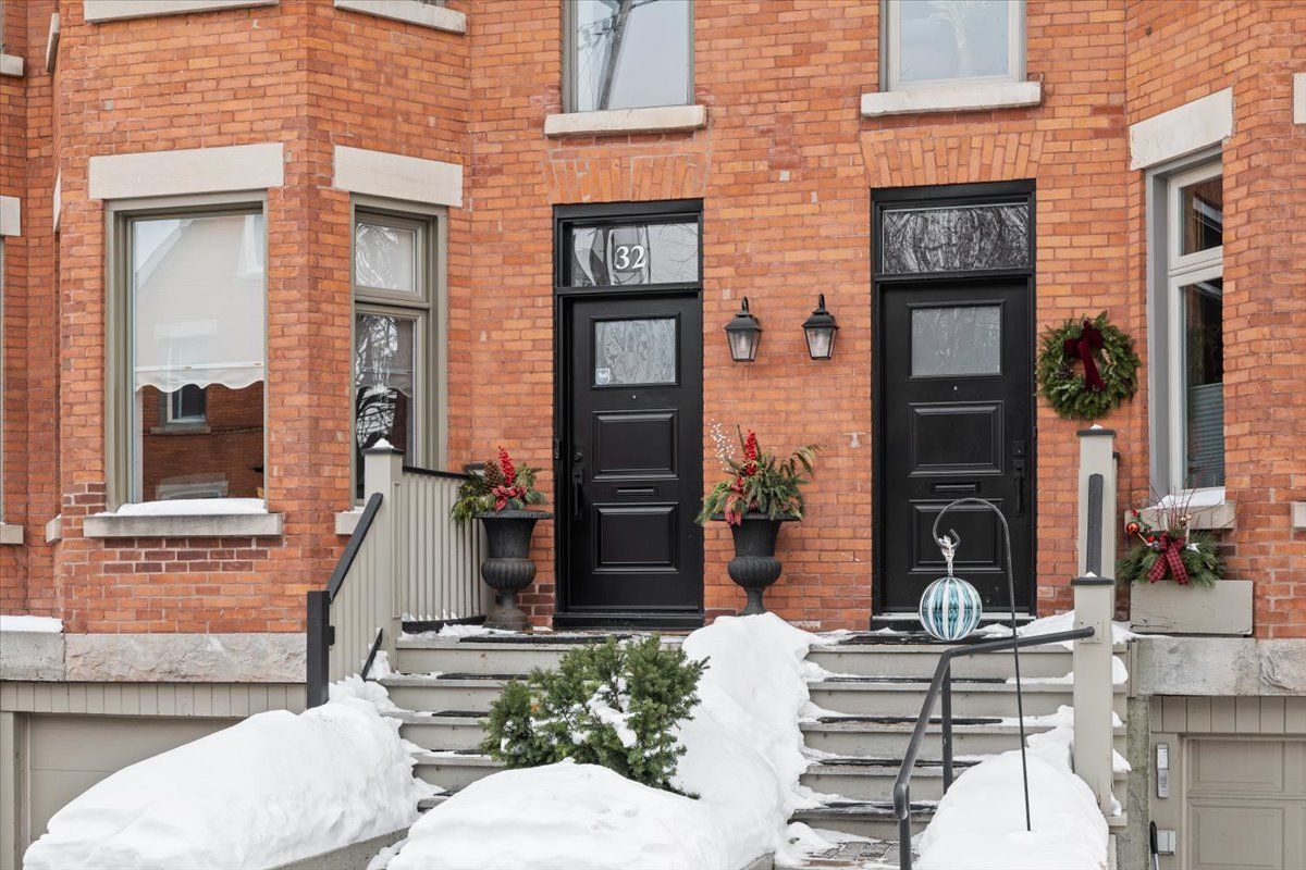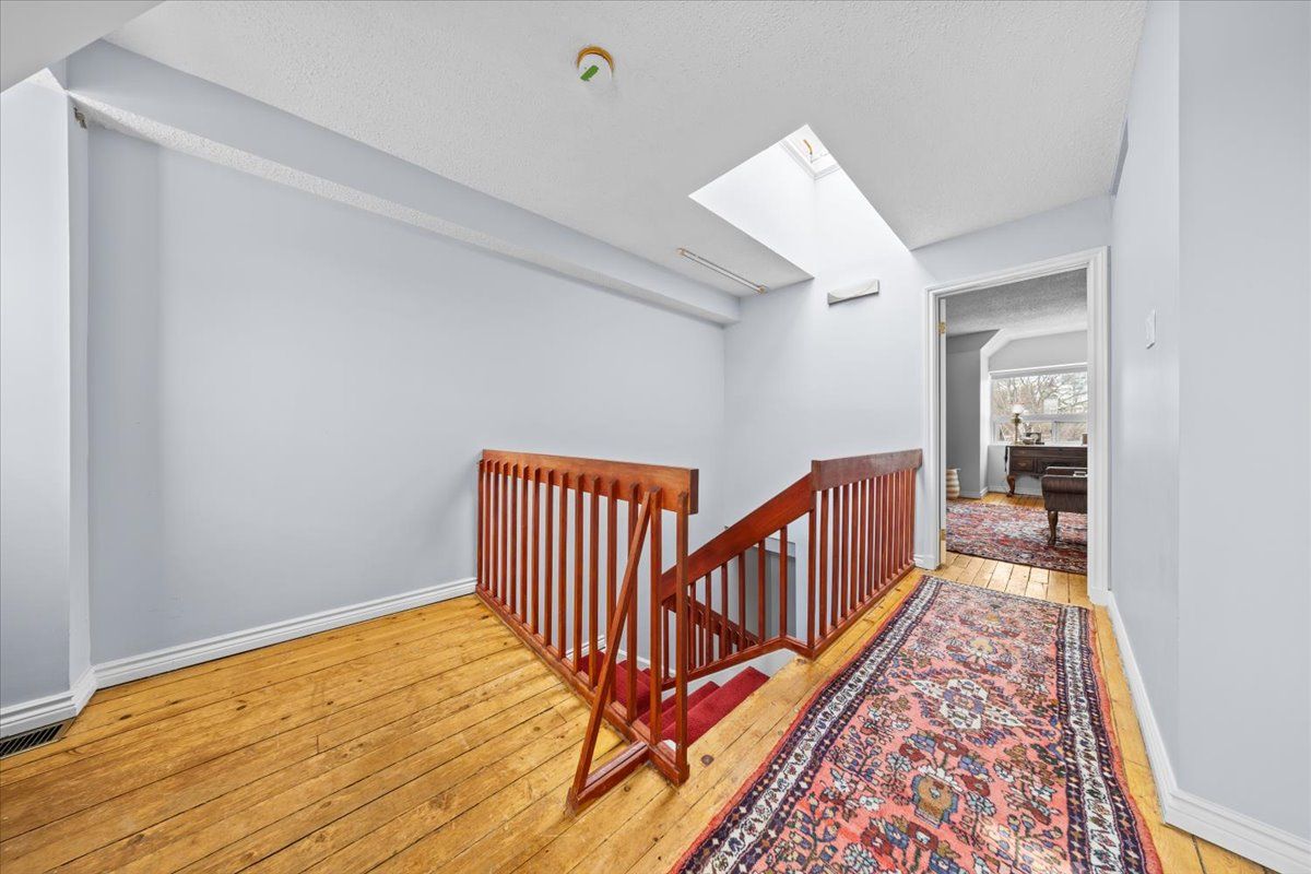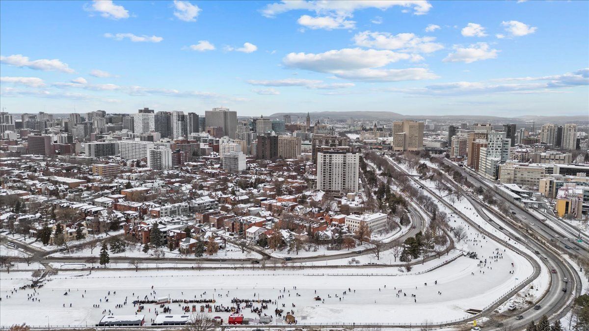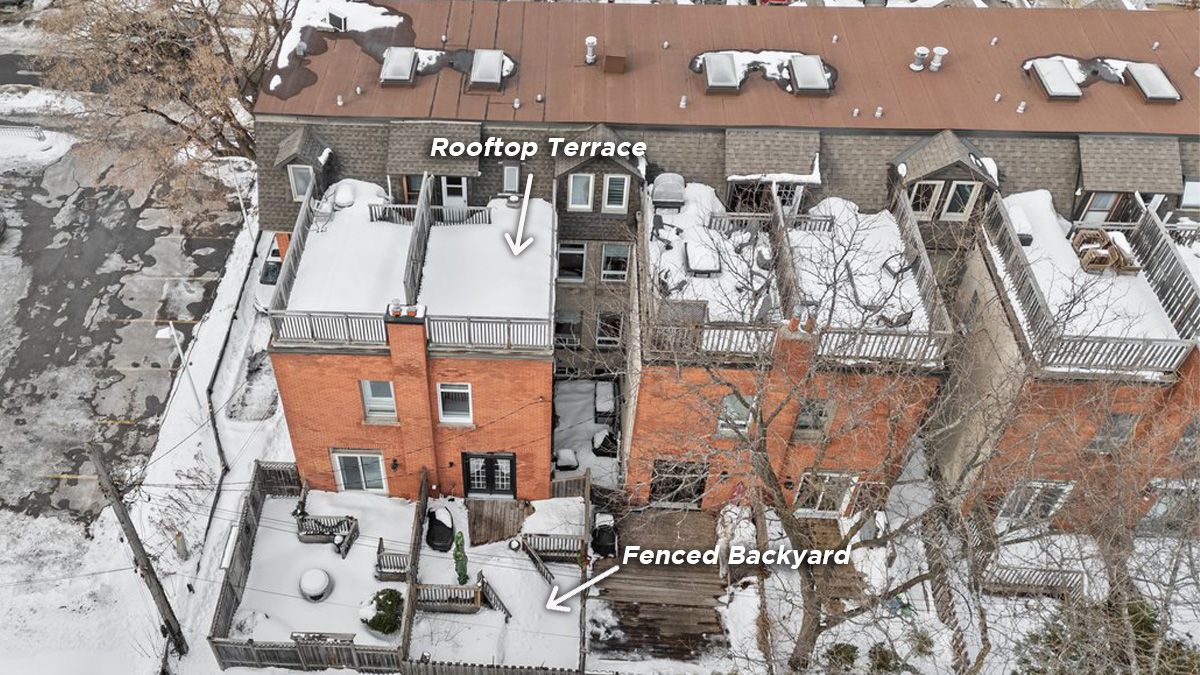 All brick boston brownstone positioned on the eastern tip of ottawa's golden triangle, moments from the rideau canal & surrounding parkland. The elevated walk-up entry & transom-topped three-panel door introduce interiors defined by ceiling height, natural light, & cohesive material continuity. The principal living level presents hardwood flooring, panoramic windows w/integrated bench seating, & a centrally placed fireplace that establishes architectural balance between living & dining areas. Rear-oriented glazing draws light deep into the plan, while the kitchen is organized w/tiled surfaces, detailed cabinetry w/valance lighting, quality appliances including four-door refrigeration & five-burner range, & a south-facing eating area opening through transom garden doors to the private exterior landscape. A discreet laundry room & powder room complete the level. An open staircase illuminated by a central skylight defines the vertical circulation. The second level offers three well-proportioned bedrooms w/double closets, including two oriented toward canal waterway views, supported by a composed four-piece bath. The full third level is dedicated to the primary suite, arranged as a lofted retreat w/dormer articulation, architectural glass detailing within the ensuite, & direct passage to a secluded rooftop terrace functioning as an elevated outdoor room above the urban fabric. Private rear garden w/deck, patio, & gated access extends seasonal living, while a full-height basement & rare tandem-length garage w/interior entry provide functional completeness seldom found in this location. Immediate proximity to canal pathways, cycling routes, cafés, dining, & downtown cultural amenities reinforces the property's integration of architecture, landscape, & walkable city living. 24 hr irrevocable on offers
