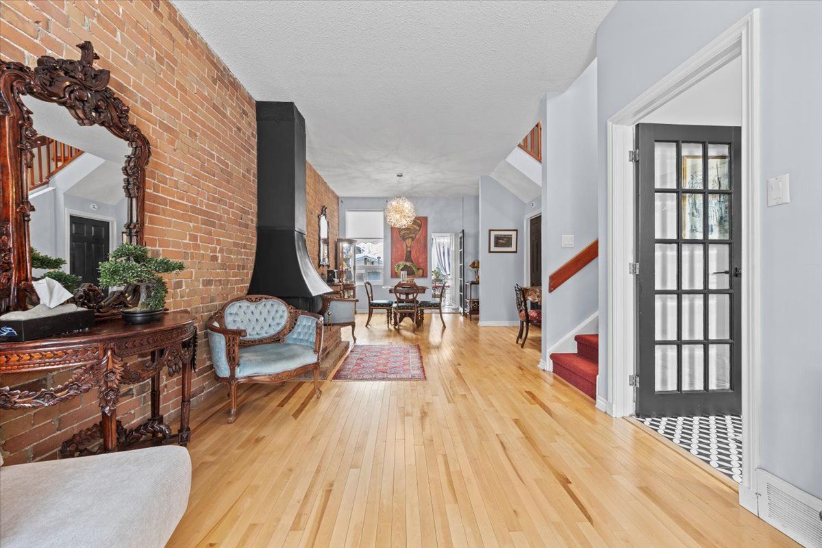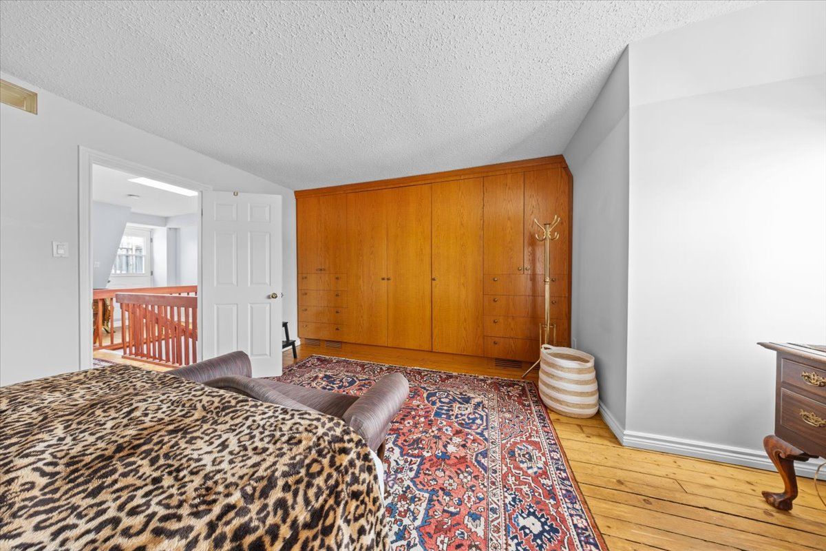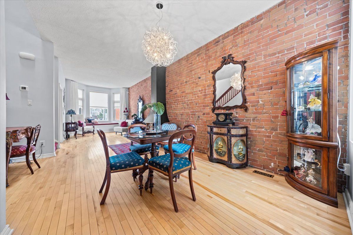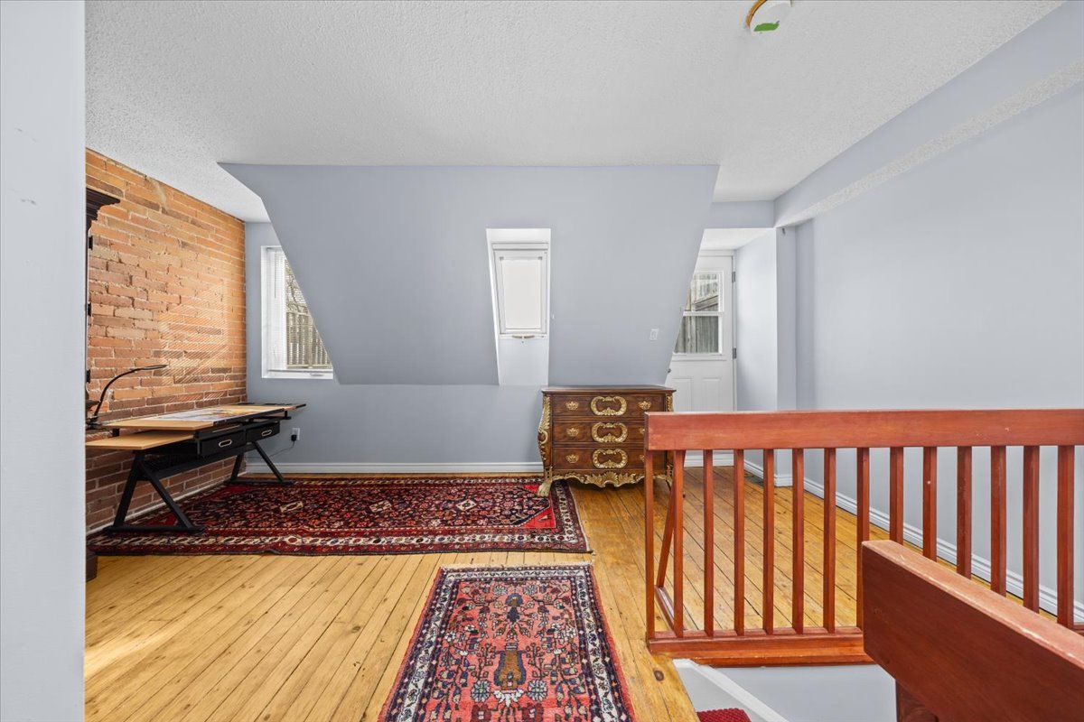 All brick boston brownstone positioned on the eastern tip of ottawa's golden triangle, moments from the rideau canal & surrounding parkland. The elevated walk-up entry & transom-topped three-panel door introduce interiors defined by ceiling height, natural light, & cohesive material continuity. The principal living level presents hardwood flooring, panoramic windows w/integrated bench seating, & a centrally placed fireplace that establishes architectural balance between living & dining areas. Rear-oriented glazing draws light deep into the plan, while the kitchen is organized w/tiled surfaces, detailed cabinetry w/valance lighting, quality appliances including four-door refrigeration & five-burner range, & a south-facing eating area opening through transom garden doors to the private exterior landscape. A discreet laundry room & powder room complete the level. An open staircase illuminated by a central skylight defines the vertical circulation. The second level offers three well-proportioned bedrooms w/double closets, including two oriented toward canal waterway views, supported by a composed four-piece bath. The full third level is dedicated to the primary suite, arranged as a lofted retreat w/dormer articulation, architectural glass detailing within the ensuite, & direct passage to a secluded rooftop terrace functioning as an elevated outdoor room above the urban fabric. Private rear garden w/deck, patio, & gated access extends seasonal living, while a full-height basement & rare tandem-length garage w/interior entry provide functional completeness seldom found in this location. Immediate proximity to canal pathways, cycling routes, cafés, dining, & downtown cultural amenities reinforces the property's integration of architecture, landscape, & walkable city living. 24 hr irrevocable on offers