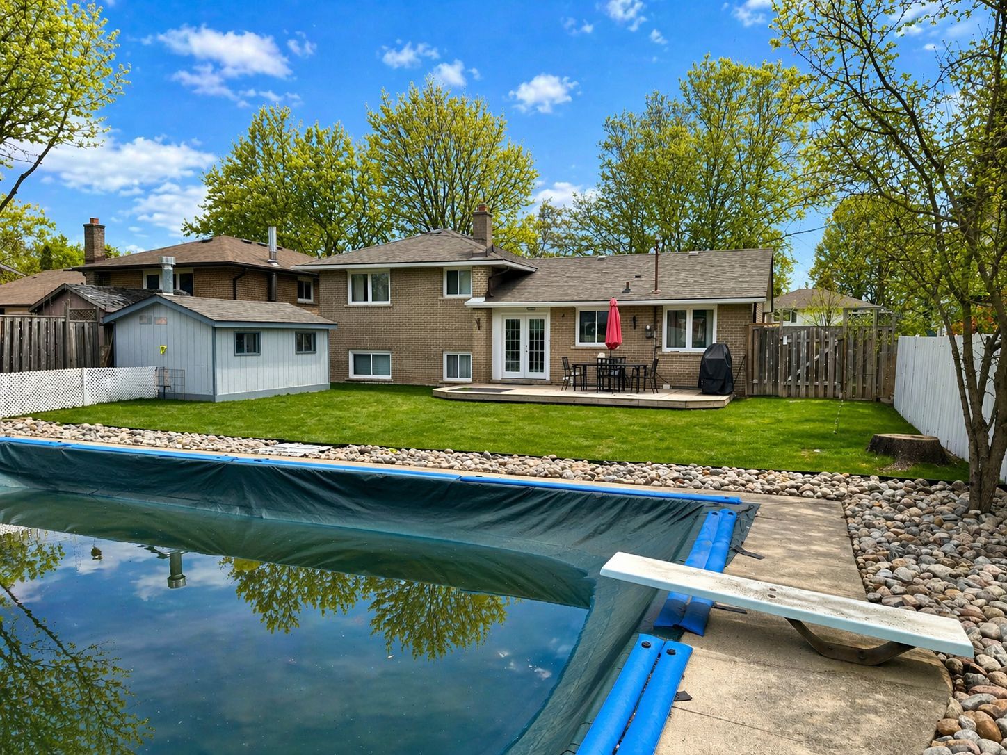 Fully finished 4-level sidesplit on a premium 60 x 130 ft lot in one of orangeville's most desirable, mature neighbourhoods. This is not your typical subdivision setting. Towering trees, pride of ownership and a quiet, well-kept streetscape create a private, established feel rarely found in newer areas. Ideally located close to schools while maintaining a peaceful residential atmosphere. Ample driveway space provides parking for up to 5 vehicles, ideal for growing families and guests a like. Inside, the home offers a versatile layout designed to suit a variety of family dynamics. The main level features a stunning open concept living, dining and kitchen space highlighted by a vaulted ceiling and an abundance of natural light, creating a bright and spacious central gathering area. Upper and lower bedroom options provide flexibility for growing families, guests or multi-generational living. The lower level includes above-grade windows, a second family room with a gas fireplace, a private bedroom and bathroom, offering excellent in-law or teen retreat potential. The finished basement adds even more adaptable space perfect for a home gym, office, playroom or media room. Step outside into a south facing backyard oasis on this fully mature, oversized lot. Enjoy the in-ground pool complete with a new heater, extending your swimming season for months at a time. The expansive yard still offers plenty of manicured lawn space for recreation, entertaining and everyday enjoyment. A rare opportunity to own a spacious home on a large lot in a sought-after orangeville location.