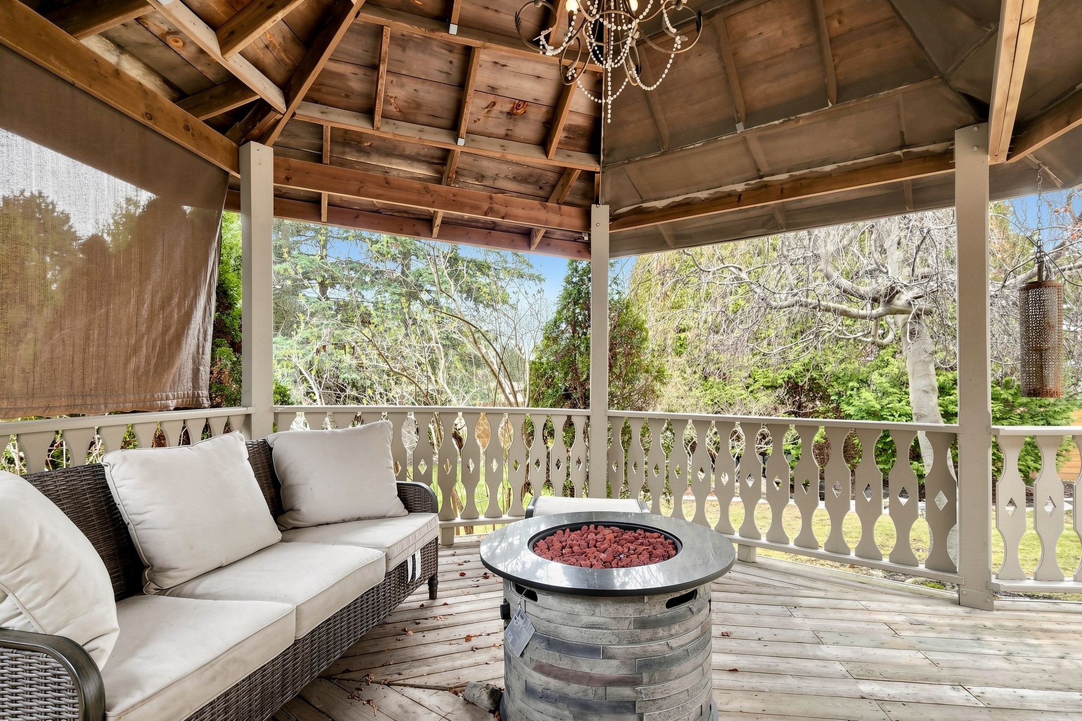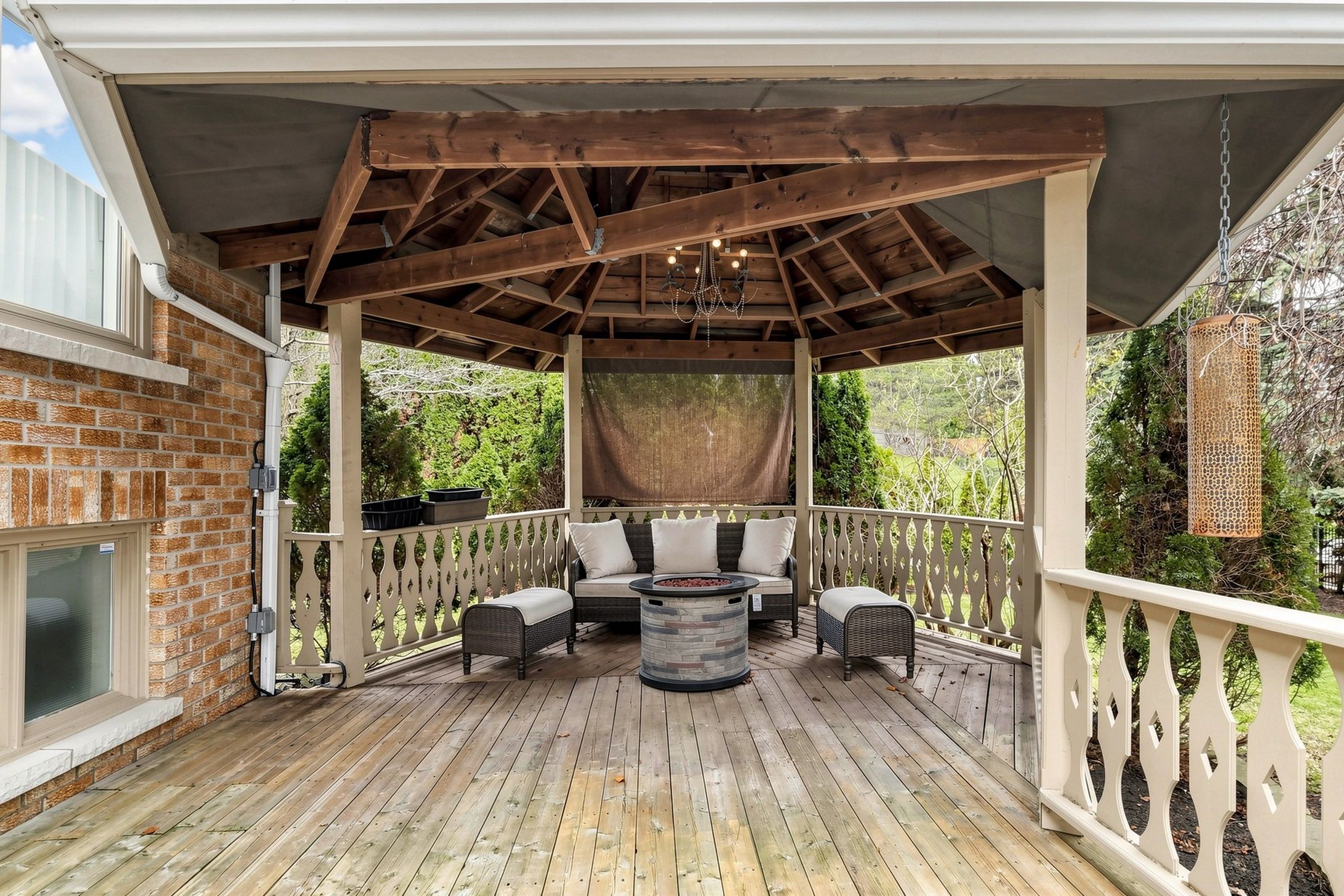 • Impressive backyard retreat with a spacious two-tier deck and gazebo.