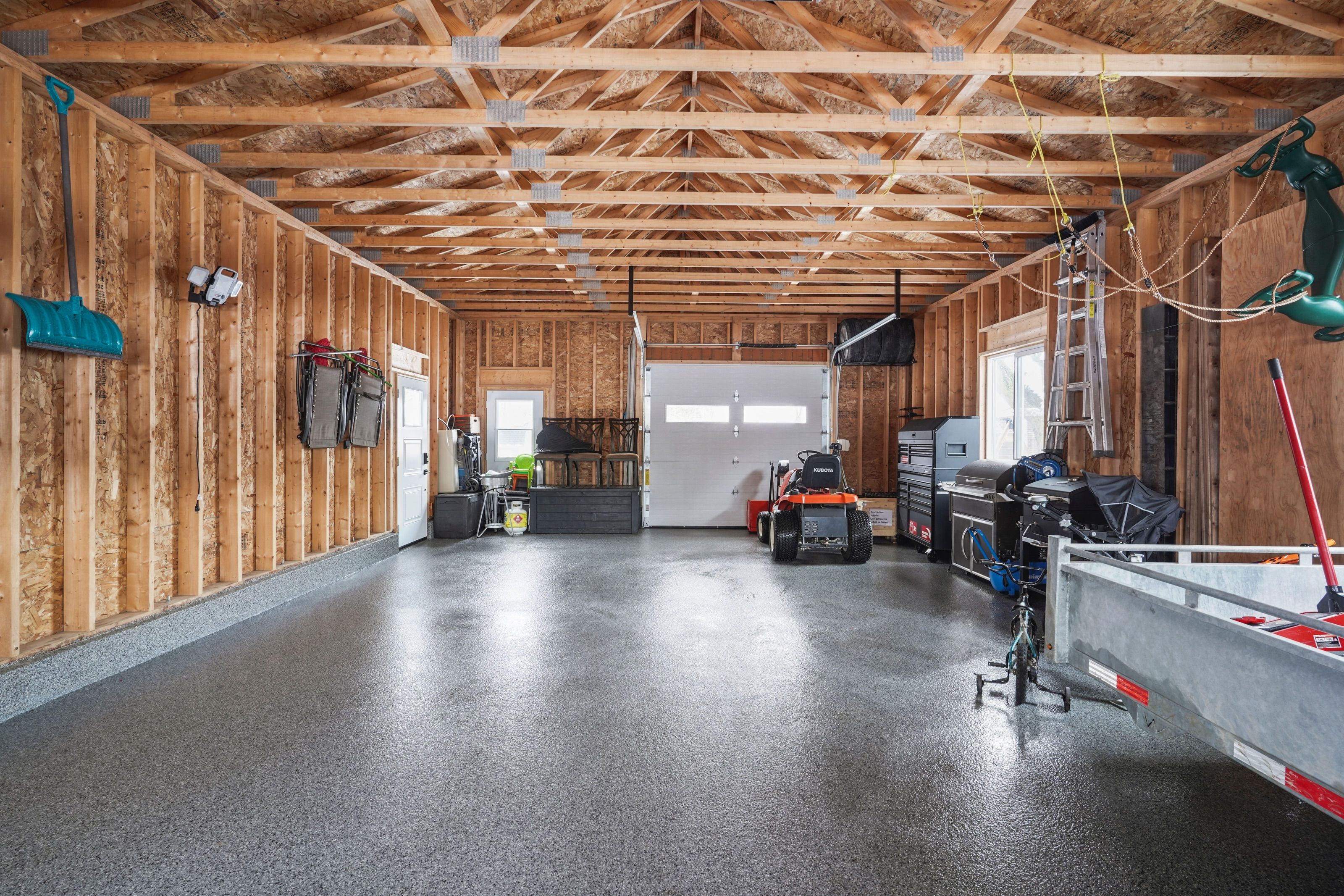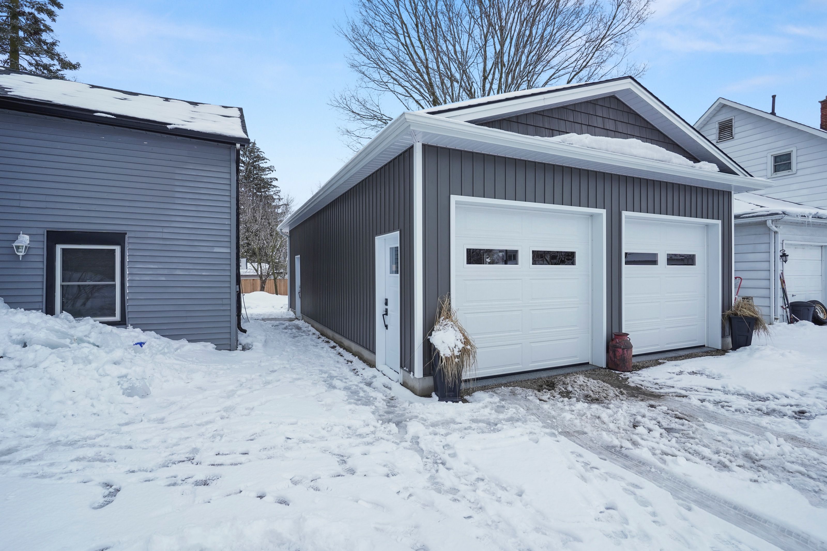 • Large detached 2-car garage with convenient drive-through access.