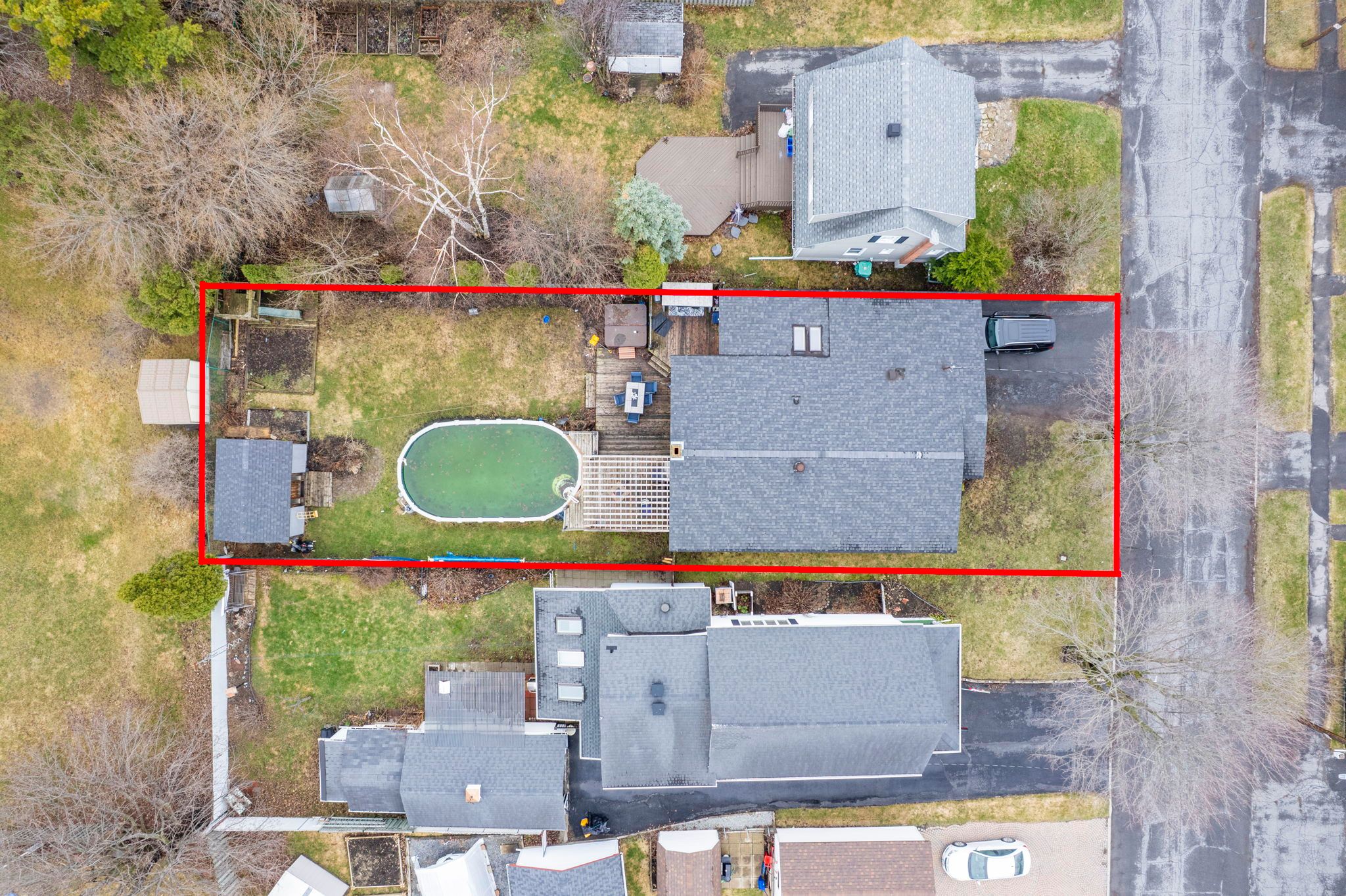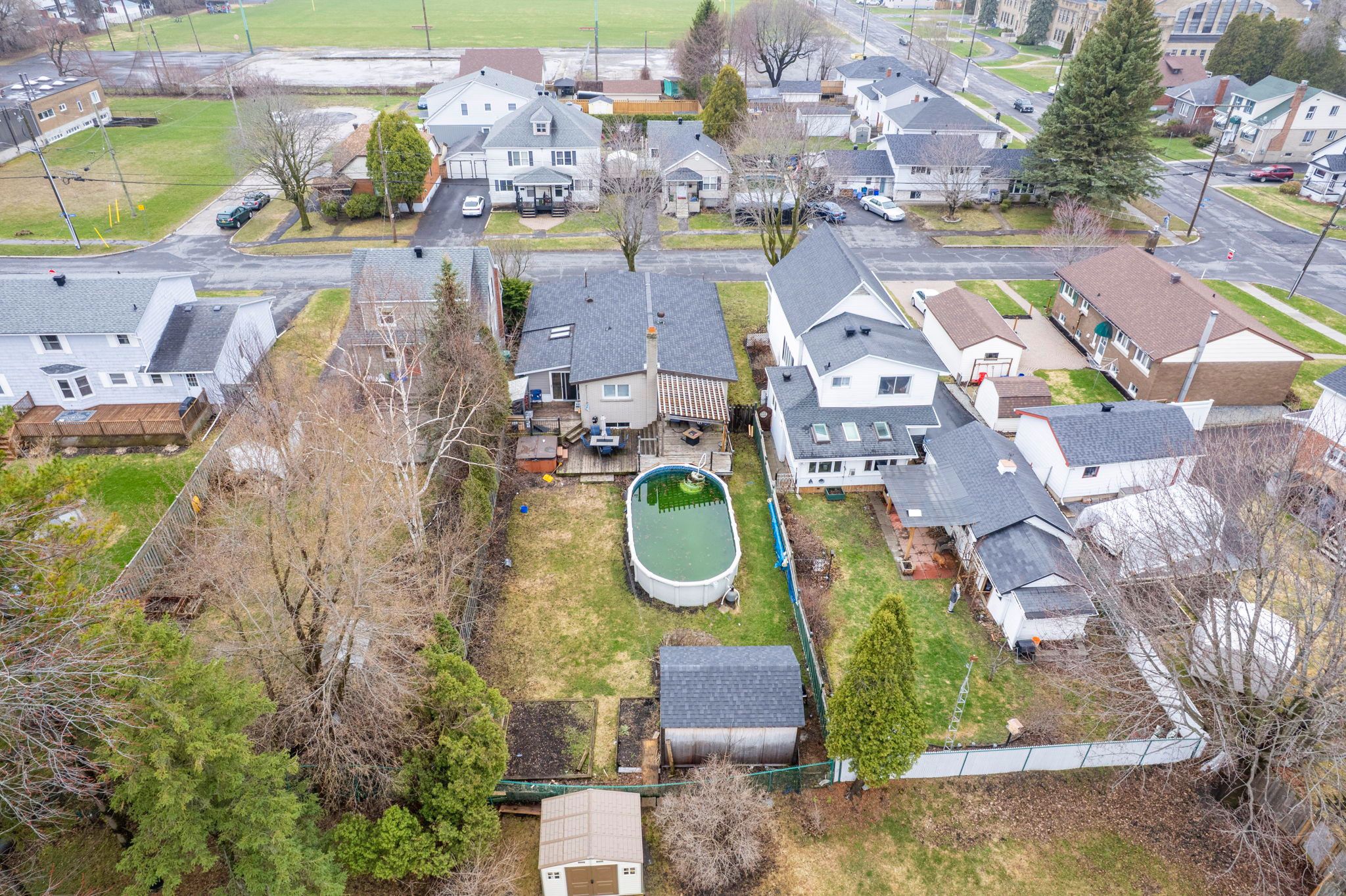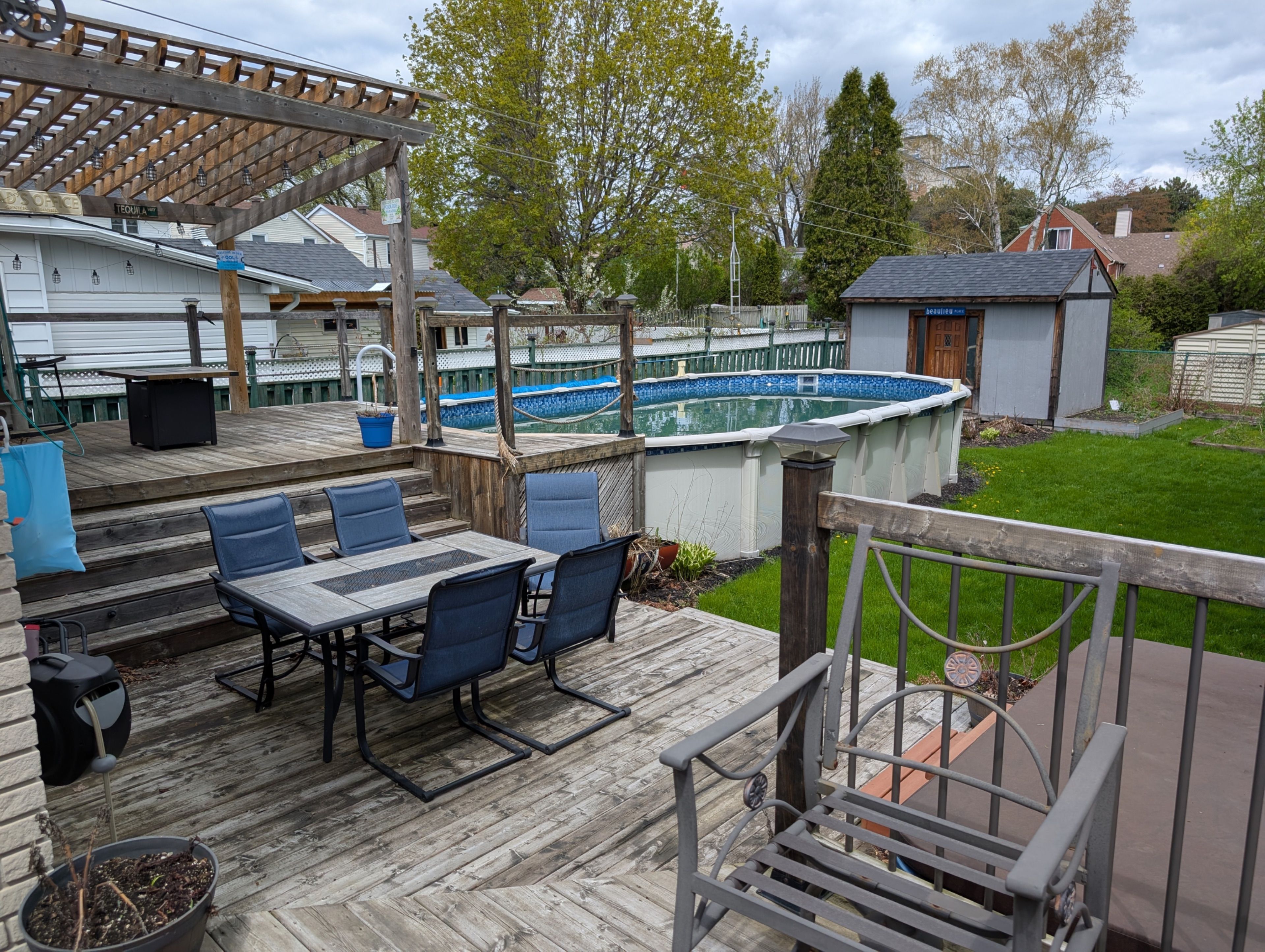 • Private fenced backyard with deck, hot tub, and swimming pool.