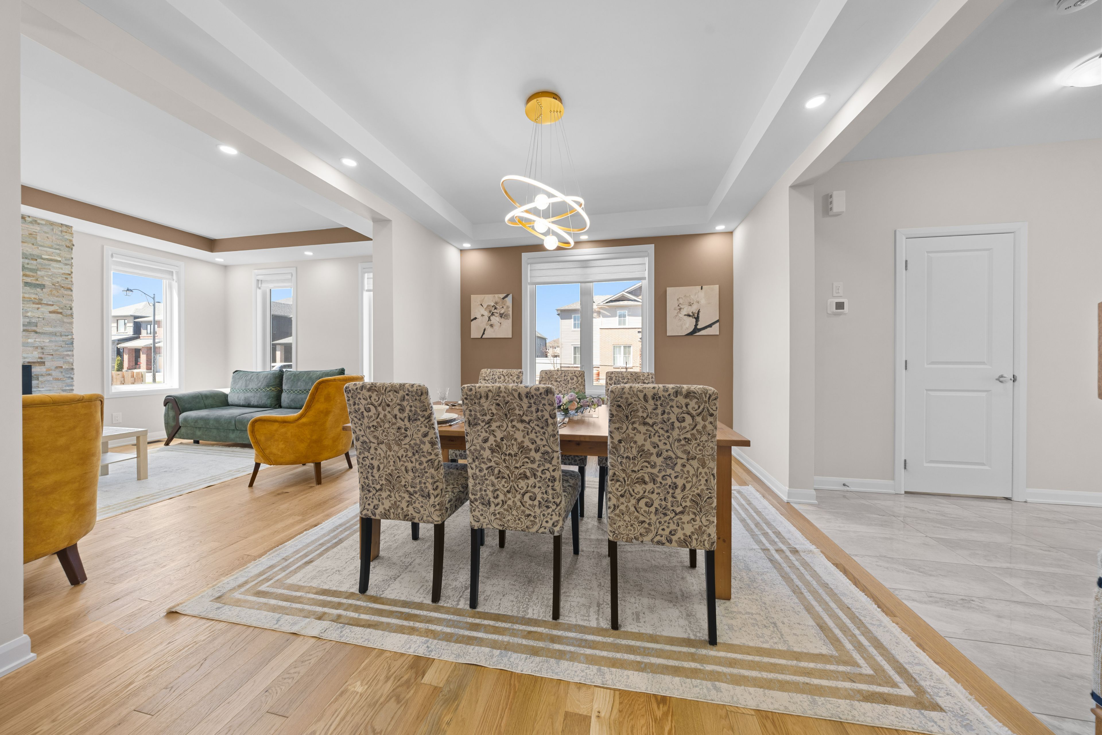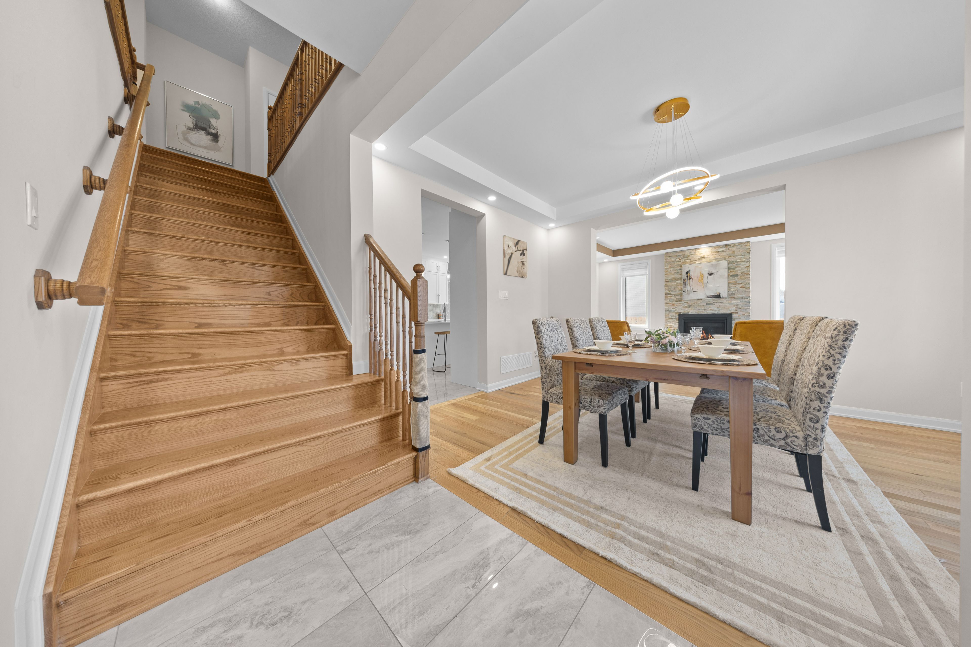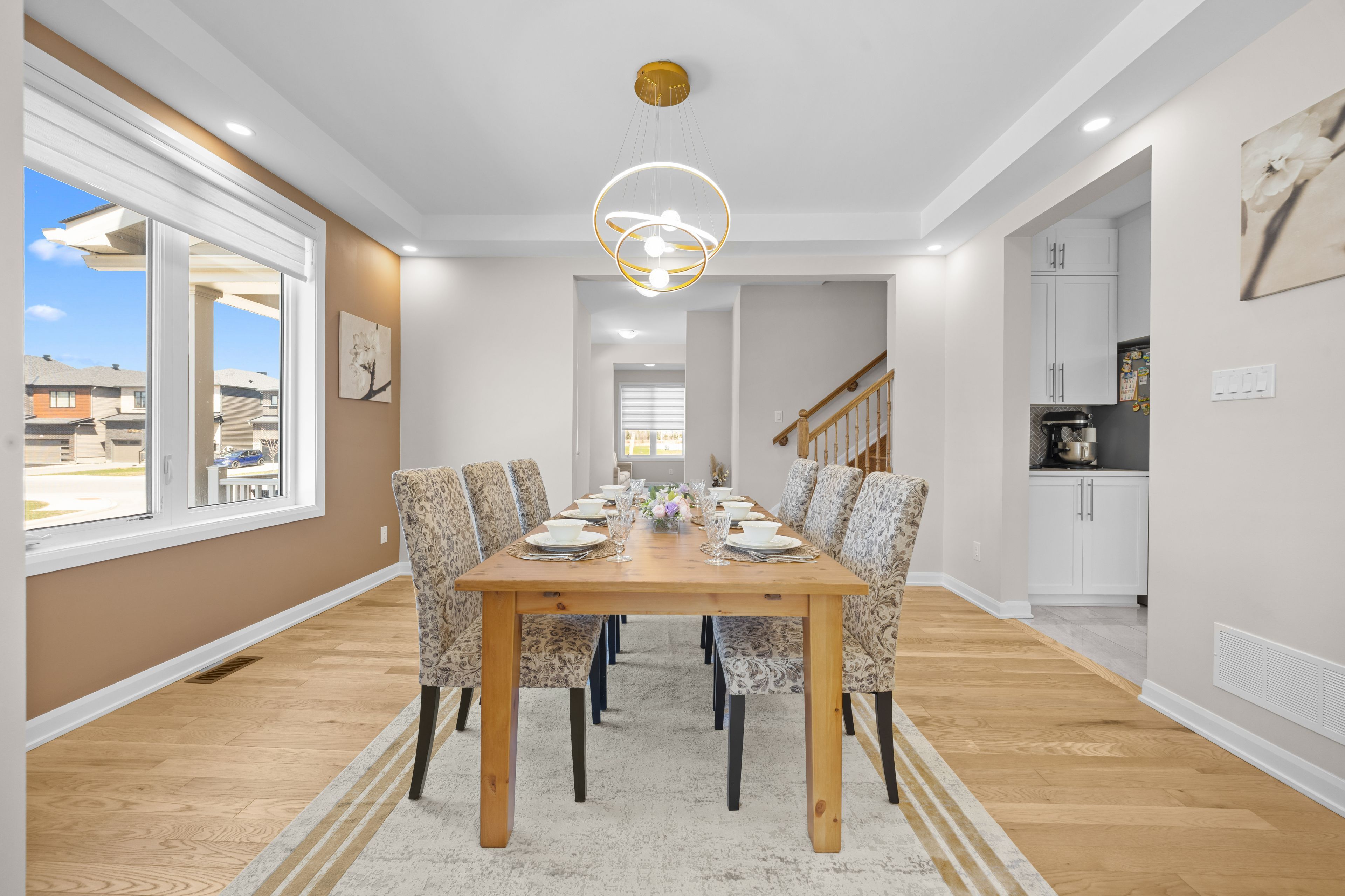 • Open-concept main floor with hardwood flooring and 9-foot ceilings.