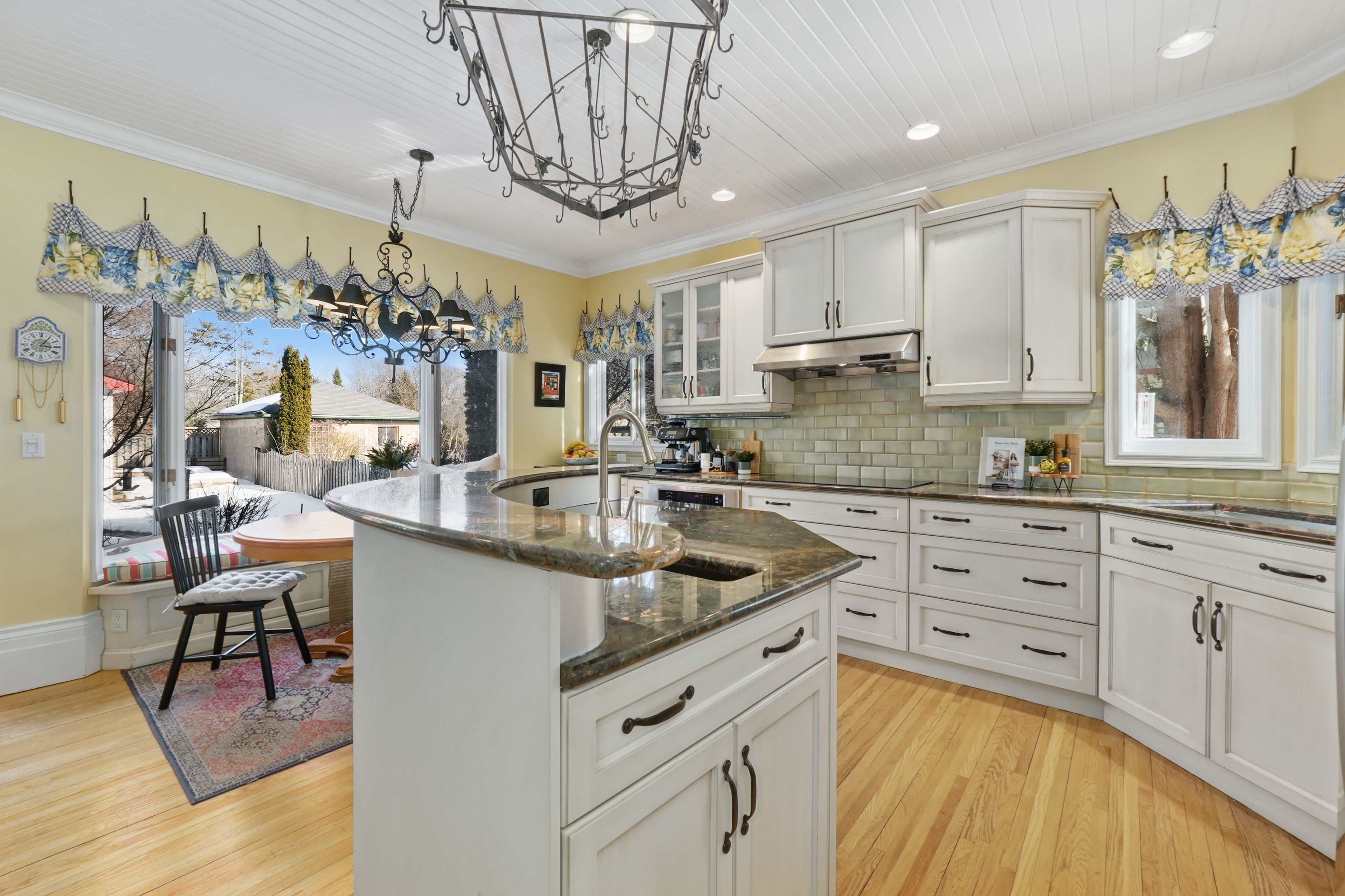 The best of both worlds, modern convenience and historic character, come together in this impeccably maintained home just steps from cobourg beach. Rich with original charm, the home showcases beautiful period details including extra-wide trim and baseboards, crown and cove moulding, and thoughtfully preserved architectural features throughout. French doors open into a sun-filled living room framed by a wall of windows. A gas fireplace with an intricate mantle creates a striking focal point, complemented by built-in shelving and classic wall sconces. The spacious dining room is ideal for gatherings, featuring a large window, elegant wainscotting, ceiling coin, and glass doors that create an intimate setting for formal dining. The open-concept kitchen and family room form the heart of the home. The modern kitchen features stainless steel appliances, recessed lighting, two sinks, a large island, and generous cabinet and counter space. A bright breakfast area with a bay window and built-in window seating offers a cozy place to start the day. The adjoining family room features an arched entry, fireplace, and walkout to a spectacular sunroom with a wood-clad cathedral ceiling, exposed beams, skylights, and direct access to the back deck. A main floor powder room with an intricate stained glass window and a convenient laundry room complete this level. The second floor offers a spacious primary bedroom with a charming reading or dressing nook, dual closets, and a private ensuite featuring a glass shower enclosure and large frosted window. Three additional bedrooms and a full bathroom with skylight and double vanity provide comfortable space for family and guests. The lower level includes a recreation room and office area, adding flexibility for work or play. Outside, the fully fenced backyard features landscaped garden beds and a stone path leading to the garage. Located moments from downtown cobourg amenities, the waterfront, schools, and easy access to highway 401.