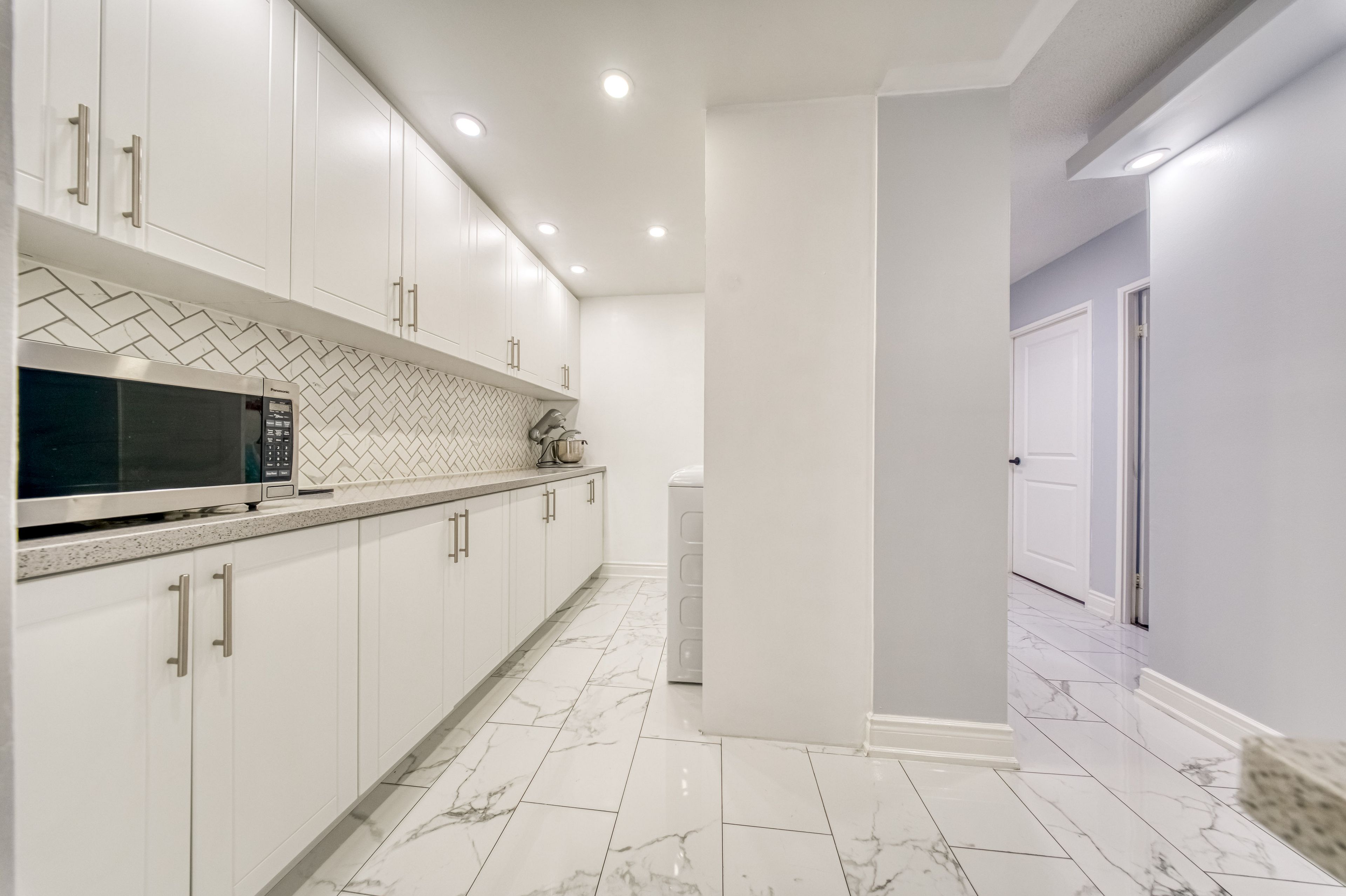 Bright & spacious 3-bedroom suite in a well-maintained building. Functional open-concept layout with modern kitchen featuring quartz counters & backsplash. Freshly painted with vinyl flooring throughout and pot lights. Primary bedroom with walk-in closet & ensuite. Ensuite laundry & 1 underground parking. Open balcony with city views. Close to ttc, airport, highways 401/409/427, shopping & schools. Ideal for first-time buyers, families or investors.