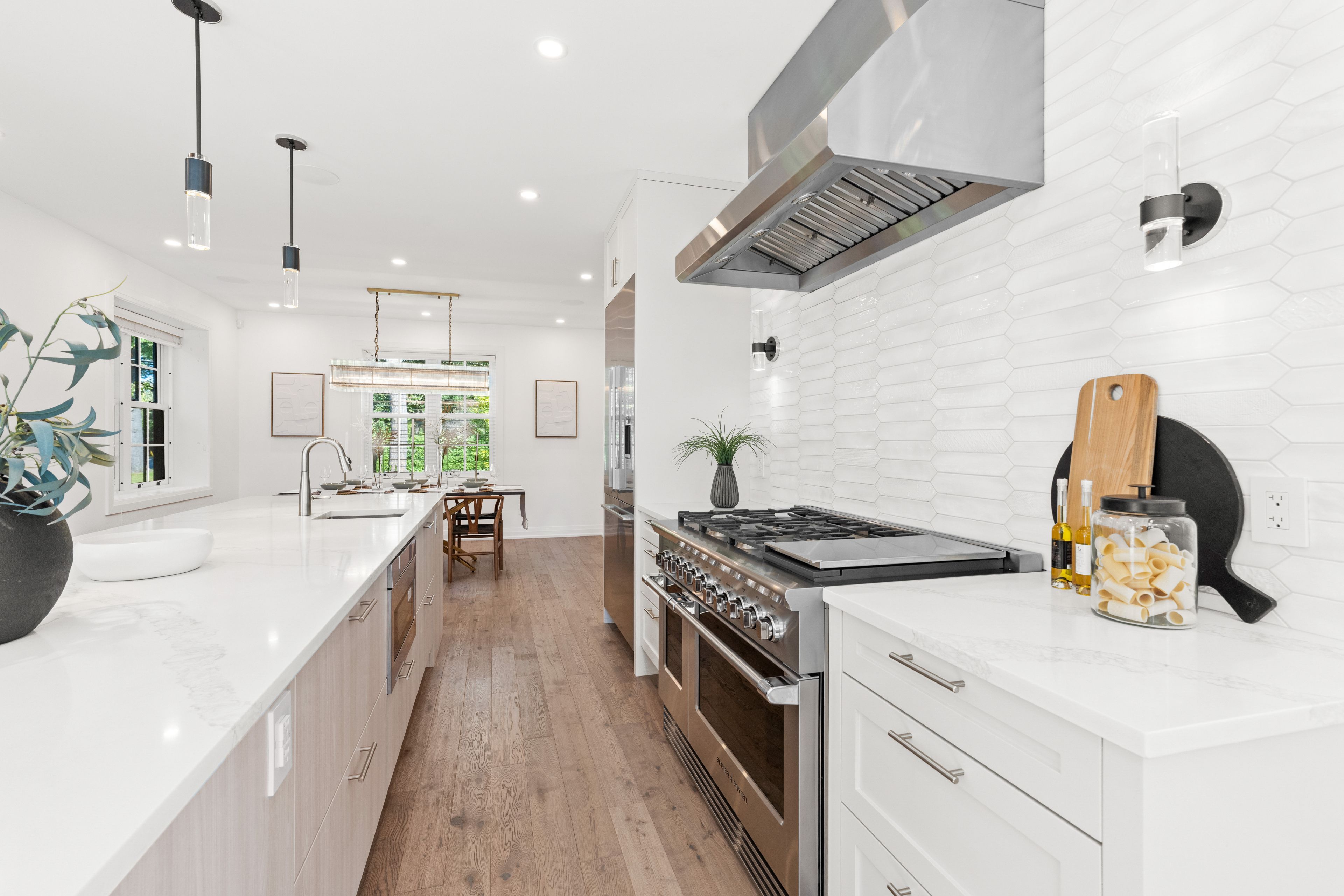• Chef's kitchen features commercial-grade appliances and spacious island.