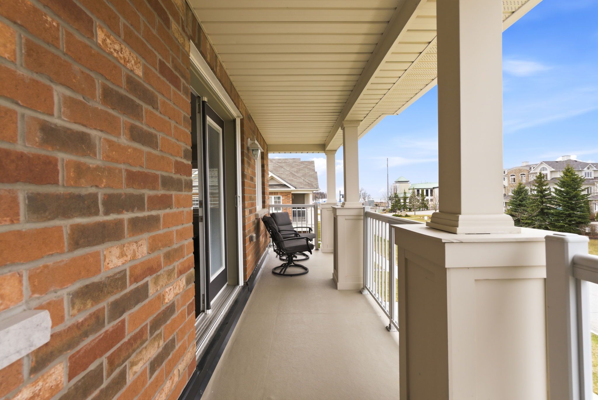 • Private patio and balcony with serene water and marina views.