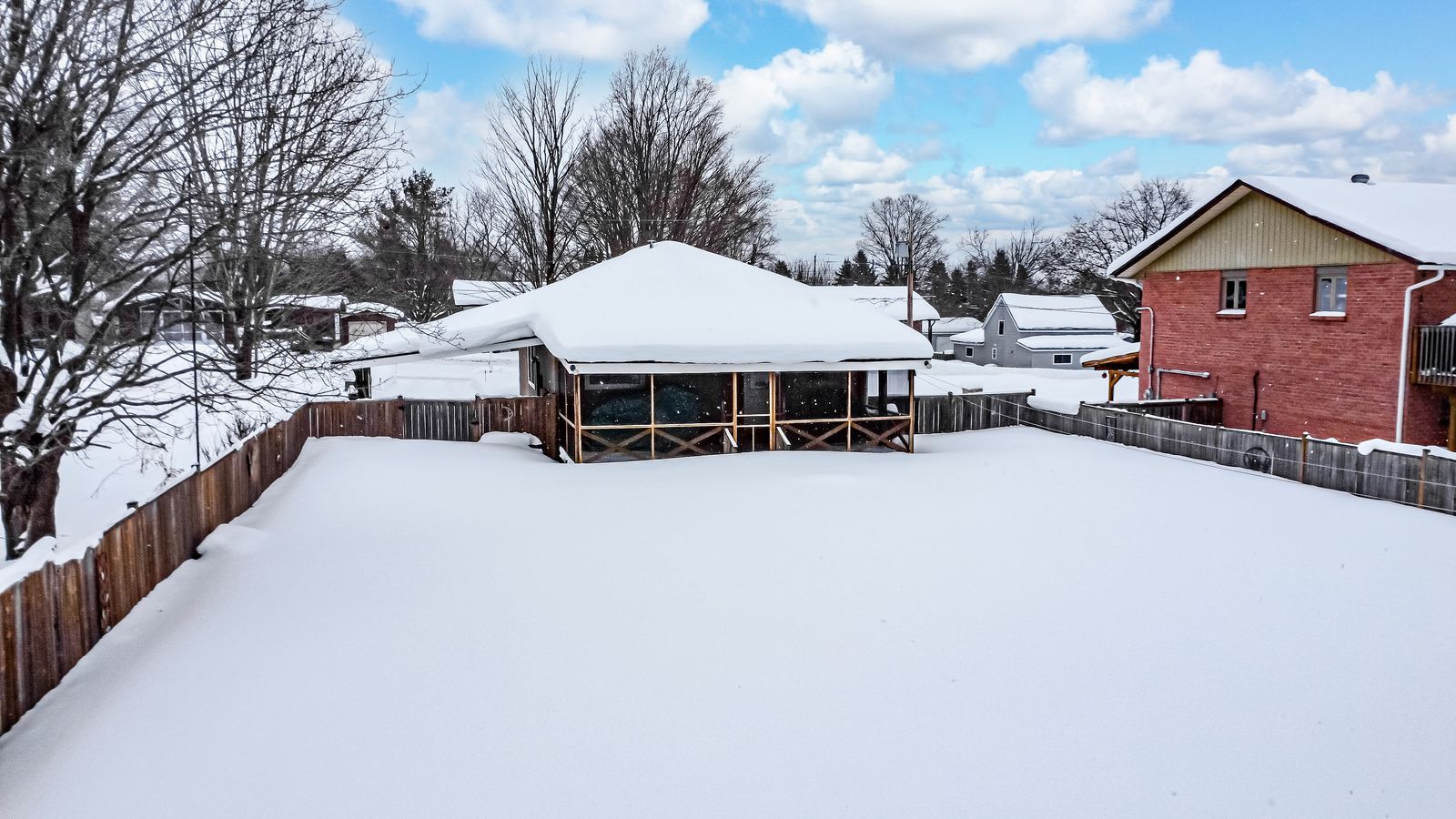 Charming bungalow on a 60 x 165 ft lot with a large screened-in porch & walkable beach access! Morning coffee on the screened-in porch, an evening walk to the dock with a fishing rod in hand, and everyday essentials just steps from your front door, this is small-town living done right. Set on a deep landscaped 60 x 165 ft lot, the fully fenced backyard gives you space to garden, let pets roam, or finally host those summer get-togethers you have been talking about, complete with a storage shed to keep everything organized. The bold red front door adds personality out front, while parking for five makes life easy when friends and family stop by, with one spot in the carport and four in the driveway. One-level living keeps everything convenient and connected, with a functional main-level layout centred around a bright combined living and dining room filled with natural light from large windows and finished with warm-toned wood flooring. The updated white kitchen features a tile backsplash, pantry storage, and abundant cabinetry, flowing into a separate breakfast area with a walk-out that is perfect for casual meals and morning routines. Two comfortable main-level bedrooms are served by a 4-piece bathroom, while the unfinished lower level with a separate side entrance offers excellent storage now and real potential to create the extra space you have been wanting, whether that is a rec room, a home gym, a hobby studio, or extra room for guests over time. Walkable access to waubaushene beach, waubaushene dock, the library, churches, food mart, tim hortons, and the lcbo keeps daily life easy and puts the best of the community within reach.
