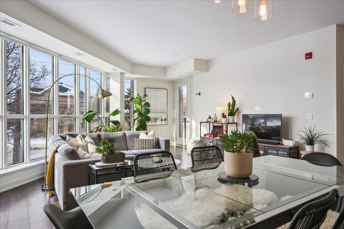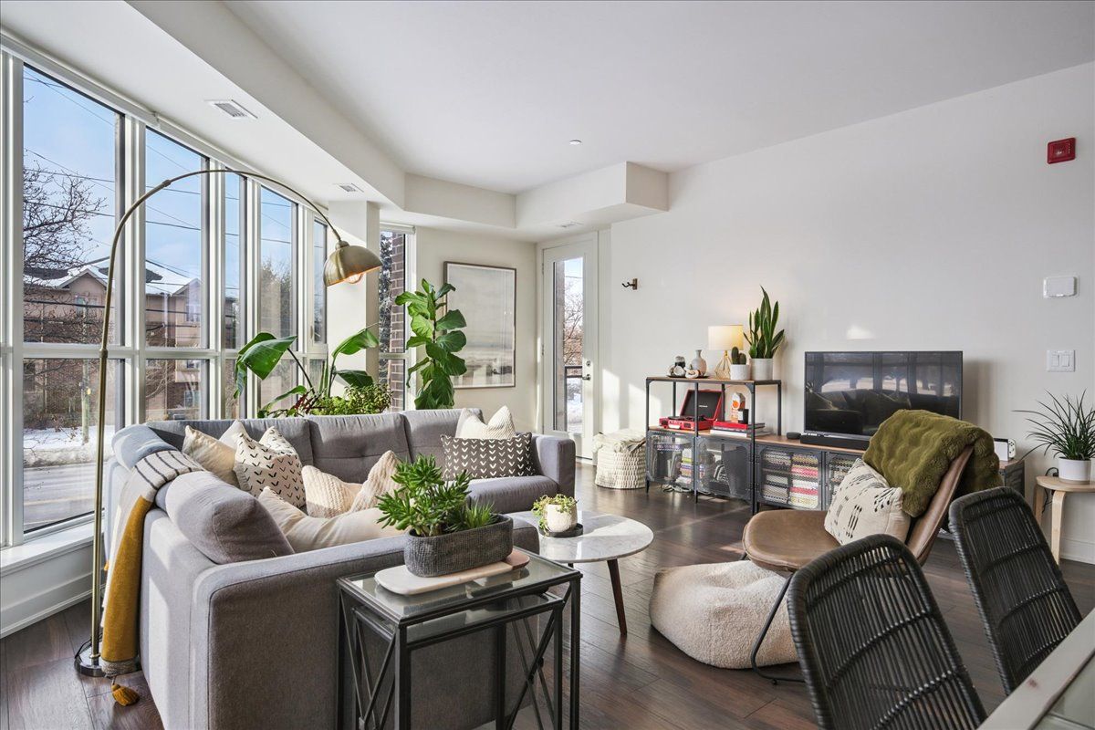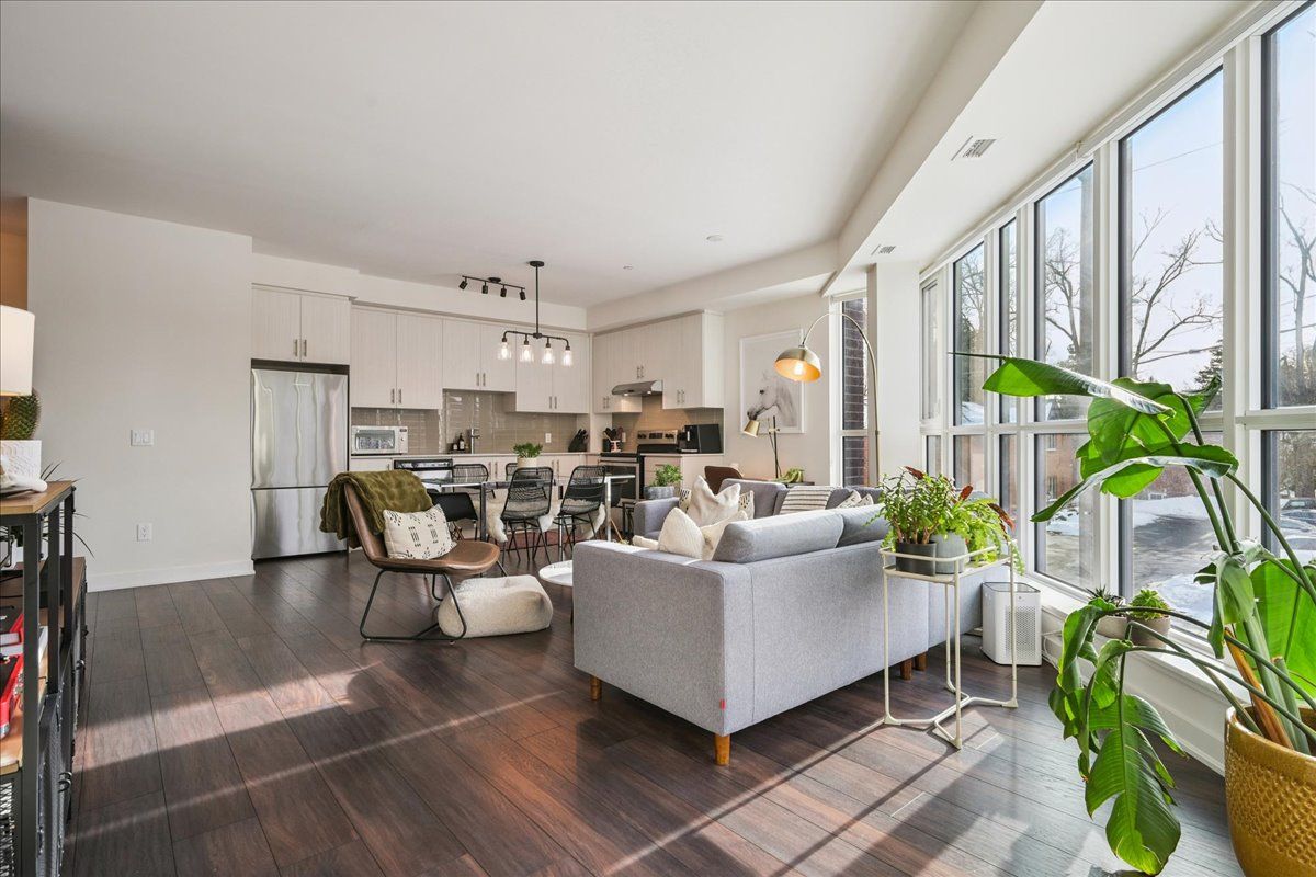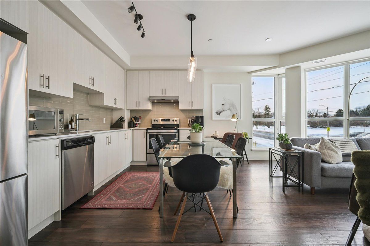 Floor-to-ceiling, wall-to-wall windows fill this stunning corner unit with natural light, creating a bright and airy space that truly sets it apart in this boutique low-rise building. The open layout is enhanced by 9-ft ceilings, wide plank hand-scraped flooring, and a welcoming foyer with plenty of storage. The sleek kitchen boasts quartz countertops, a glass backsplash, and modern appliances, while the spa-like bathroom features imported porcelain tile and ensuite privilege. Enjoy high-end roller blinds throughout, including blackout in the bedroom, plus walkouts to the spacious balcony from both the living room and bedroom. Built by rosehaven homes in 2020, this community offers exceptional amenities: a fitness and yoga studio, business centre, party room, rooftop terrace with bbqs, gardens, and fire pit, plus bike storage, visitor parking, and a dedicated dog area. The location is unbeatable just a short walk to aldershot go, shops, cafes, lasalle park, and the rbg, with quick highway access to the 403, qew, and 407.