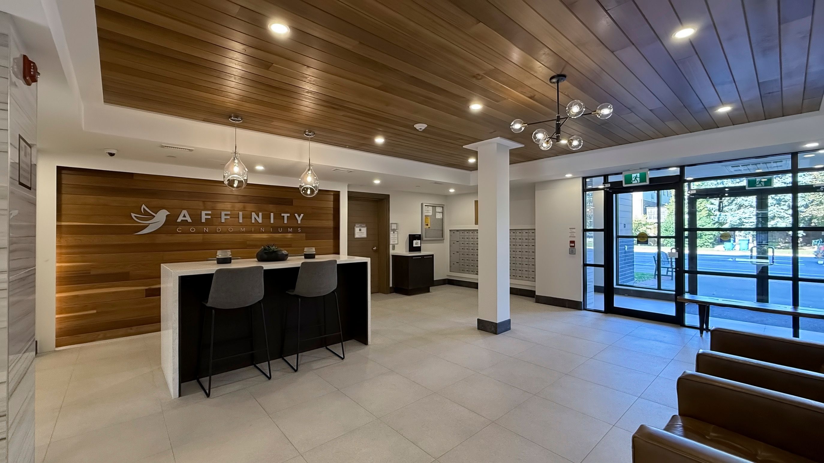 Rosehaven affinity condo. Aldershot neighborhood; modern one bedroom + den unit w/1 parking spots & locker. State of the art finishes. High smooth ceilings, high-end laminate, contemporary kitchen w/quartz counter & backsplash, floating vanity & glass tub frameless enclosure. Balcony w/street views. Entertain in grand party room w/ games & billiards table or visit rooftop patio w/fire-pit & bbq, gym & separate yoga studio.
