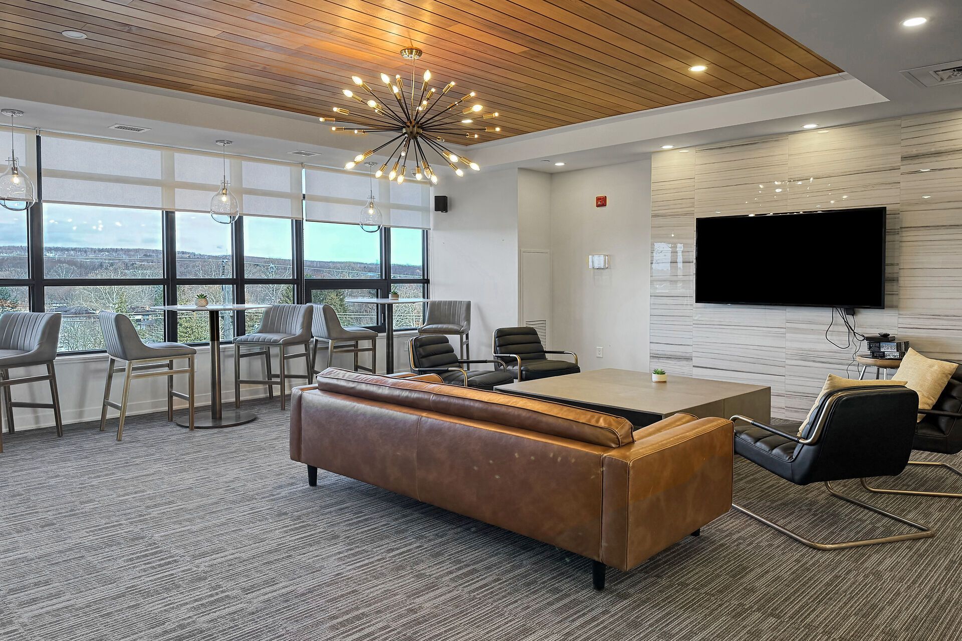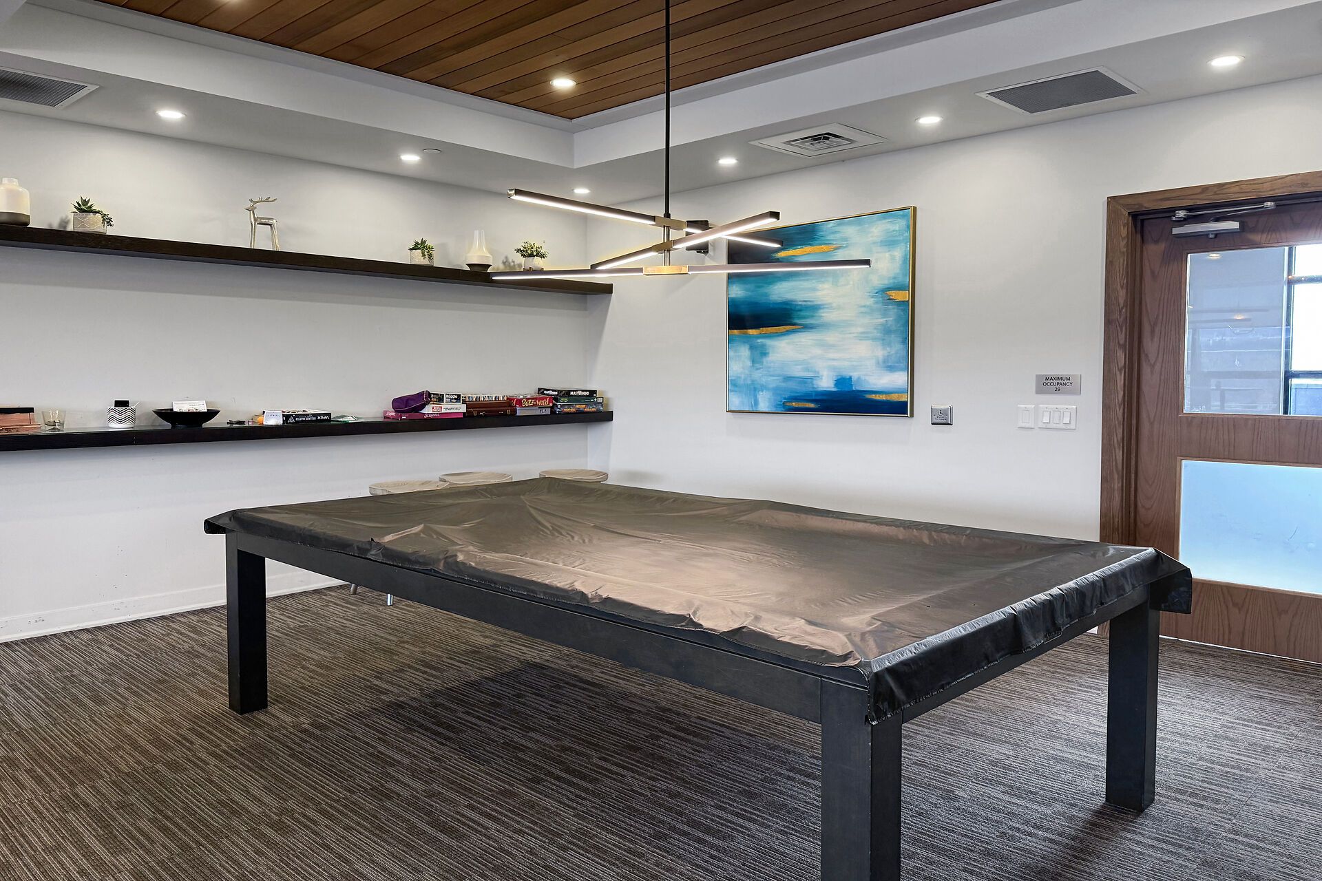 • Full-service amenities include exercise rooms and a billiards lounge.