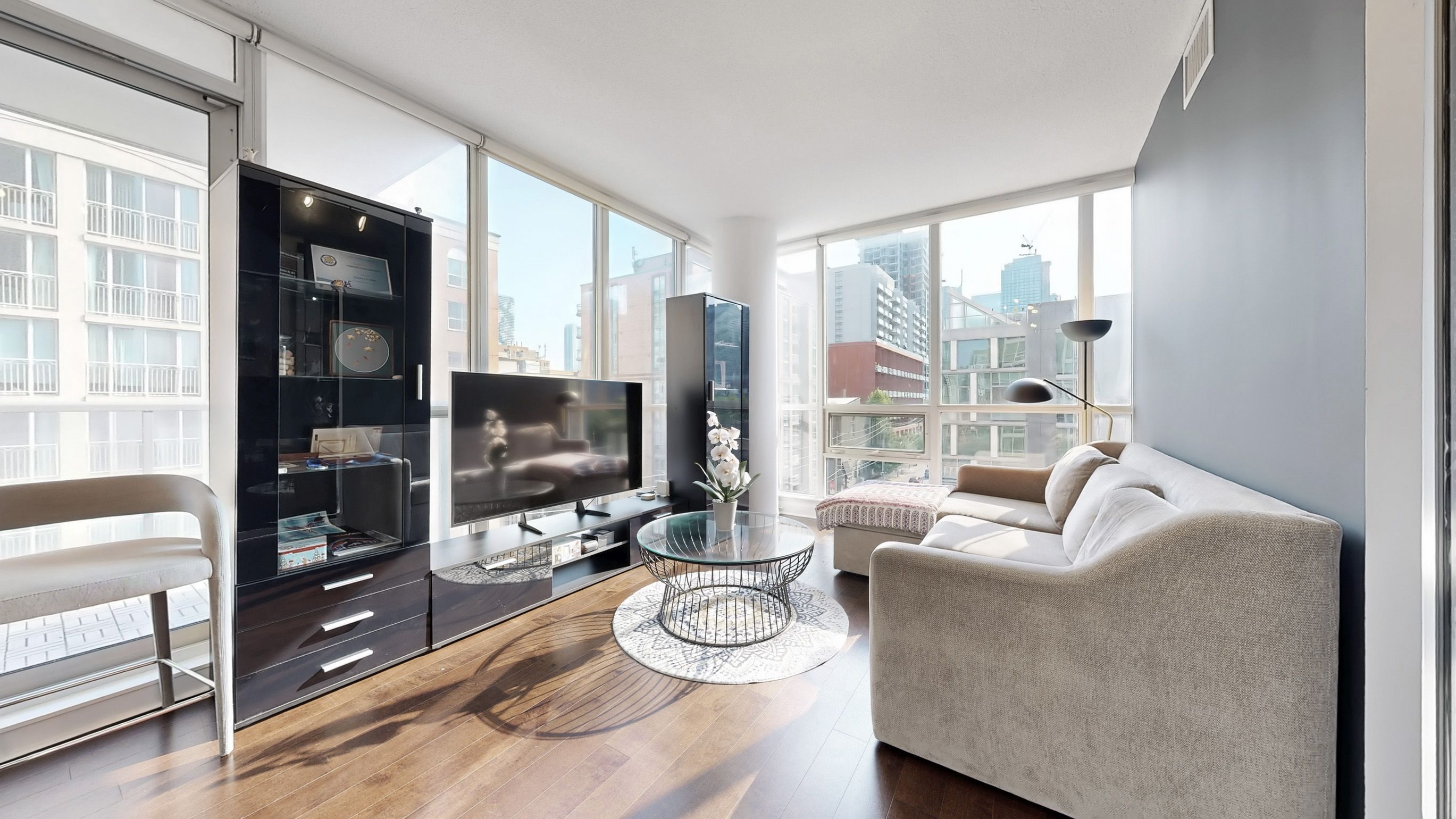 • Bright 2-bedroom suite with an open layout and floor-to-ceiling windows.