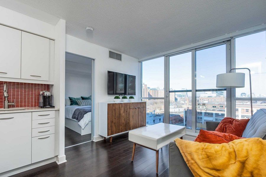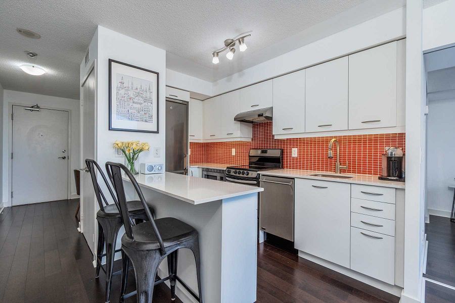 Enjoy vibrant downtown living in this beautifully maintained 1-bedroom condo featuring a smart, functional layout filled with natural light. The spacious primary bedroom offers generous closet space and a private 4-piece ensuite for added comfort and convenience. Laminate flooring runs throughout, and the modern kitchen includes a center island-perfect for enjoying your morning coffee or evening meal while overlooking the bright living area. Residents of the modern enjoy exceptional amenities, including an outdoor pool and a stunning rooftop terrace. Located just steps to st. Lawrence market, schools, transit, dining, and shopping, everything you need is right at your doorstep. A fantastic rental opportunity in one of downtown's most vibrant and convenient neighbourhoods.
