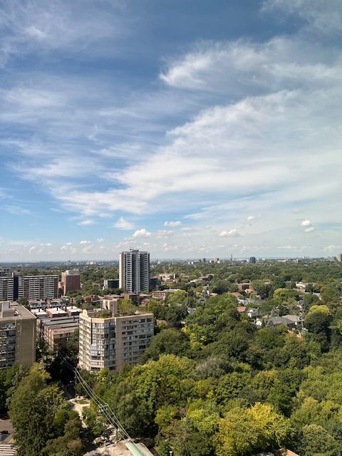 *free second month's rent! "the heathview" is morguard's award winning community where daily life unfolds w/remarkable style in one of toronto's most esteemed neighbourhoods forest hill village! *spectacular 1+1br 1bth west facing suite w/high ceilings! *abundance of floor to ceiling windows+light w/panoramic lake+cityscape views! *unique+beautiful spaces+amenities for indoor+outdoor entertaining+recreation! *approx 620'! **extras** stainless steel fridge+stove+b/i dw+micro,stacked washer+dryer,elf,roller shades,laminate,quartz,bike storage,optional parking $195/mo,optional locker $65/mo,24hrs concierge++