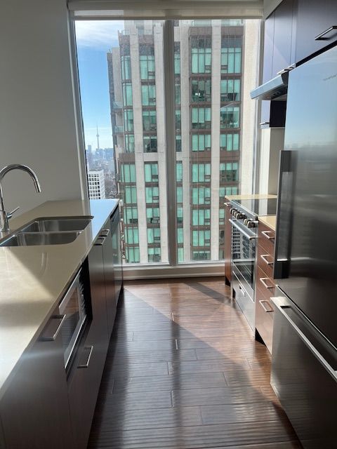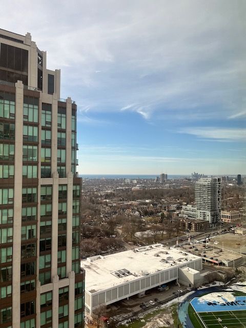 "the heathview" is morguard's award winning community where daily life unfolds w/remarkable style in one of toronto's most esteemed neighbourhoods forest hill village! *spectacular 2br 2bth s/e corner suite w/balcony+high ceilings! *abundance of floor to ceiling windows+light w/panoramic lake+cn tower+cityscape views! *unique+beautiful spaces+amenities for indoor+outdoor entertaining+recreation! *approx 890'! **extras** stainless steel fridge+stove+b/i dw+micro,stacked washer+dryer,elf,roller shades,laminate,quartz,bike storage,optional parking $195/mo,optional locker $65/mo,24hrs concierge++
