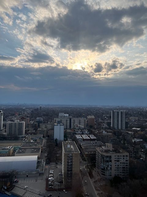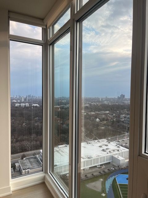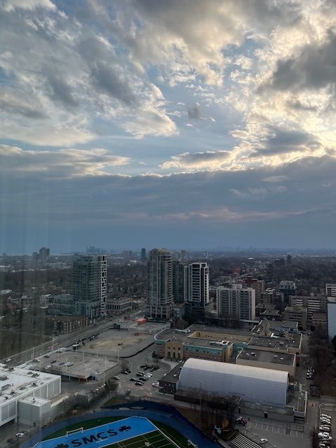 "the heathview" is morguard's award winning community where daily life unfolds w/remarkable style in one of toronto's most esteemed neighbourhoods forest hill village! *spectacular 1+1br 1bth west facing suite w/high ceilings! *abundance of floor to ceiling windows+light w/panoramic lake+cityscape views! *unique+beautiful spaces+amenities for indoor+outdoor entertaining+recreation! *approx 620'! **extras** stainless steel fridge+stove+b/i dw+micro,stacked washer+dryer,elf,roller shades,laminate,quartz,bike storage,optional parking $195/mo,optional locker $65/mo,24hrs concierge++