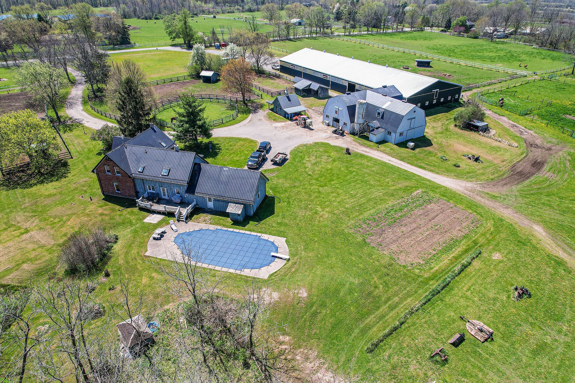 Equestrian 84 acre property located atop ridgeway ridge just minutes to all amenities, major hwys and the us border. Enter the winding 900 laneway with paddocks on either side which magically opens to the heart of this one of a kind property. Boasting a custom built open concept post and beam 2800 sq ft executive home resembling a gabled country farmhouse (circa 1840). Many features from 5skylights, pine plank floors, granite kitchen countertops, wood stove, 5 bedrooms,2 baths, steel roof, mud room, full basement with walk-up to attached 30' x 20'garage, etc. Private backyard deck and 46 x 22 salt water inground pool with picturesque views of approx. 20 acres of wood lands. 18 various sized electric fenced paddocks with numerous walk in sheds, approx. 30 acres of pasture, approx. 30 acres of hay fields and a pond. The property has been pesticide free for over 20years, easy to be certified organic. 180 x 80 working indoor seco structure arena attached to 25 stall hip roof barn with heated office, tack room and wash stall. 32 x 28 viewing lounge, heated and insulated with his and her bathrooms. Hay mow holding 3000+ bales. 250 x 150 outdoor arena, 180 x 80 outdoor arena.