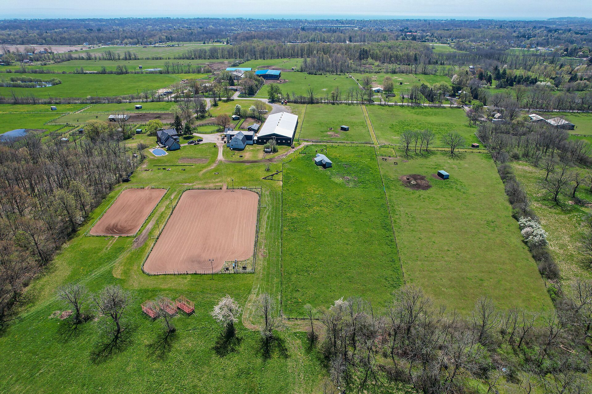 • Sprawling 84-acre equestrian property with easy access to amenities and highways.