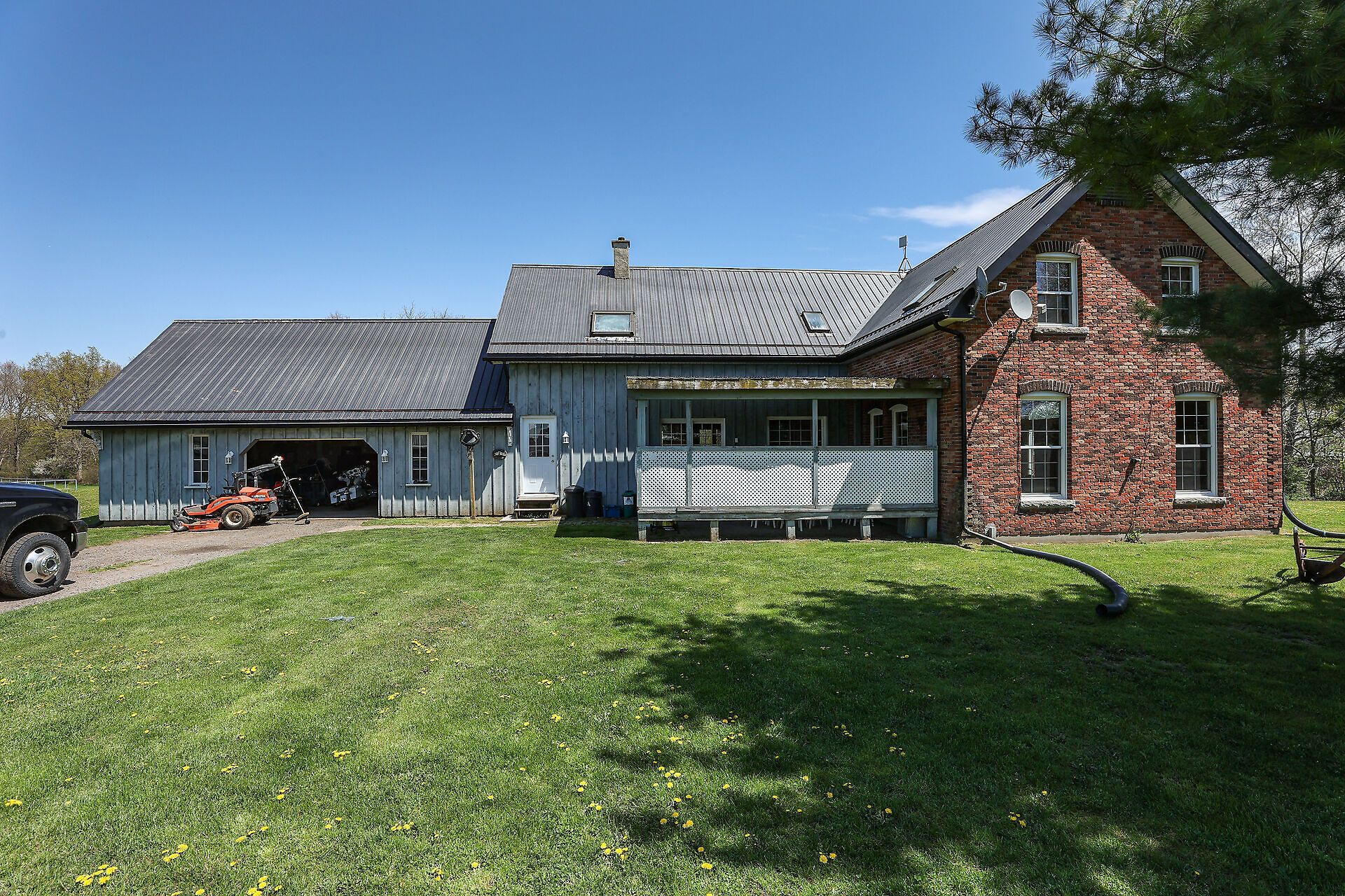 • Custom-built open concept executive home with unique farmhouse design and ample skylights.