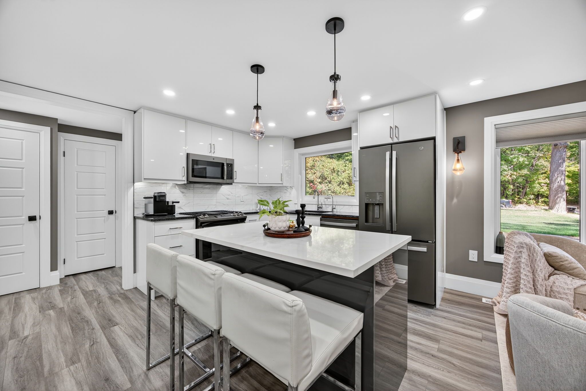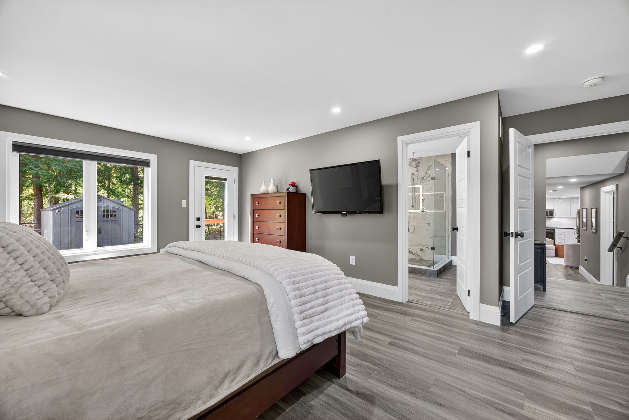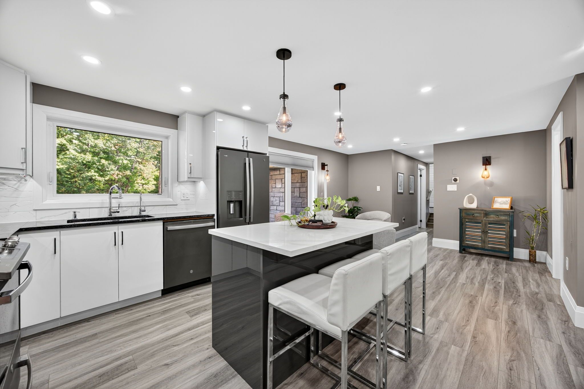 Looking for a completely renovated home? This beautiful bungalow has all the updates and features you could dream of! Imagine living in this custom 3 bedroom 4 bathroom home located on an ample lot close to highway 11 with on/off access, just north of weber's restaurant. You will be amazed with the quality finishes and attention to detail. The bathrooms are truly spectacular! Surrounded by forest, you can enjoy a relaxing retreat in the back yard with no neighbours behind you. There are 2 oversized garages attached to this home. You are minutes from a private, deeded waterfront beach that includes a boat launch plus a wonderful sandy beach for the kids to swim in and picnic tables to enjoy family meals. This is a home that needs to be seen to appreciate all of it's wonderful features including; 2 sheds, slate colour stainless steel appliances(2024), simple water solution filtration in kitchen, furnace(2024) a/c(2024), 2 sump pumps, 1 hydro pump, sod(2025), driveway(2025), patio(2024), roof(2024) new, gas stove and gas bbq hook ups,2 garages(1 insulated) with tap hookups, tap hookup backyard, security cameras, new windows(2024).