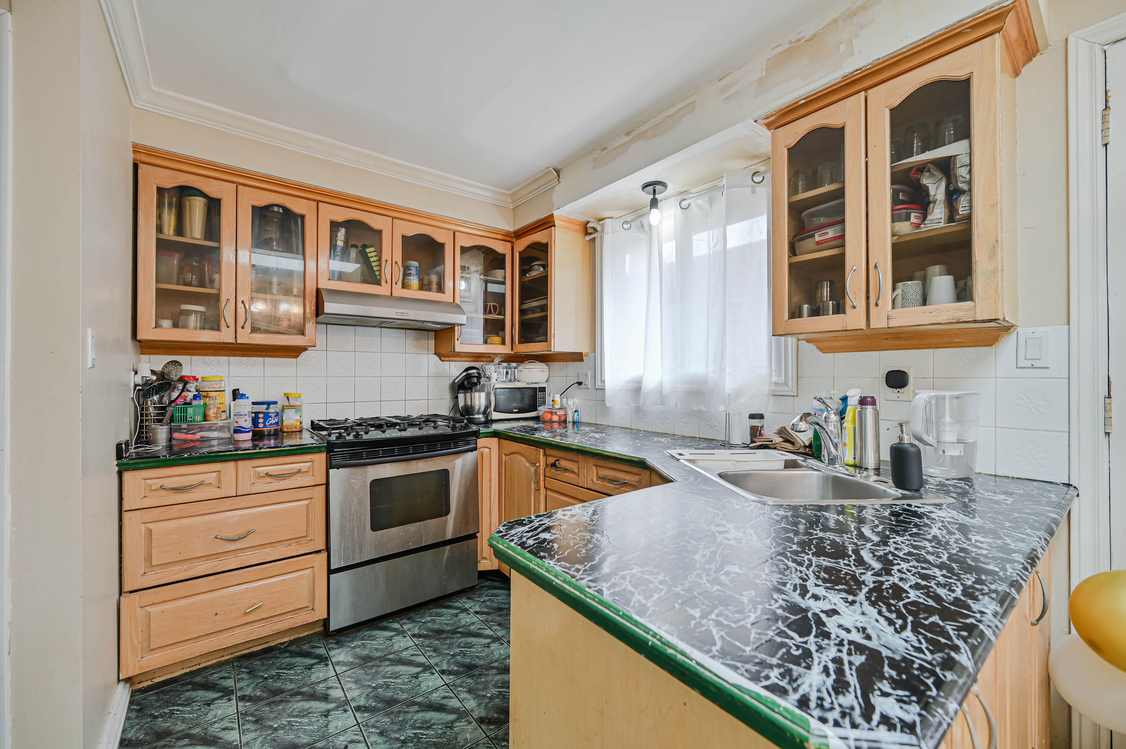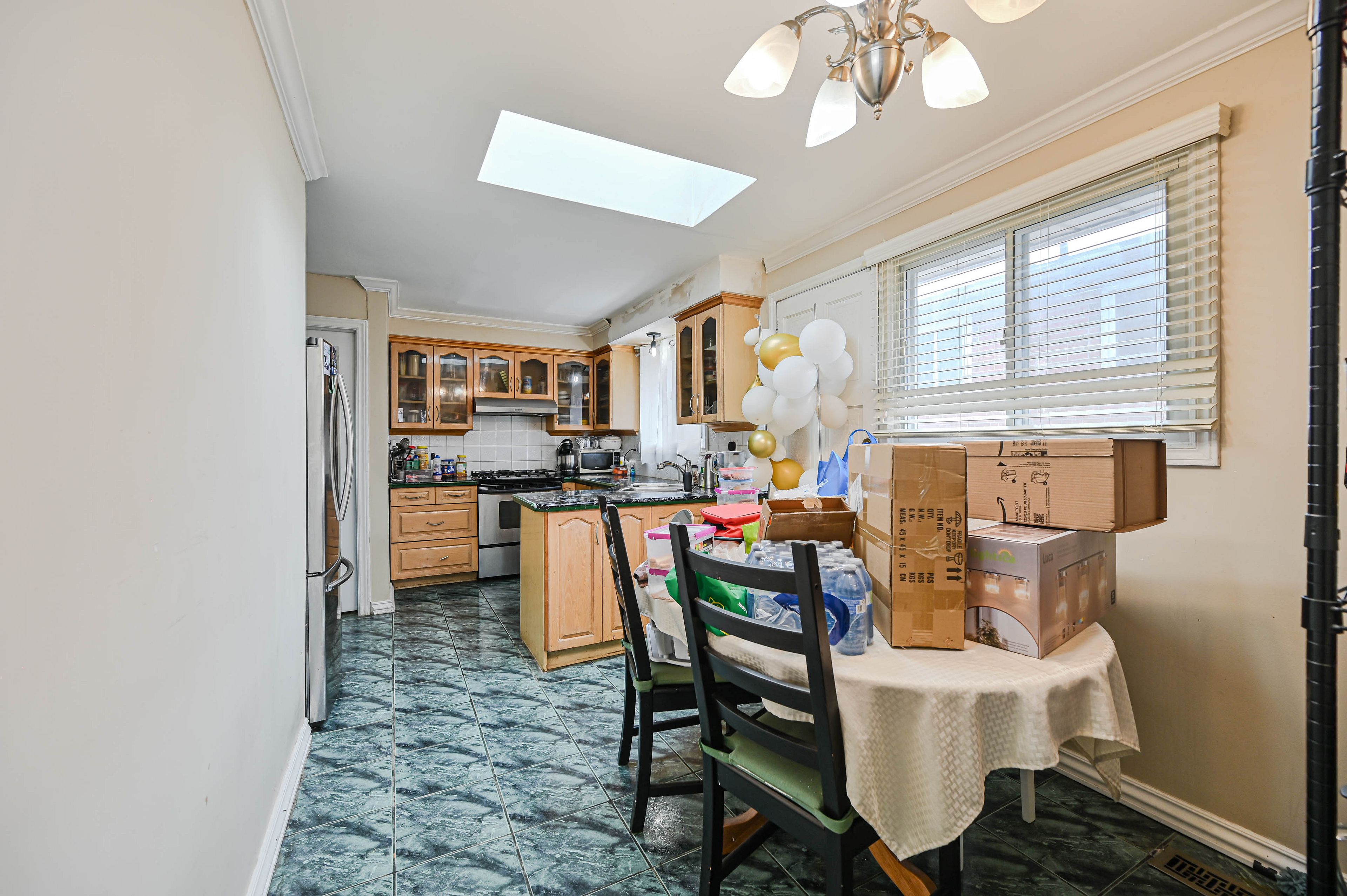 • Bright eat-in kitchen with a skylight for natural light.
