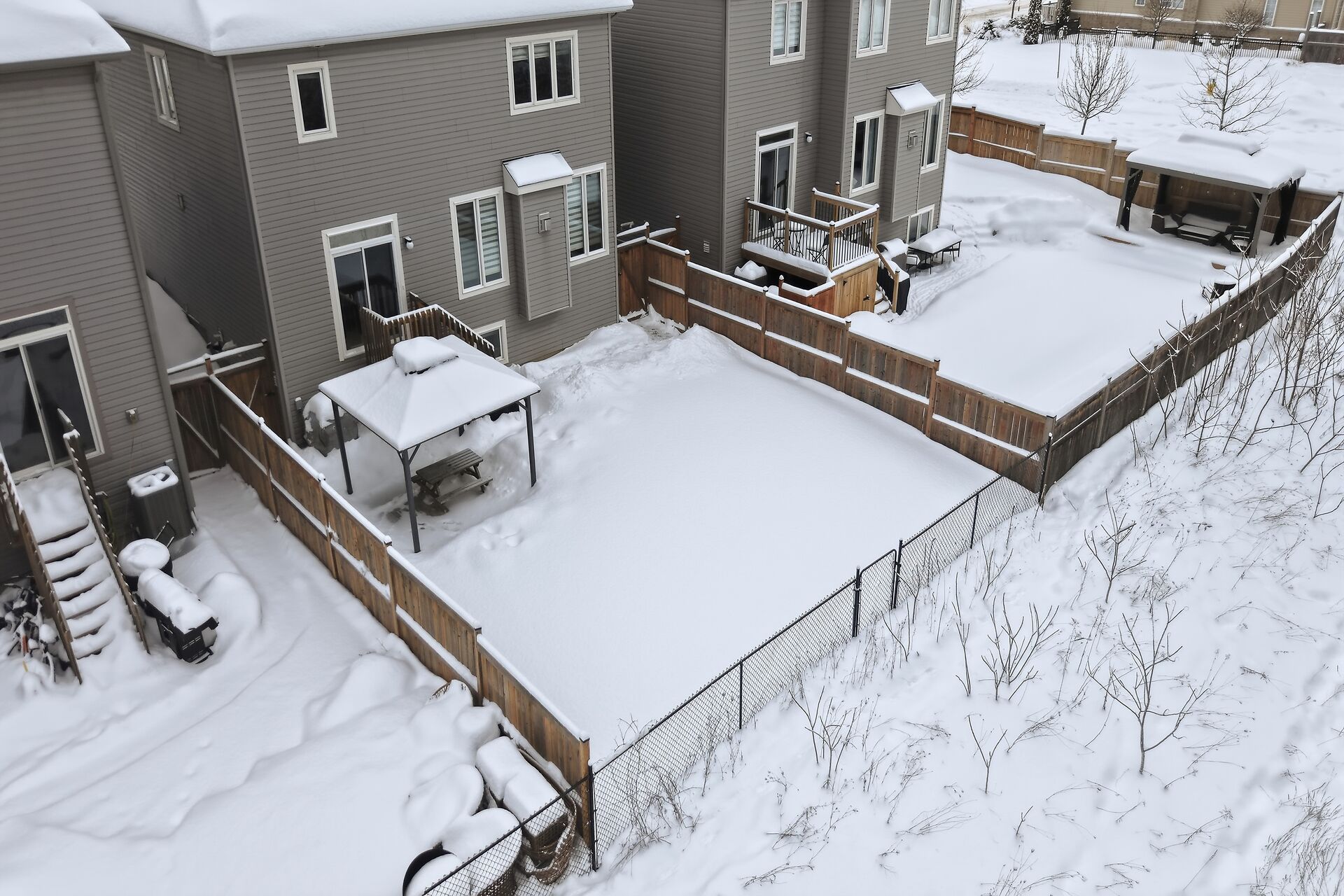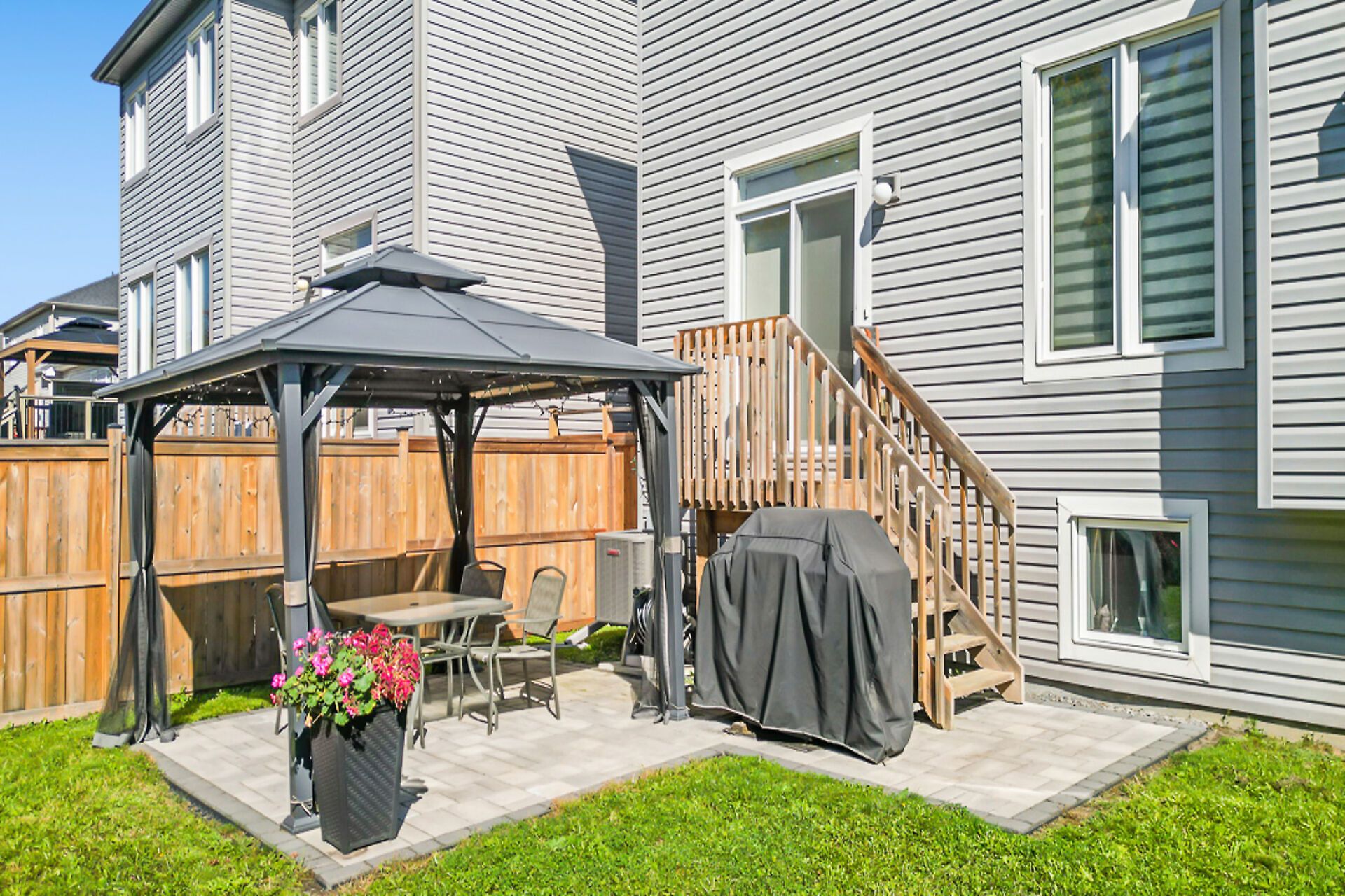• Fully fenced backyard with interlock patio and gazebo for outdoor enjoyment.