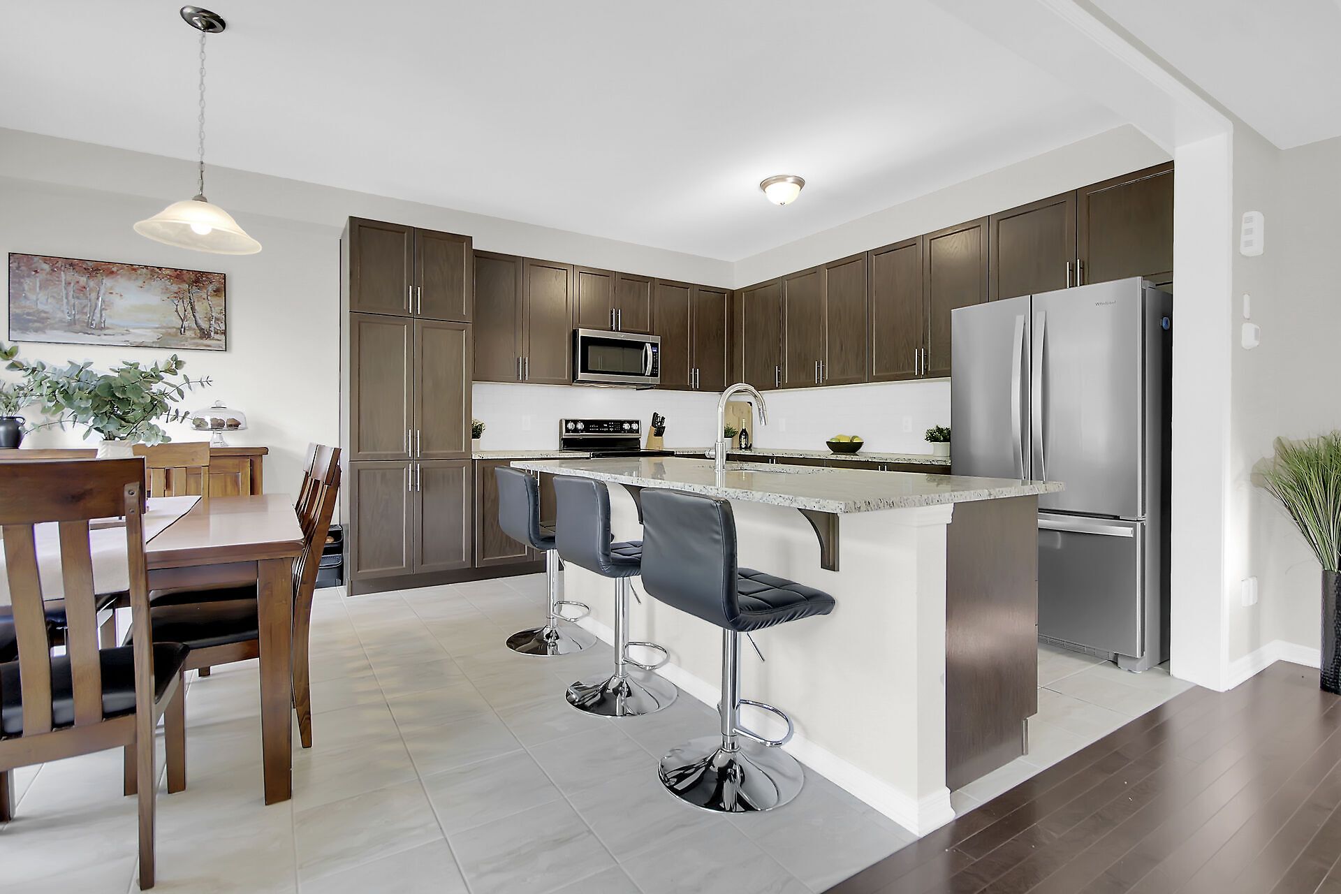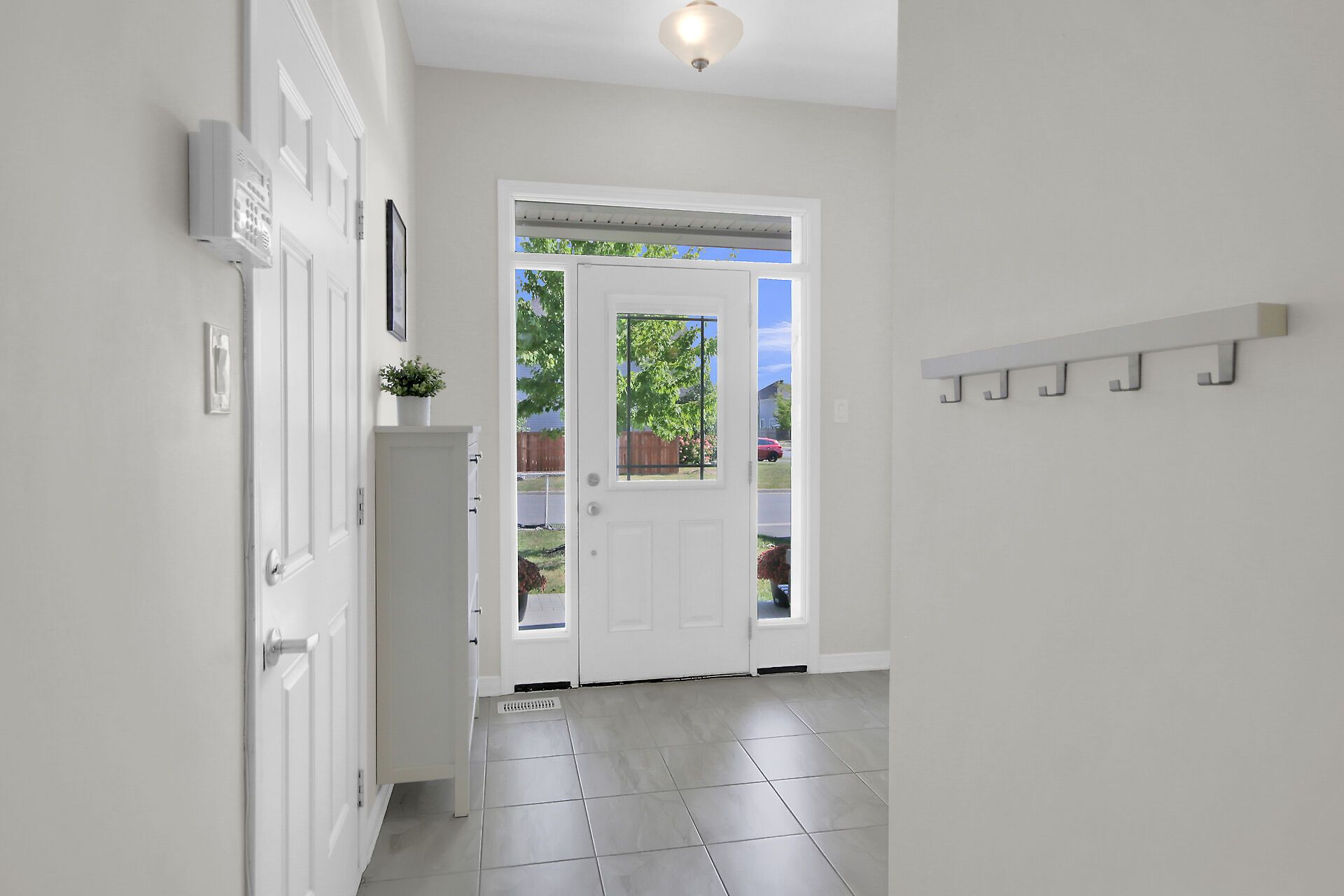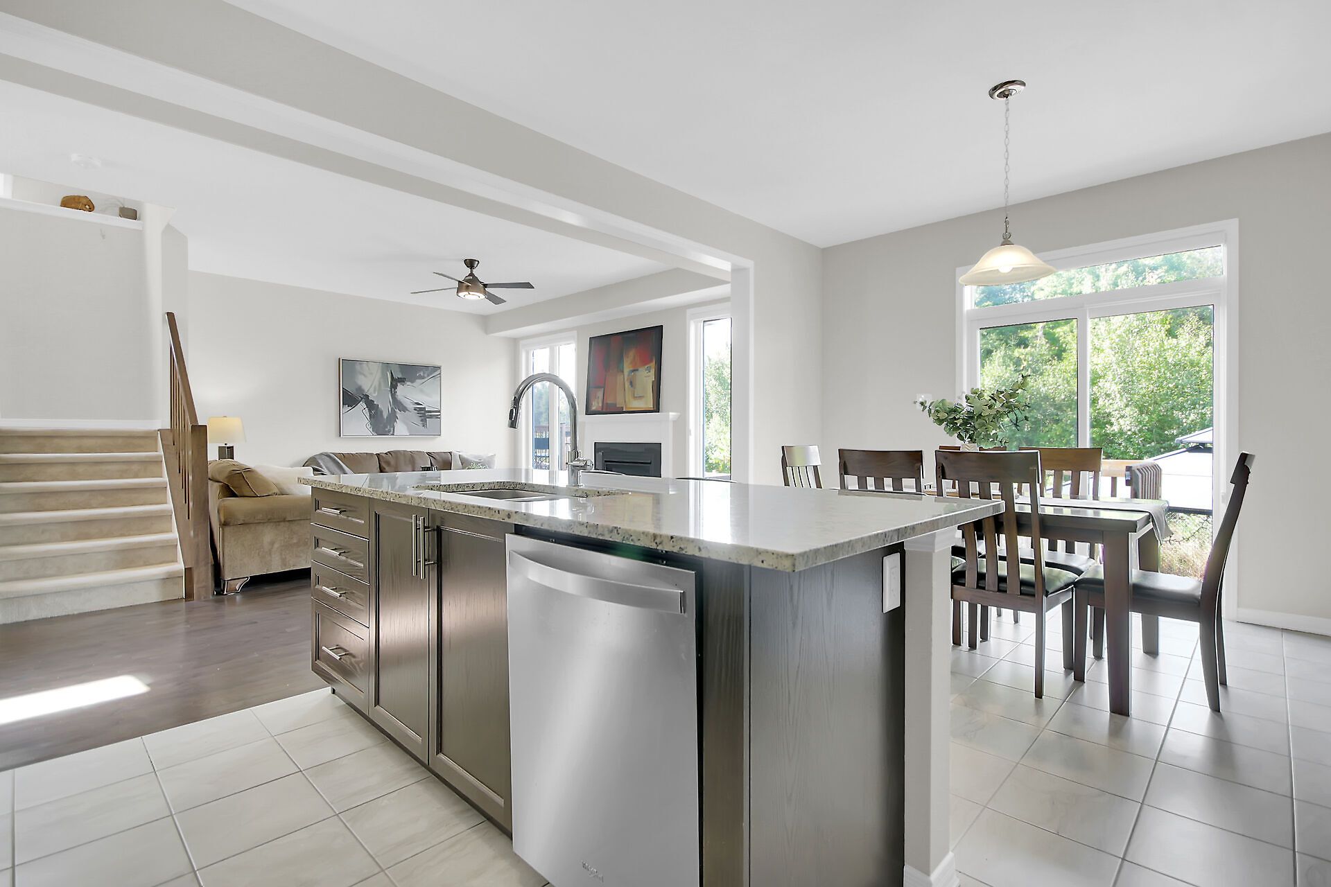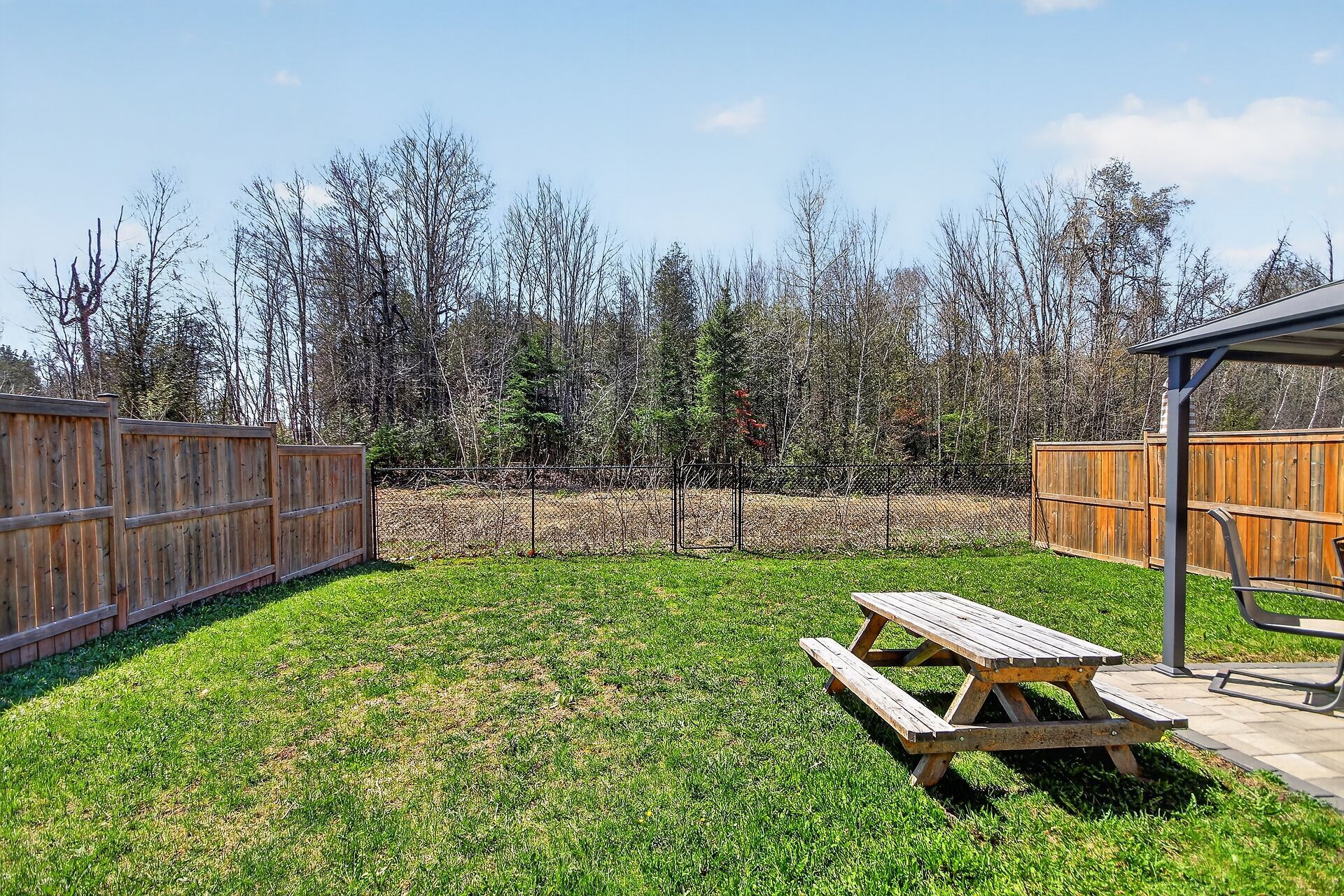 Rare offering with no rear neighbours, scenic views, and beautifully landscaped grounds - privacy and appeal! This move-in ready 4-bedroom, 3-bath home is loaded with upgrades, offering approx. 2,225 sq ft of finished living space. Situated on a premium lot with uninterrupted forest views, this home is set on a quiet, family-friendly street in kemptville's desirable tempo neighbourhood. The main floor features a bright, open layout filled with natural light and hardwood flooring throughout, highlighted by a formal living room with a stunning focal-point gas fireplace, flowing into the dining area and a large gourmet kitchen complete with granite countertops, ample cabinetry, and a spacious island with seating - ideal for everyday living and entertaining. The second level offers four well-sized bedrooms with large windows and great closet space, including a private primary retreat overlooking the trees, complete with a walk-in closet and a luxurious ensuite with custom walk-in shower. The fully finished lower level extends your living space with a versatile family room, space for hobbies or a home gym, a rough-in for an additional bathroom, and ample storage, along with large daylight lookout windows. Step outside to a fully fenced backyard featuring a professionally installed interlock patio, gazebo, natural gas bbq hookup, and a peaceful treed backdrop offering exceptional privacy and room for entertaining. Unbeatable location with so much just steps away, including ferguson's forest trails, parks, the north grenville municipal centre, and all amenities in kemptville, while still being just a short, easy commute to ottawa.