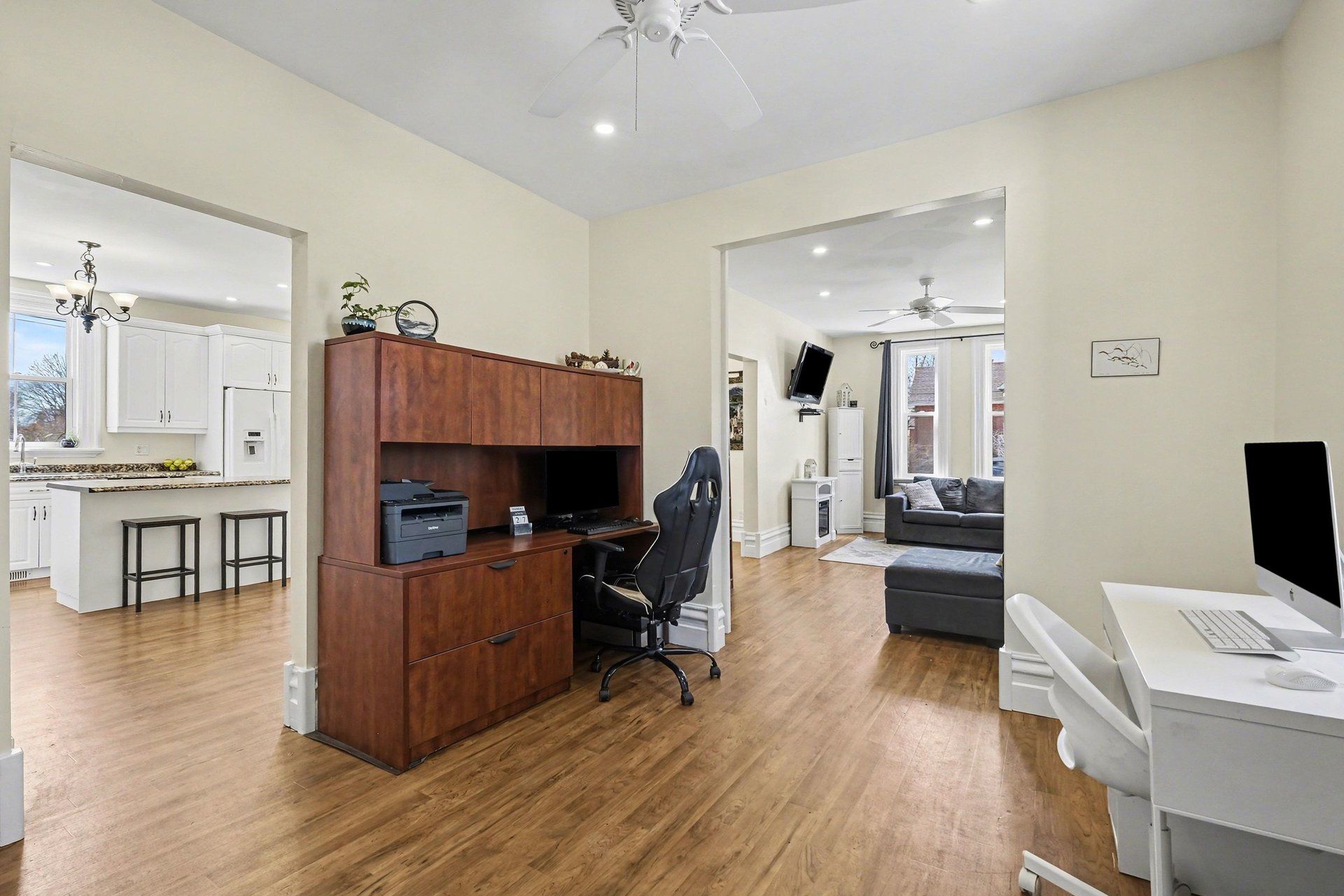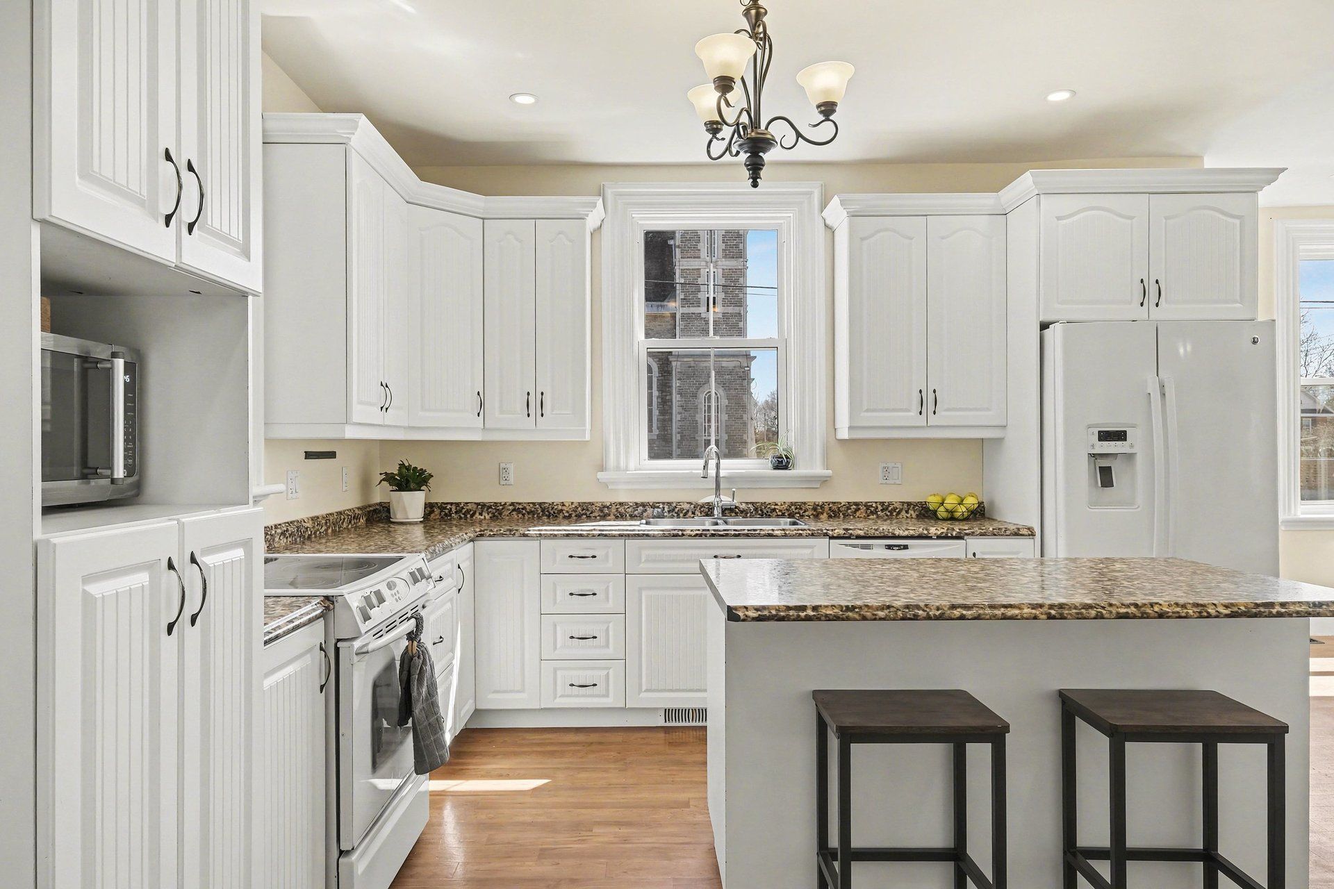 A stunning 4 bedroom, 4 bathroom century home seamlessly blending timeless charm with modern upgrades throughout, showcasing true pride of ownership. Ideally located just minutes from shopping, schools, downtown arnprior, and a short walk to the beautiful madawaska river, this home offers both convenience and character. Step inside to a freshly painted interior (2025), where you're welcomed by a beautifully updated kitchen (2016) featuring an open-concept design flowing into the dining area. This inviting space is enhanced by abundant natural light, pot lights, 9-foot ceilings, and luxury vinyl plank flooring throughout. To the left of the entrance, a bright and elegant living room offers additional pot lighting and natural light, seamlessly connecting to a versatile space ideal for a home office. The main level is complete with a spacious mudroom with laundry and direct access to the second driveway, along with a fully updated 2-piece powder room (2015). Upstairs, the second level features four generously sized bedrooms. The primary suite offers a walk-in closet and convenient cheater access to a stunning 5-piece bathroom complete with a soaker tub, glass double shower, double sinks, and heated floors. An additional updated 4-piece bathroom (2015) serves the remaining bedrooms. There is a back staircase not being used. The third floor adds exceptional versatility with a large bonus space-perfect for a playroom, games room, or additional family area-along with a 2-piece bathroom. Outside, enjoy the privacy and comfort of the charming front verandah overlooking beautifully landscaped grounds. The spacious side yard offers endless potential for outdoor living, while the rear shed provides two storage areas with attic space above for added convenience. This home is filled with thoughtful upgrades and modern finishes throughout, including many exterior updates completed in 2025/2026. Please refer to attachments for a full list of improvements.