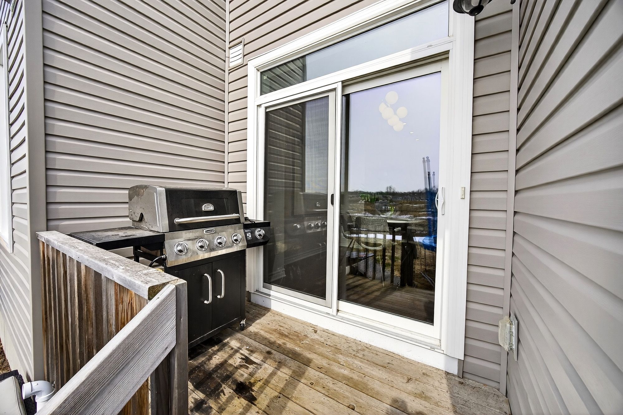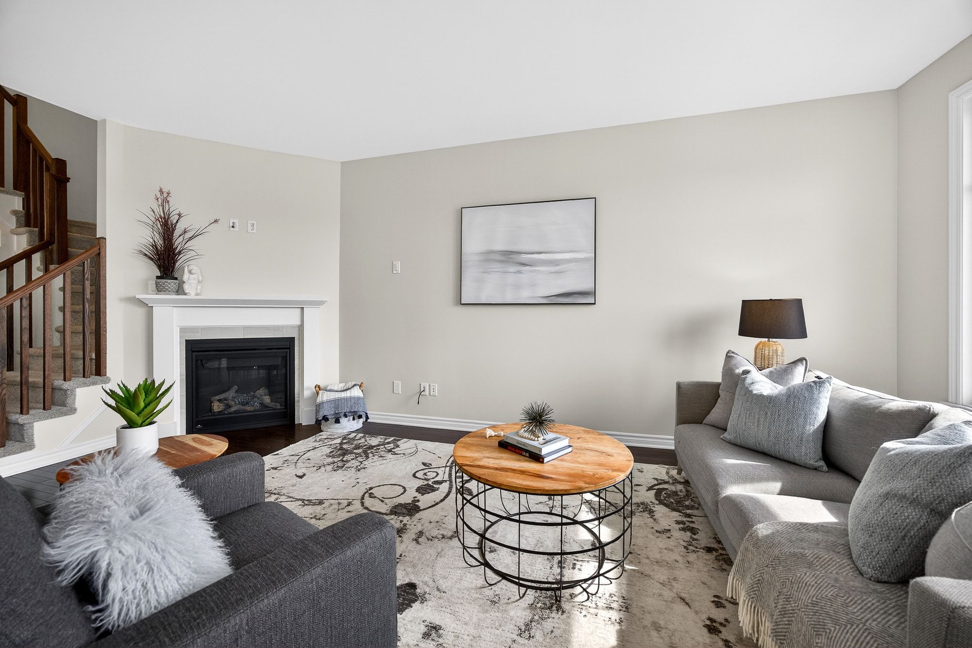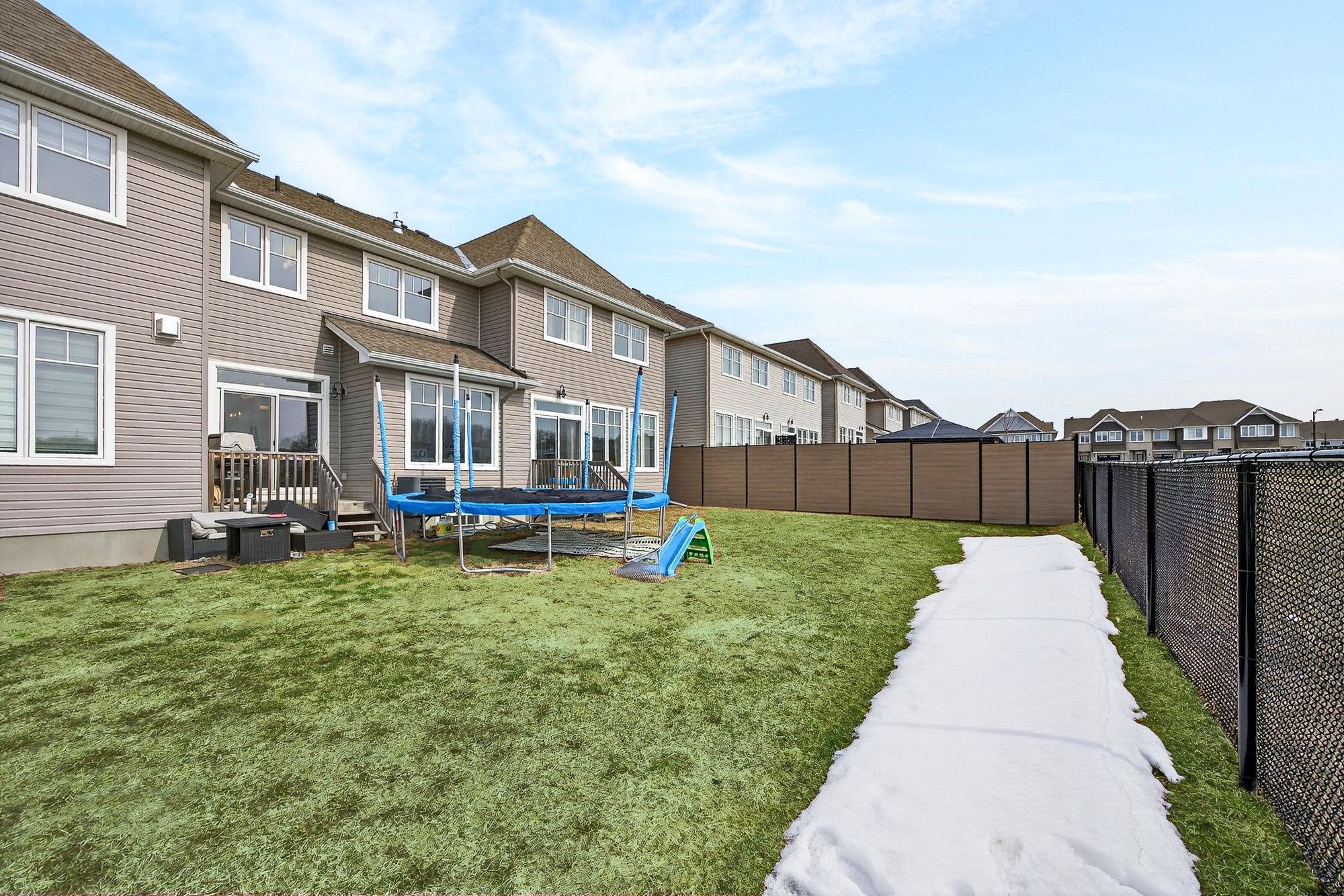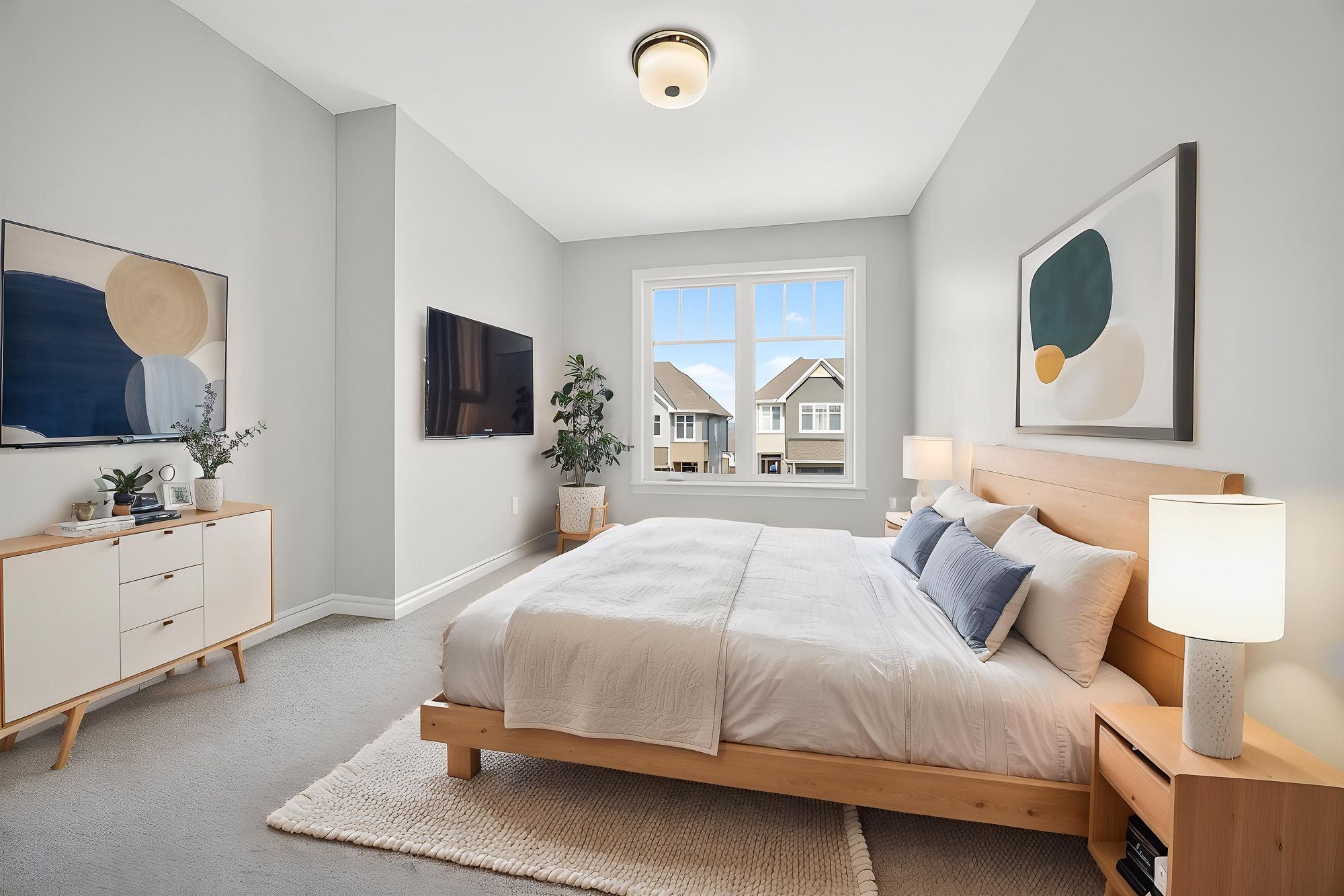 Welcome to 321 kanashtage terrace, a tastefully upgraded tamarack home with no rear neighbours, offering over 1400 sq. Ft. Of above-grade finished living area plus a finished basement in the desirable community of cardinal creek in orléans-cumberland. This spacious 3-bedroom, 2. 5-bath townhome features an open-concept main level, enhanced by sprawling 9-foot ceilings, rich hardwood flooring, upgraded lighting and large south-facing windows that allow natural light to permeate the level. The inviting living and dining areas are anchored by a cozy gas fireplace with a tv-ready wall, perfect for both everyday living and entertaining. The modern kitchen is both stylish and functional, featuring bright quartz countertops, pot & pendant lighting, stainless appliances, a large island with a breakfast bar, and a walk-in pantry, offering exceptional prep and storage space. Upstairs you'll find a well-appointed layout, including convenient second-level laundry with upper cabinets. The primary suite is a true retreat, featuring a spacious walk-in closet, and a luxurious ensuite with a large soaker tub and a walk-in shower. Two additional bedrooms, a 4-piece bathroom with quartz counters and laundry complete the level, providing excellent space and convenience for guests or growing families. The finished basement adds extra living space with a large recreation room - ideal for a home theatre, gym, or play area. Additional highlights include ample storage space and a single-car garage with entry to mudroom, adding both convenience and functionality. This home backs onto a future school and is just minutes from parks, trails, shopping and everyday amenities. It's also just a short commute to the future lrt, offering excellent long-term value and connectivity. Offering an ideal blend of space, function, and privacy, this home presents an exceptional opportunity in one of orléans-cumberland's fastest-growing neighbourhoods.